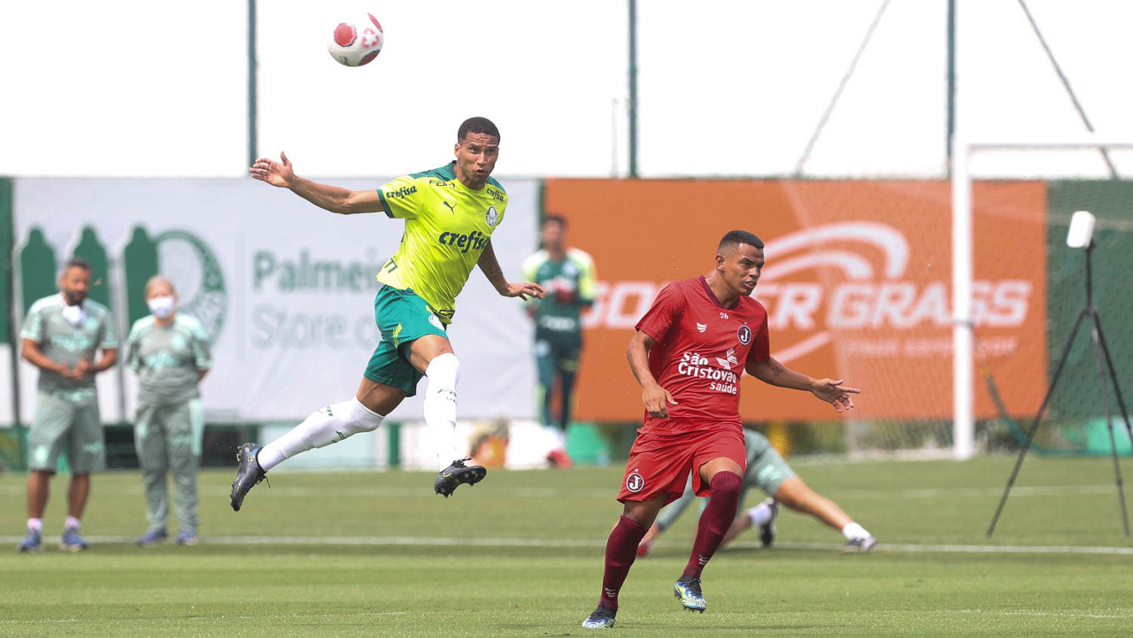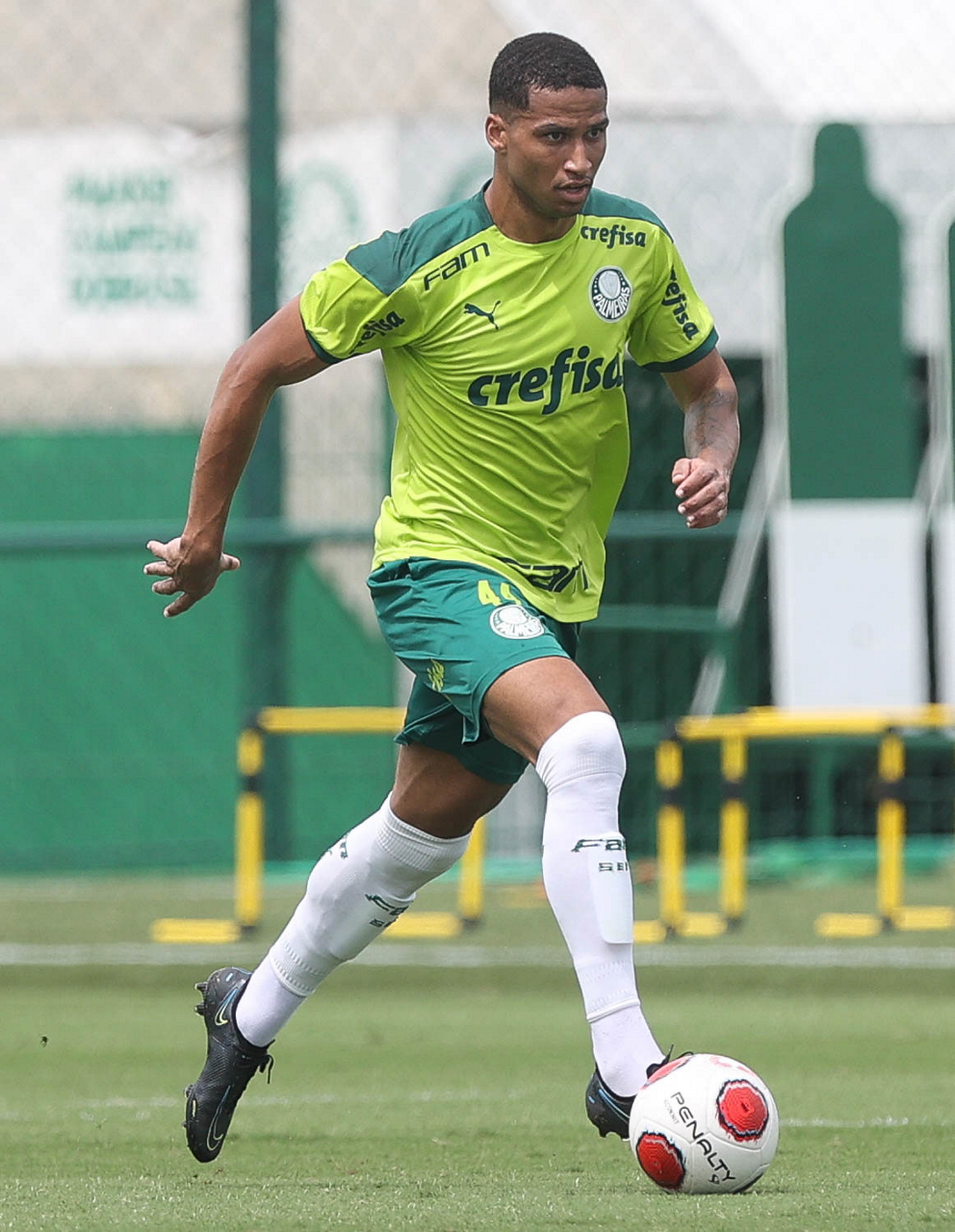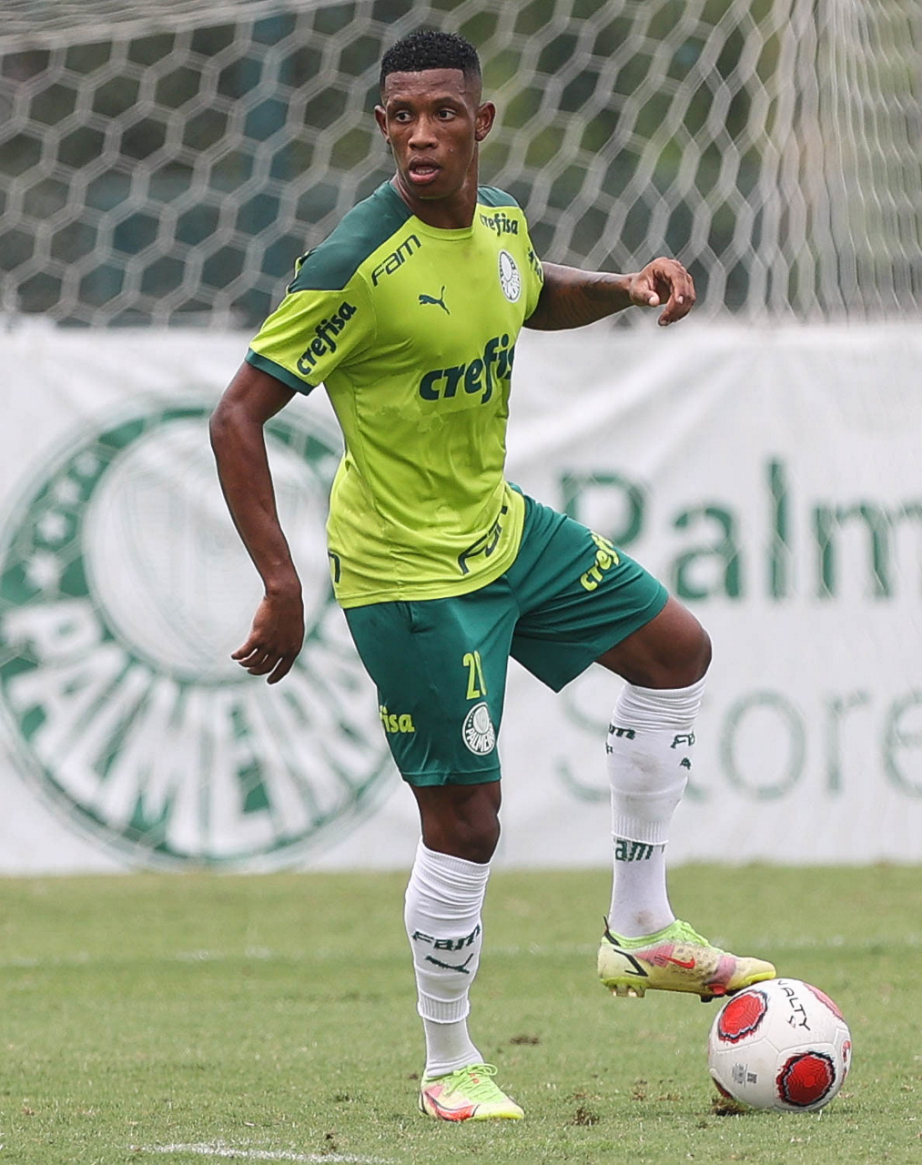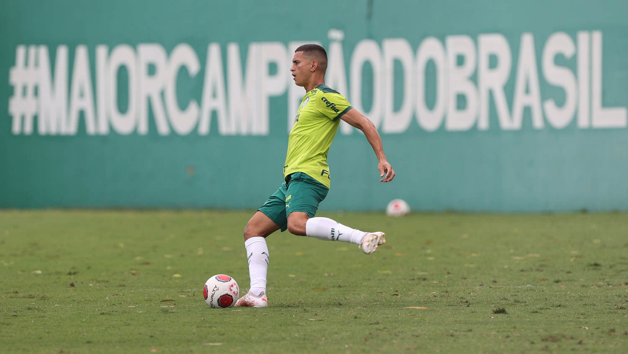 O jogador Gabriel Menino, da SE Palmeiras, durante jogo-treino contra a equipe do Juventus, na Academia de Futebol. (Foto: Cesar Greco)