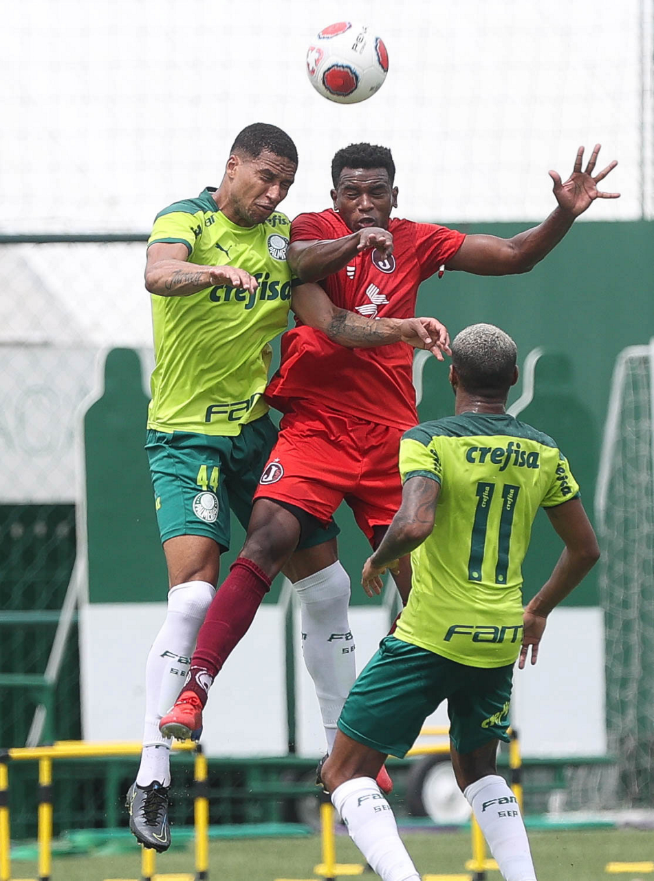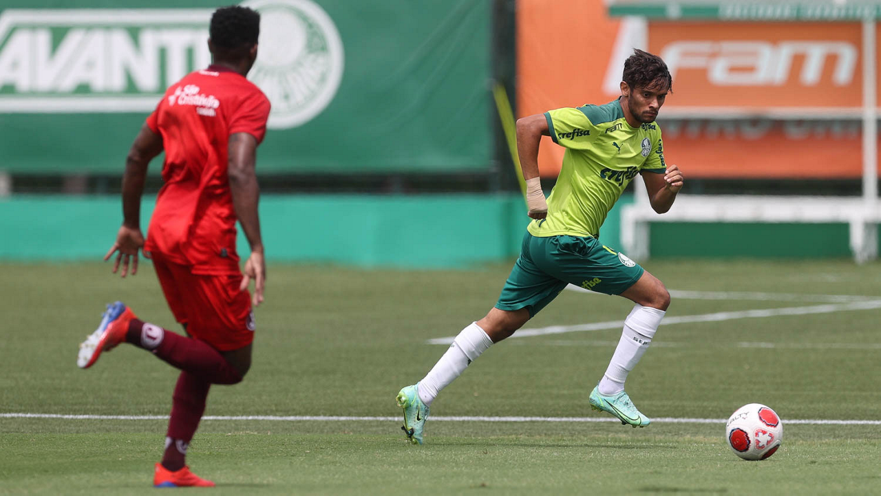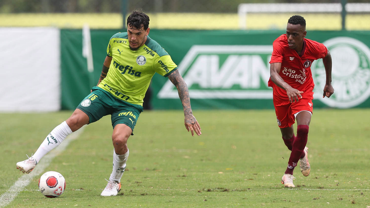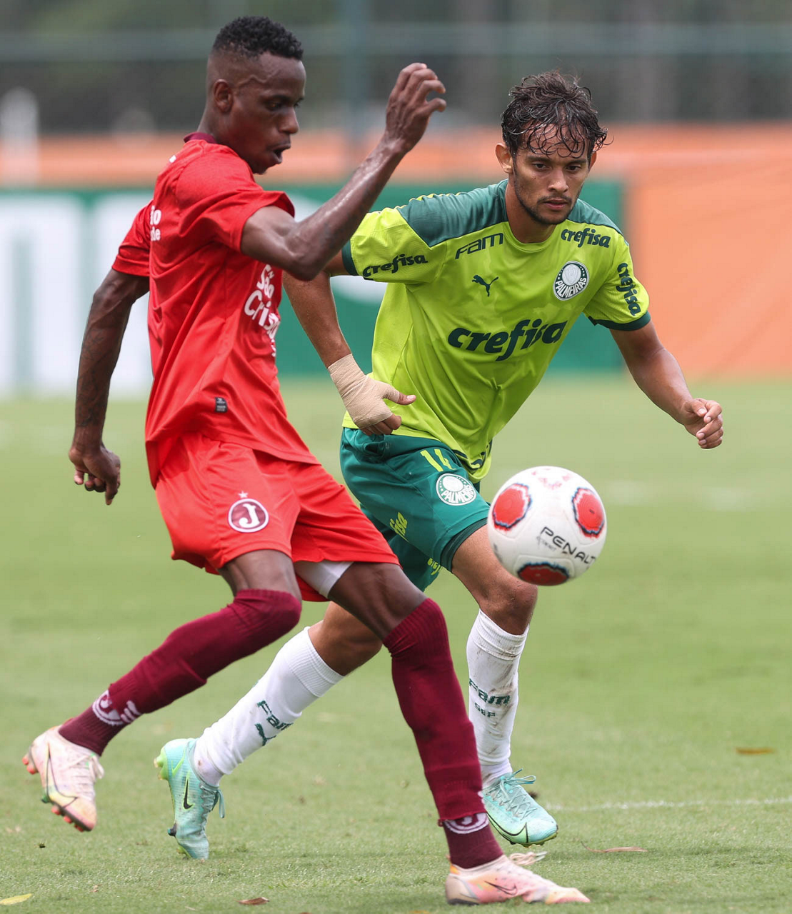 O jogador Gabriel Menino, da SE Palmeiras, durante jogo-treino contra a equipe do Juventus, na Academia de Futebol. (Foto: Cesar Greco)