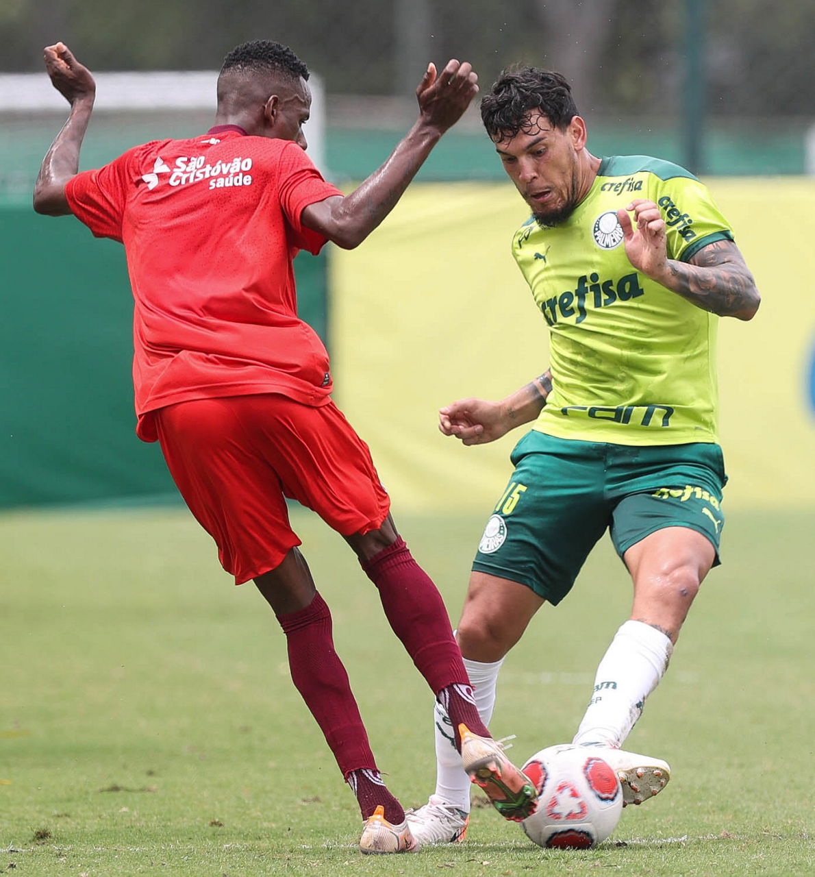 O jogador Benjamín Kuscevic, da SE Palmeiras, durante jogo-treino contra a equipe do Juventus, na Academia de Futebol. (Foto: Cesar Greco)