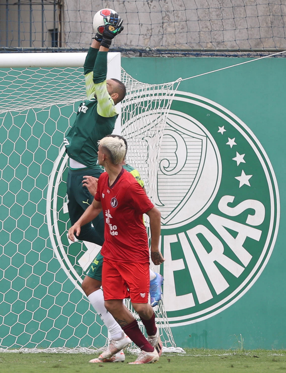 O goleiro Vinicius, da SE Palmeiras, durante jogo-treino contra a equipe do Juventus, na Academia de Futebol. (Foto: Cesar Greco)