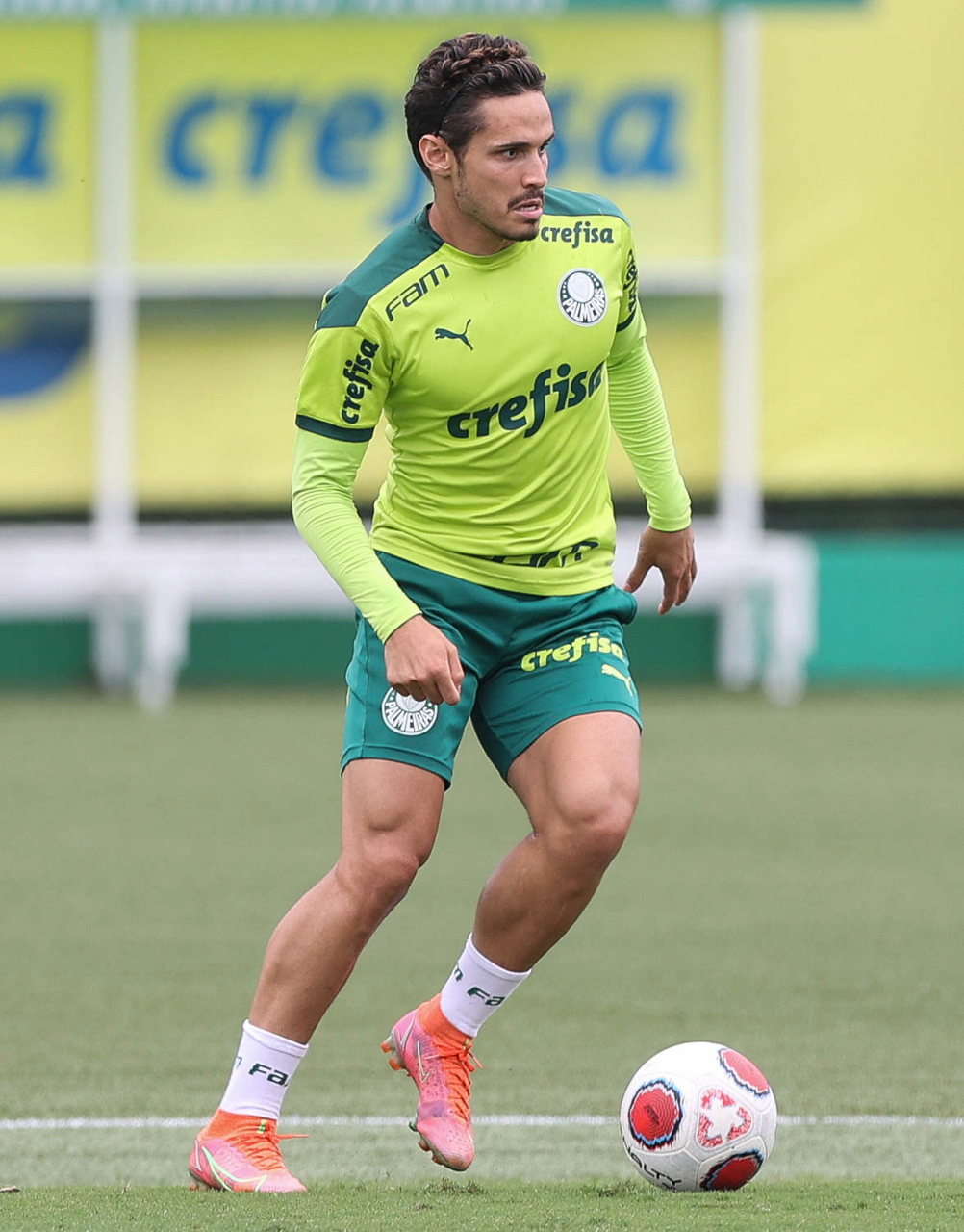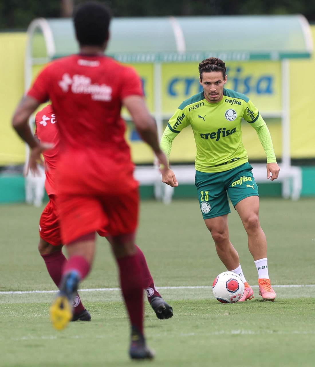 O jogador Raphael Veiga, da SE Palmeiras, durante jogo-treino contra a equipe do Juventus, na Academia de Futebol. (Foto: Cesar Greco)