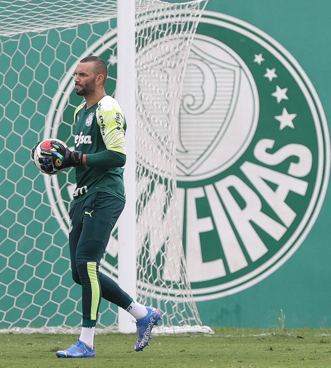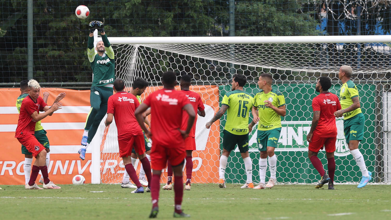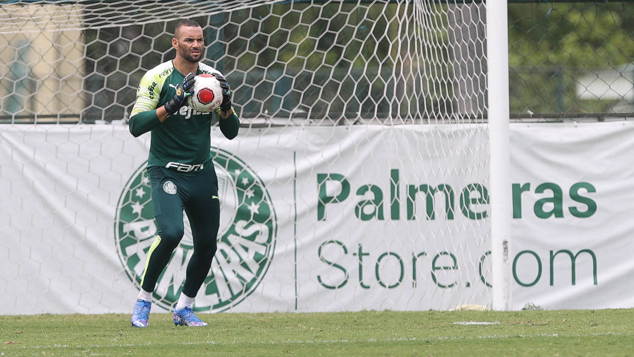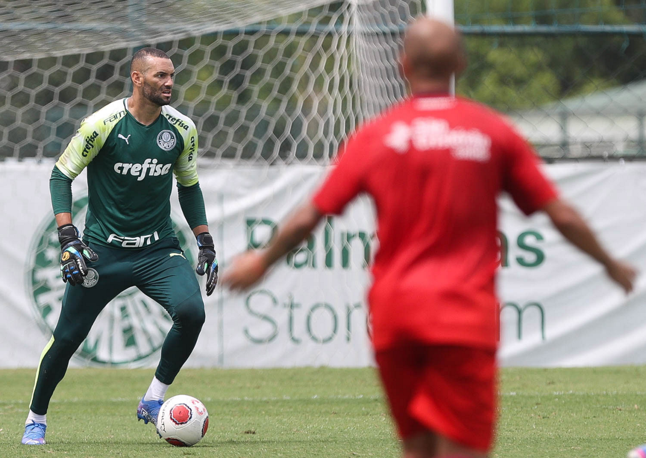 O goleiro Weverton, da SE Palmeiras, durante jogo-treino contra a equipe do Juventus, na Academia de Futebol. (Foto: Cesar Greco)