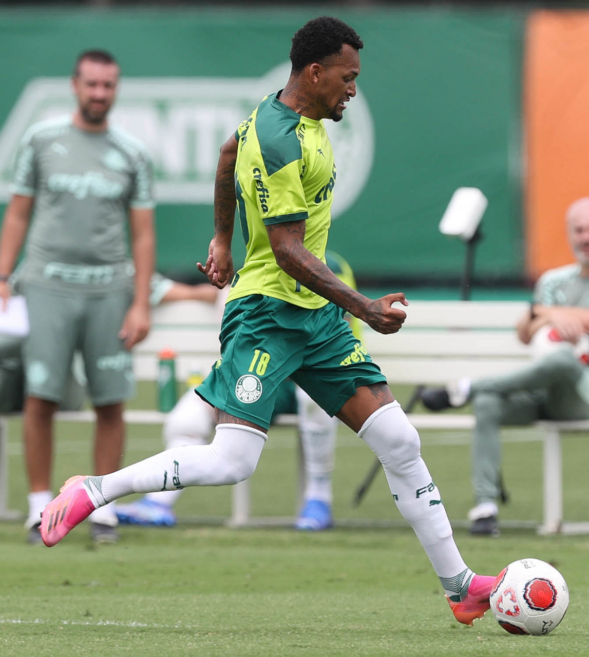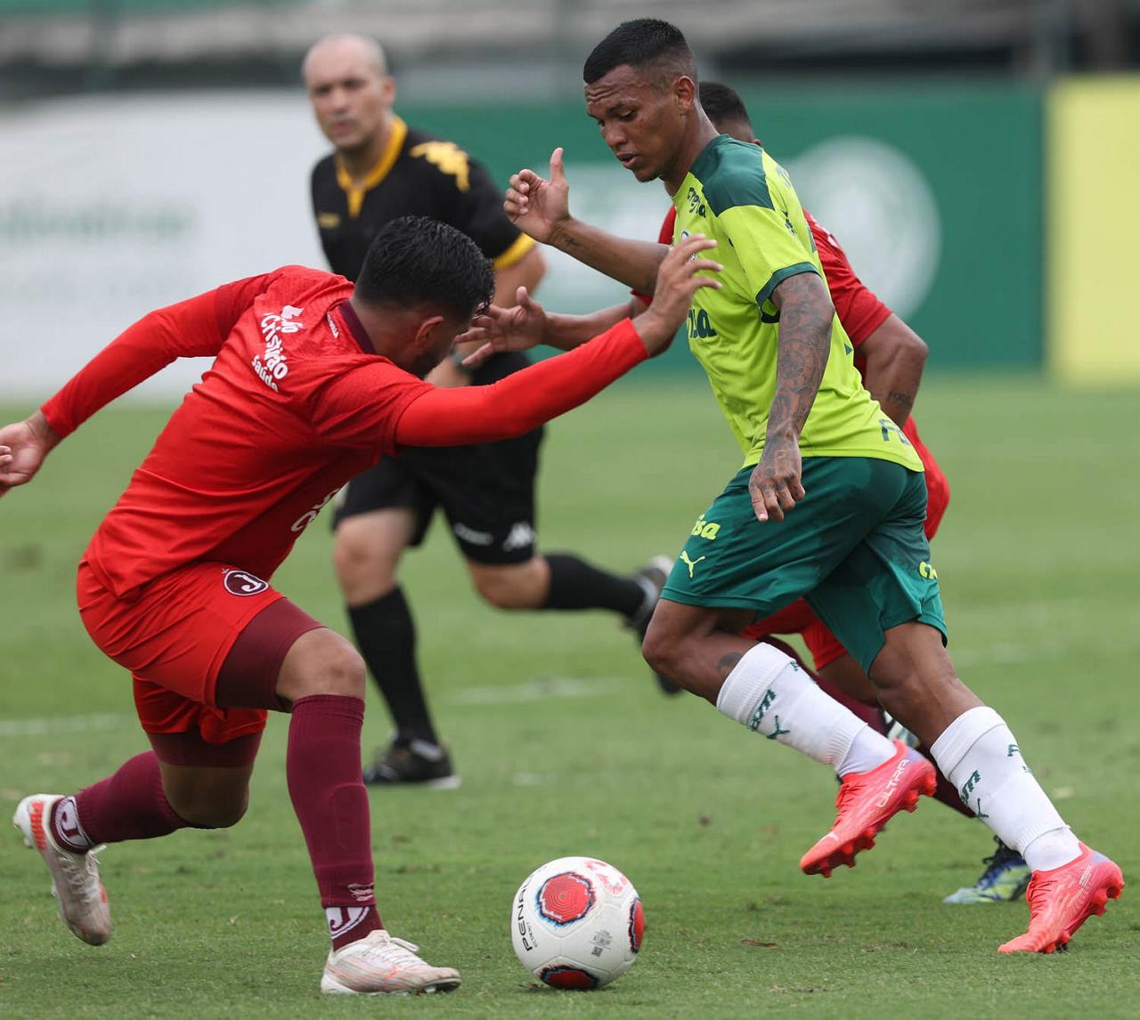 O jogador Deyverson, da SE Palmeiras, durante jogo-treino contra a equipe do Juventus, na Academia de Futebol. (Foto: Cesar Greco)