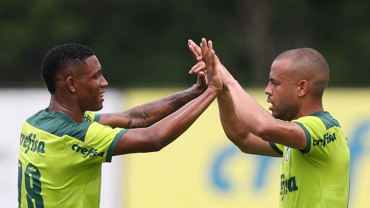 Os jogadores Danilo e Mayke (D), da SE Palmeiras, durante jogo-treino contra a equipe do Juventus, na Academia de Futebol. (Foto: Cesar Greco)