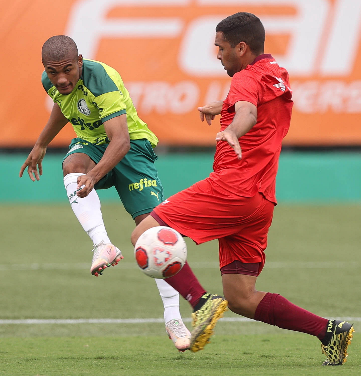O jogador Kauan Santos, da SE Palmeiras, durante jogo-treino contra a equipe do Juventus, na Academia de Futebol. (Foto: Cesar Greco)