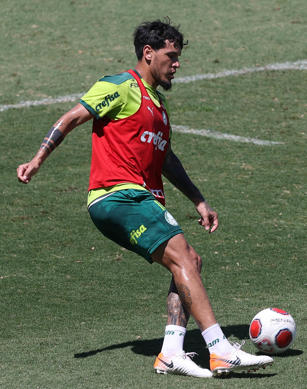 O jogador Gustavo Gómez, da SE Palmeiras, durante treinamento, na Academia de Futebol. (Foto: Cesar Greco)