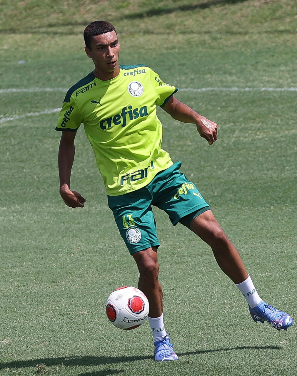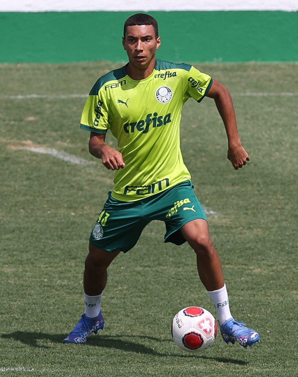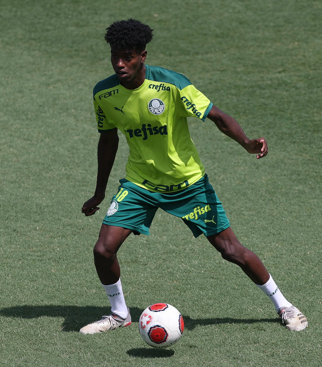 O jogador Gabriel Menino, da SE Palmeiras, durante treinamento, na Academia de Futebol. (Foto: Cesar Greco)