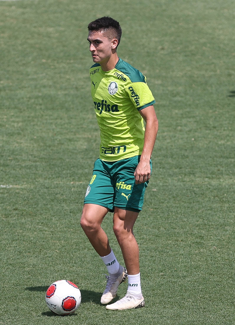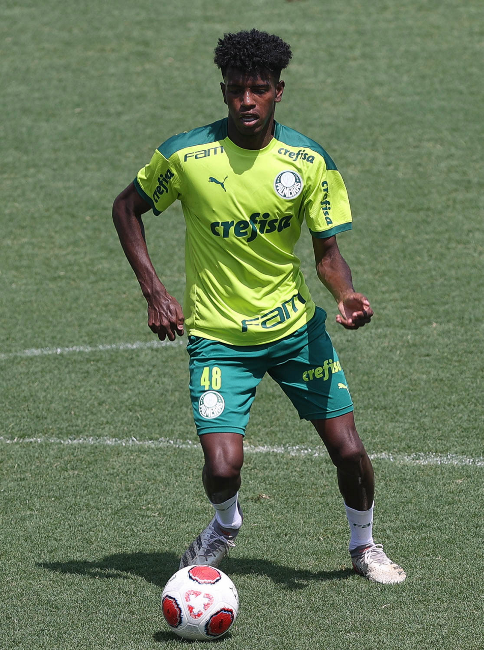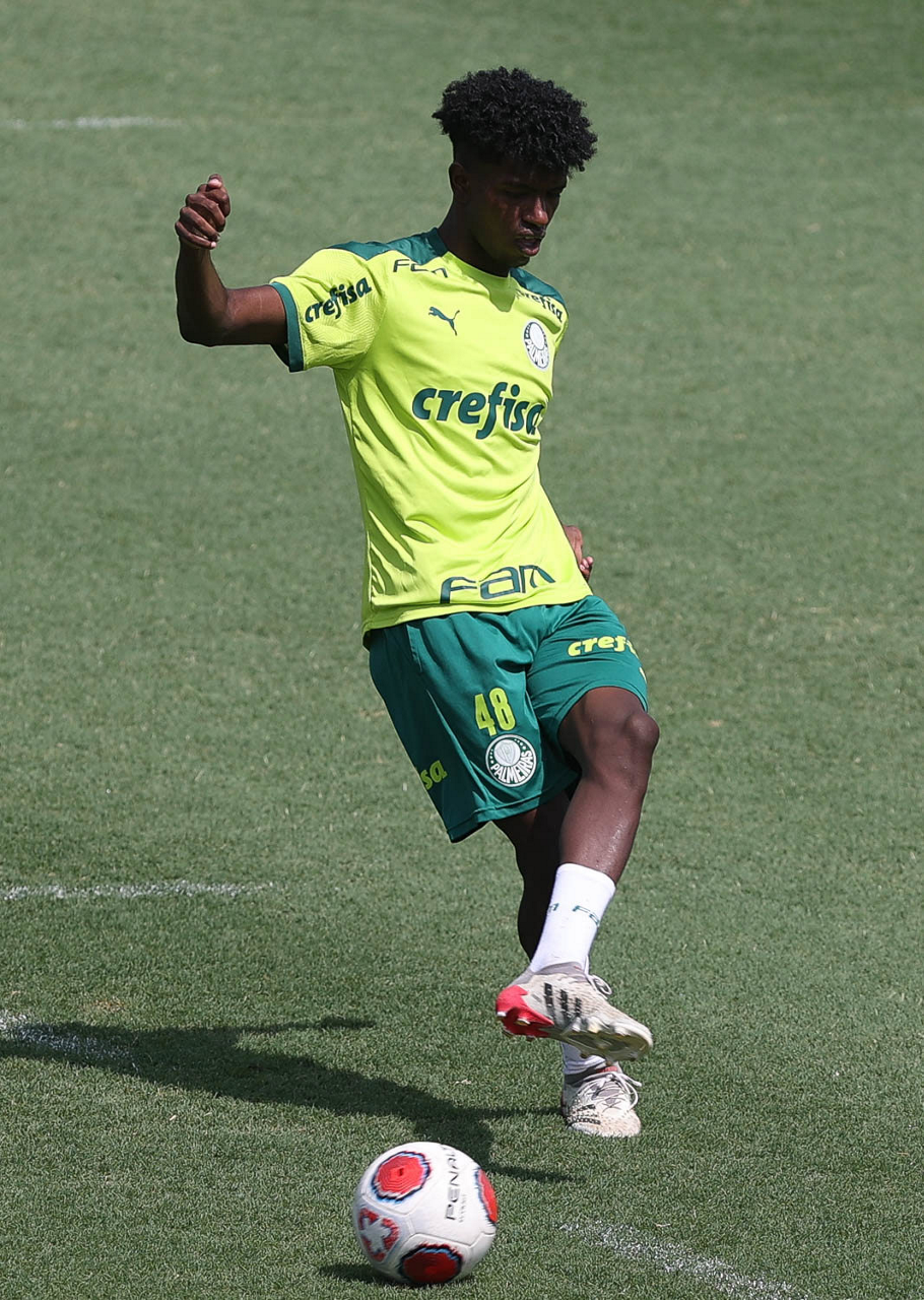 O jogador Gabriel Menino, da SE Palmeiras, durante treinamento, na Academia de Futebol. (Foto: Cesar Greco)