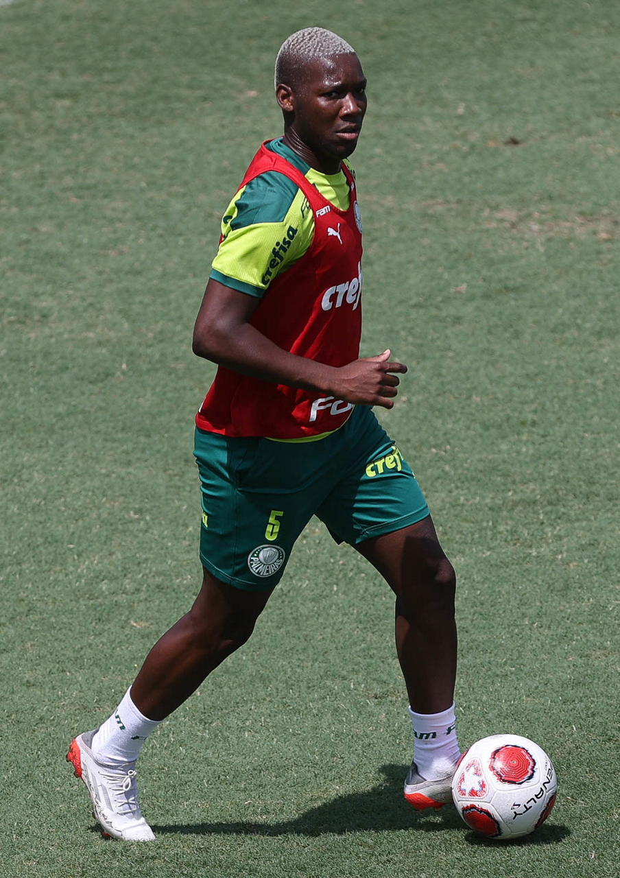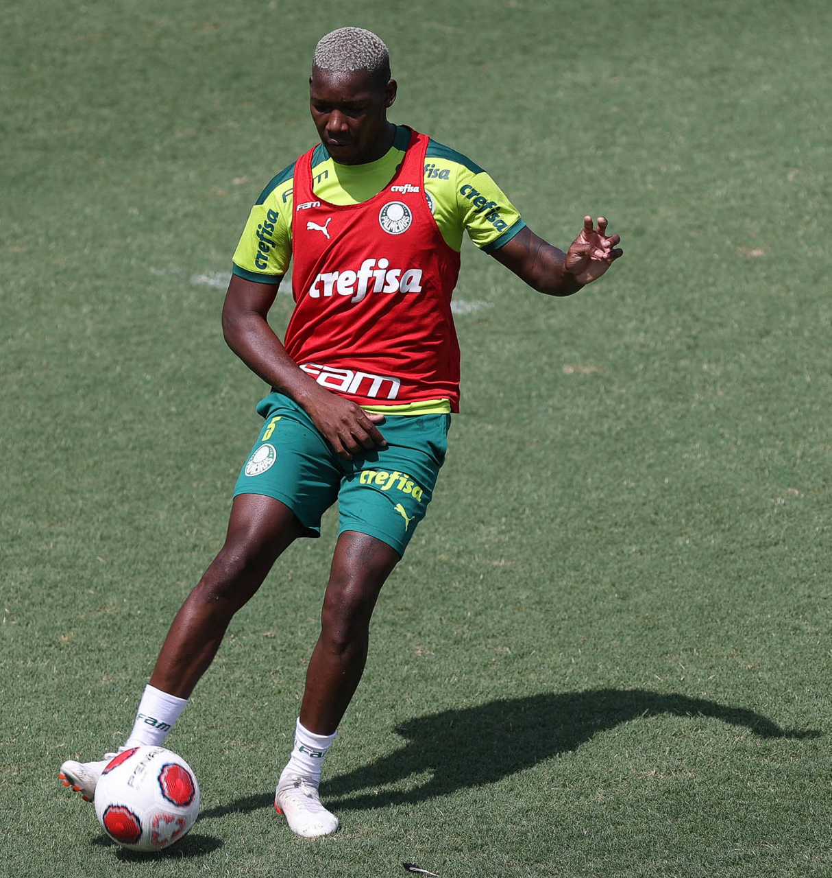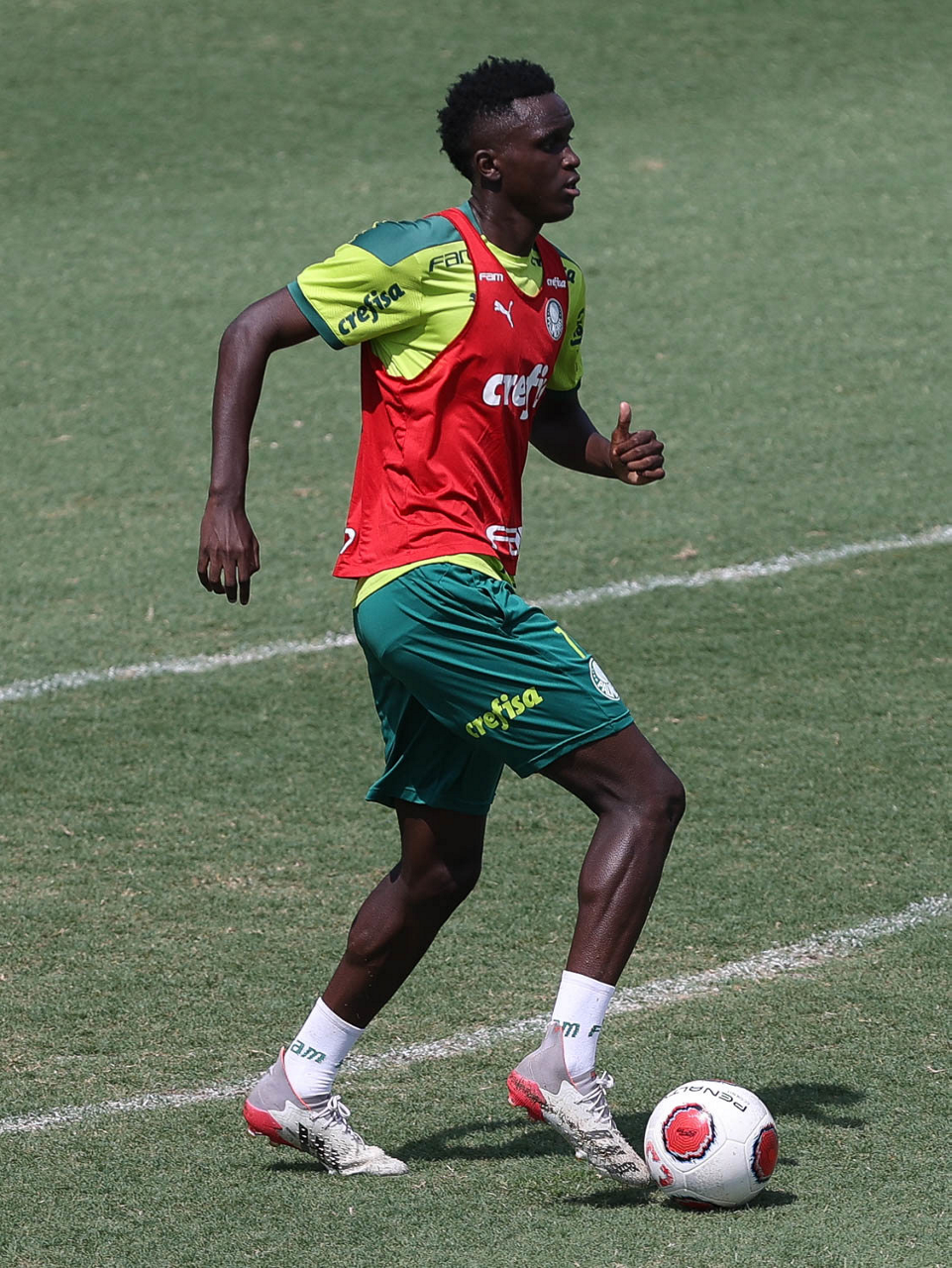 O jogador Eduard Atuesta, da SE Palmeiras, durante treinamento, na Academia de Futebol. (Foto: Cesar Greco)