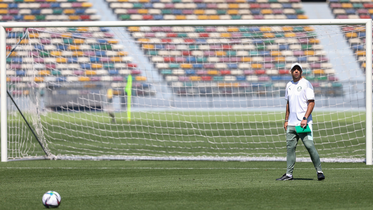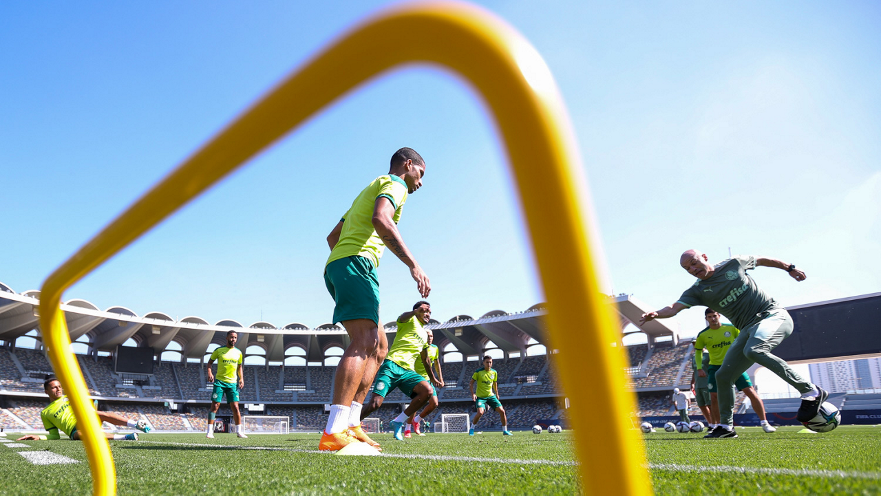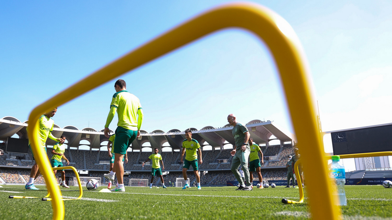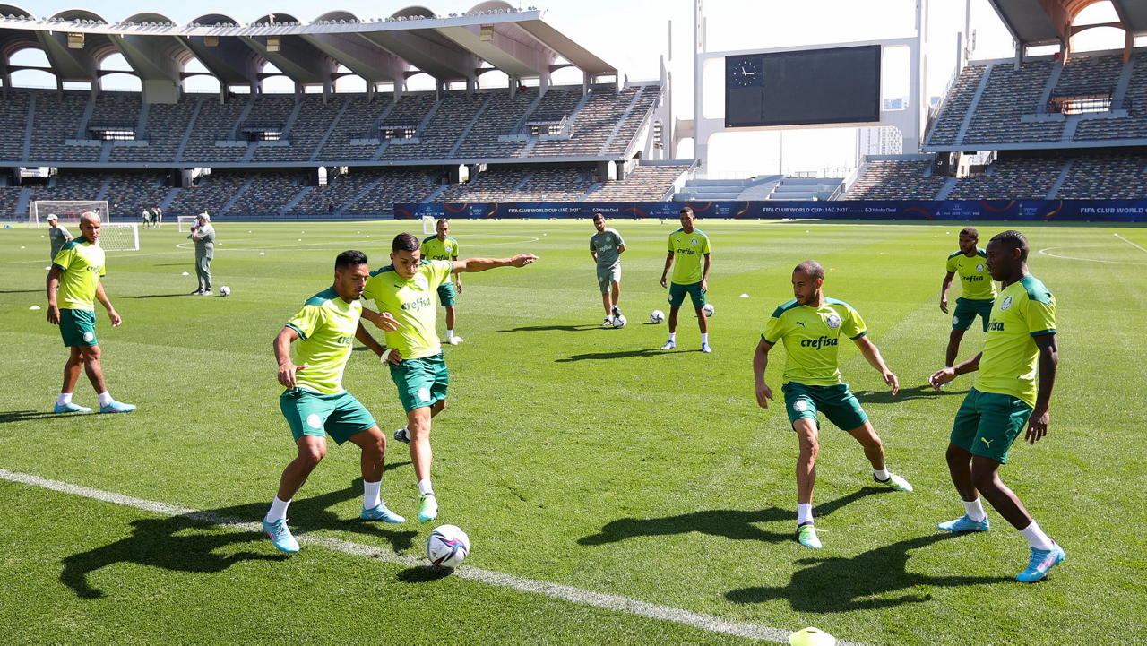 Os atletas da SE Palmeiras, durante treinamento no Zayed Sports City Stadium, em Abu Dhabi-EAU. (Foto: Fabio Menotti)