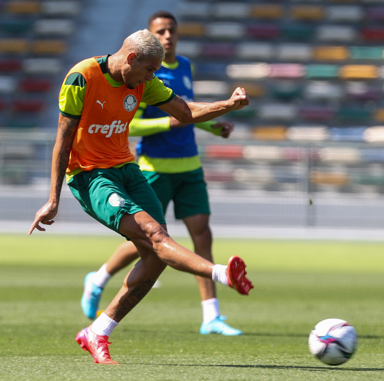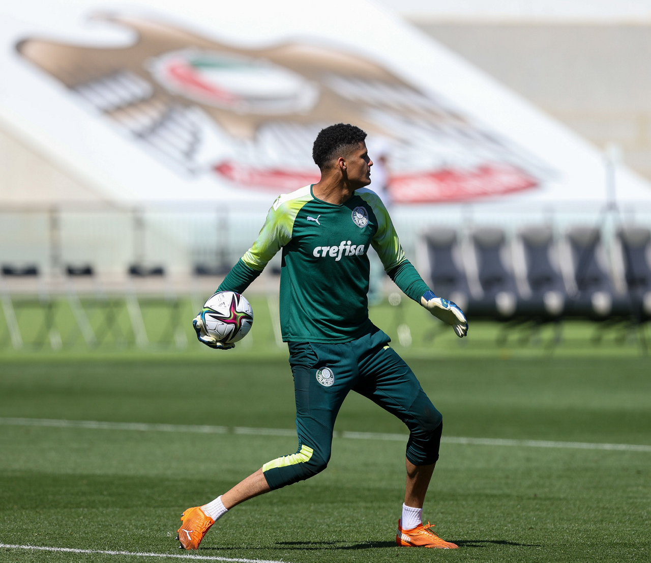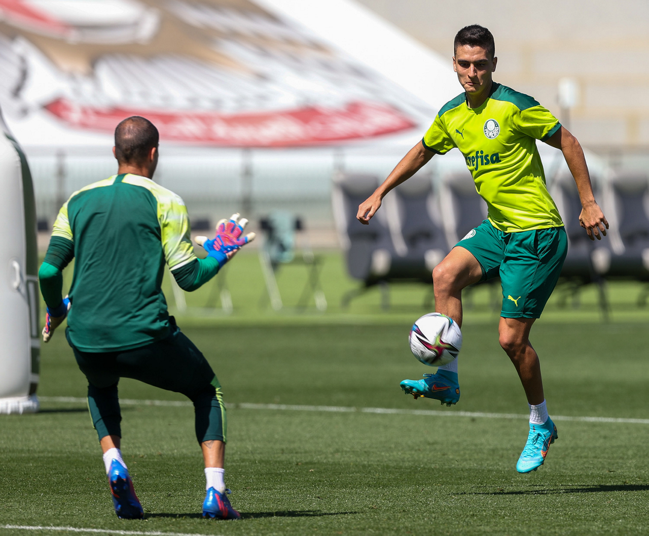 Os atletas da SE Palmeiras, durante treinamento no Zayed Sports City Stadium, em Abu Dhabi-EAU. (Foto: Fabio Menotti)