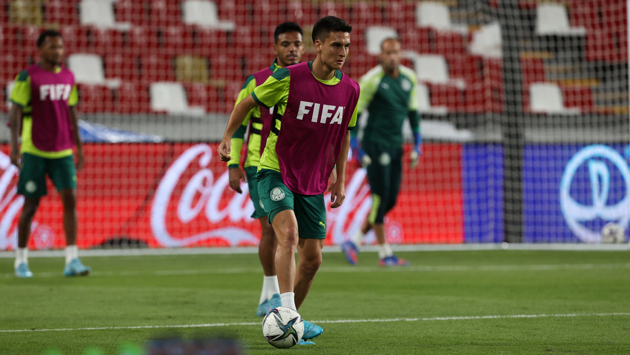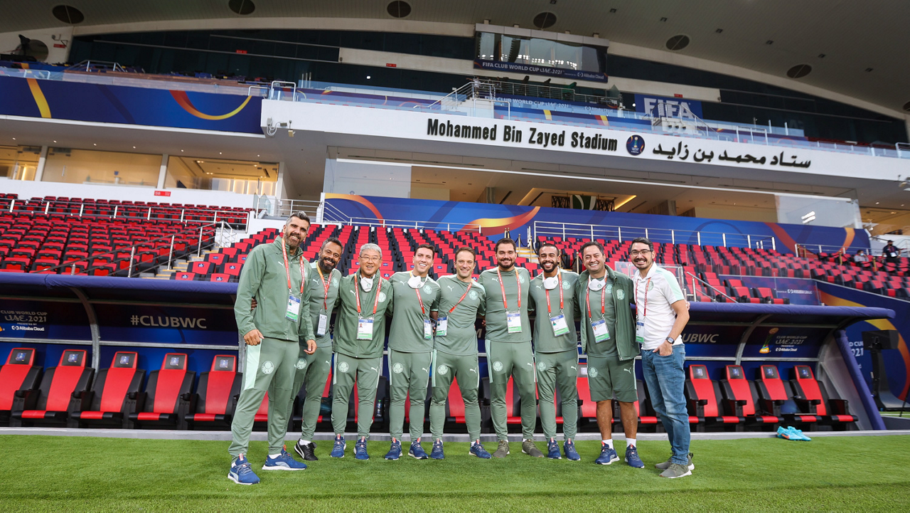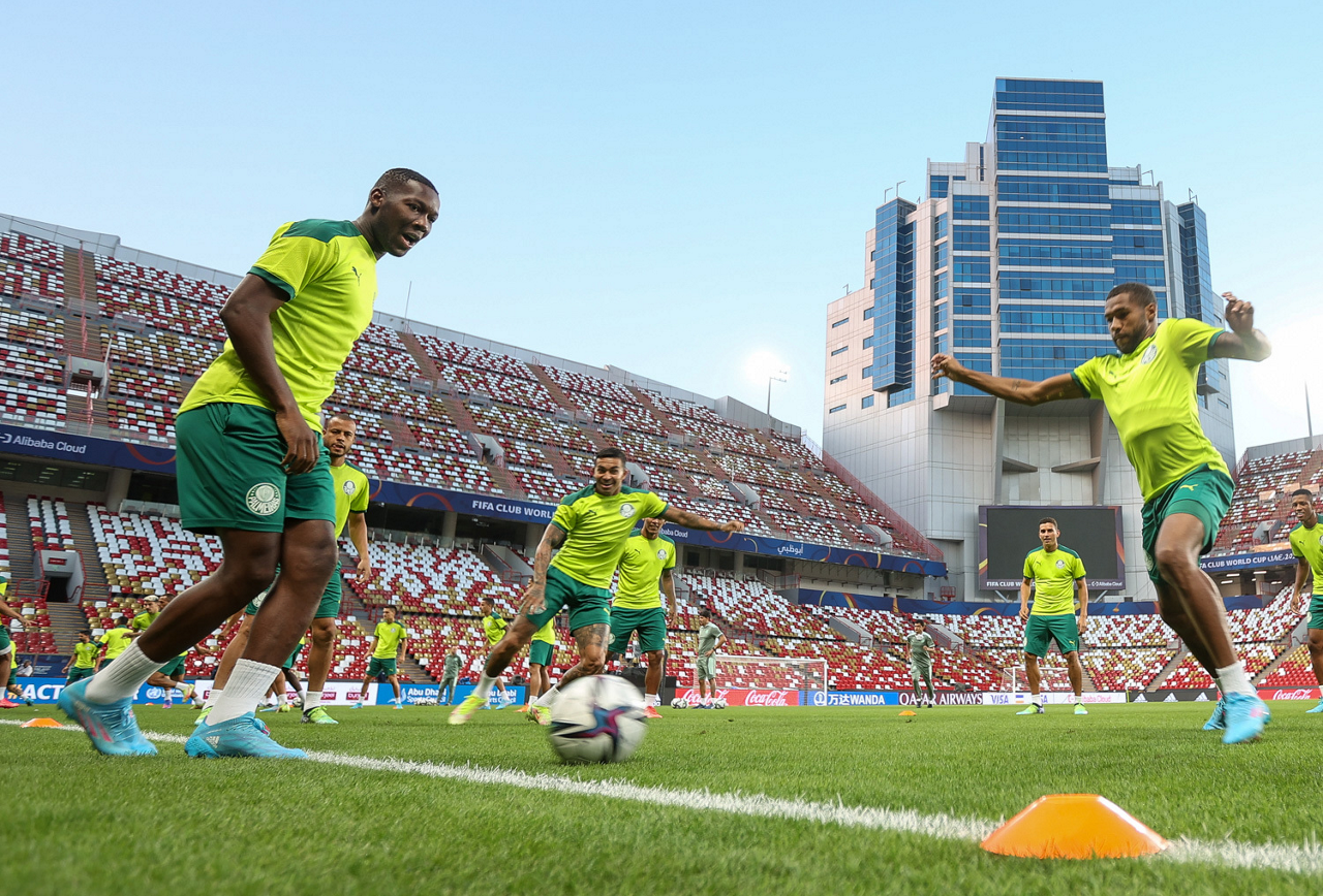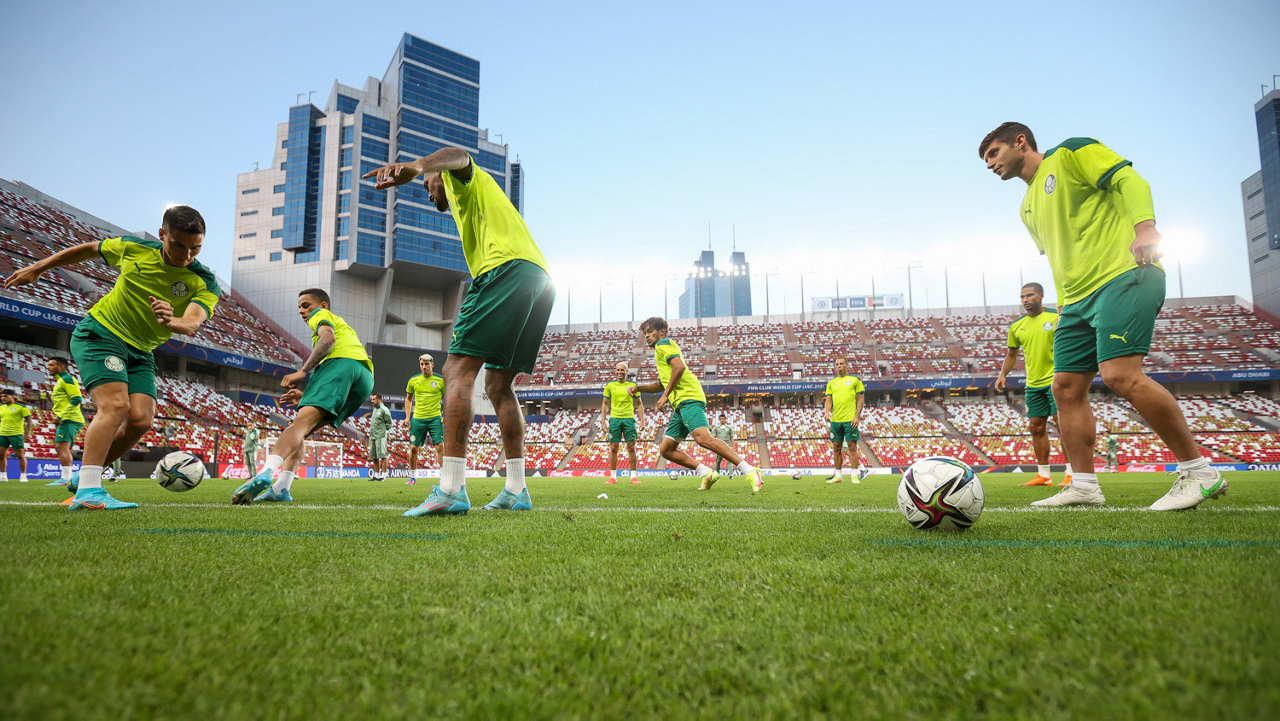 Os atletas da SE Palmeiras, durante treinamento no Mohammed Bin Zayed Stadium, em Abu Dhabi-EAU (Foto: Fabio Menotti)