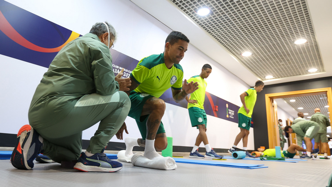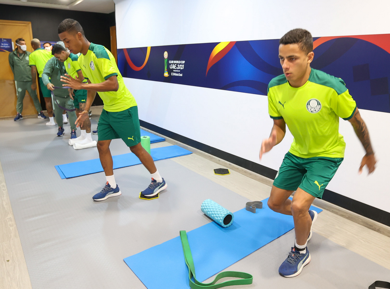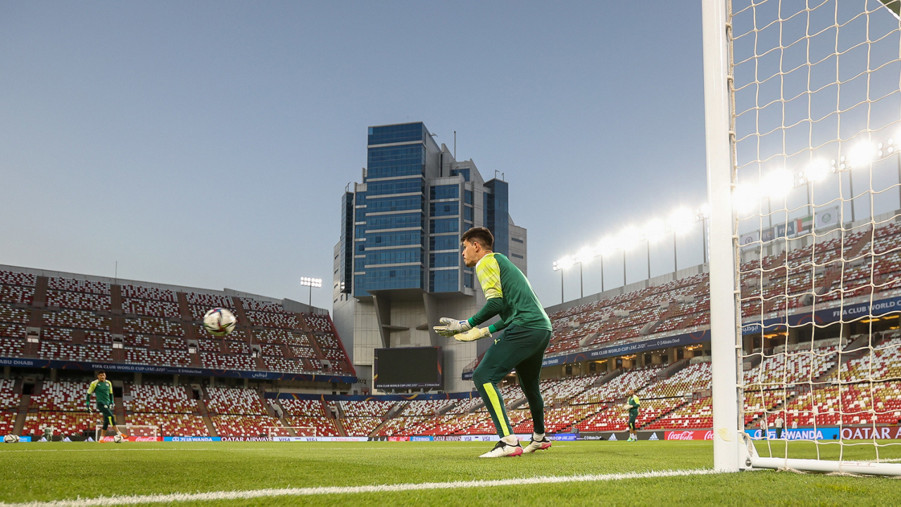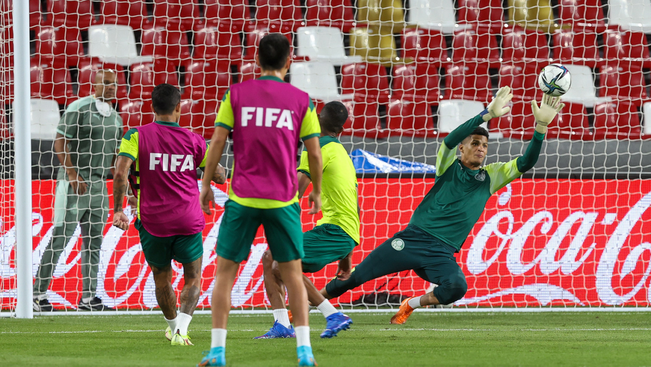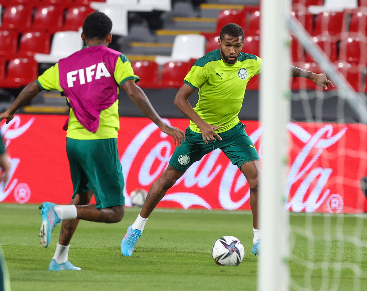 Os atletas da SE Palmeiras, durante treinamento no Mohammed Bin Zayed Stadium, em Abu Dhabi-EAU (Foto: Fabio Menotti)