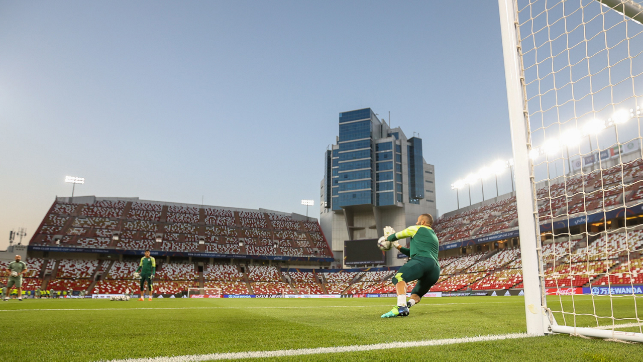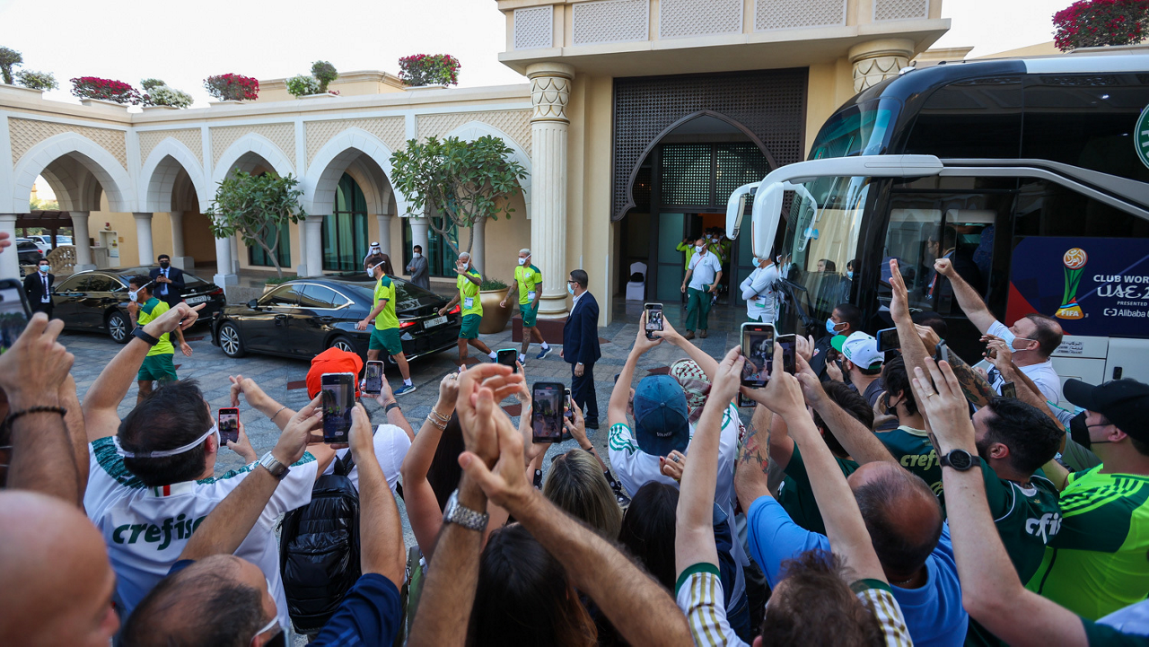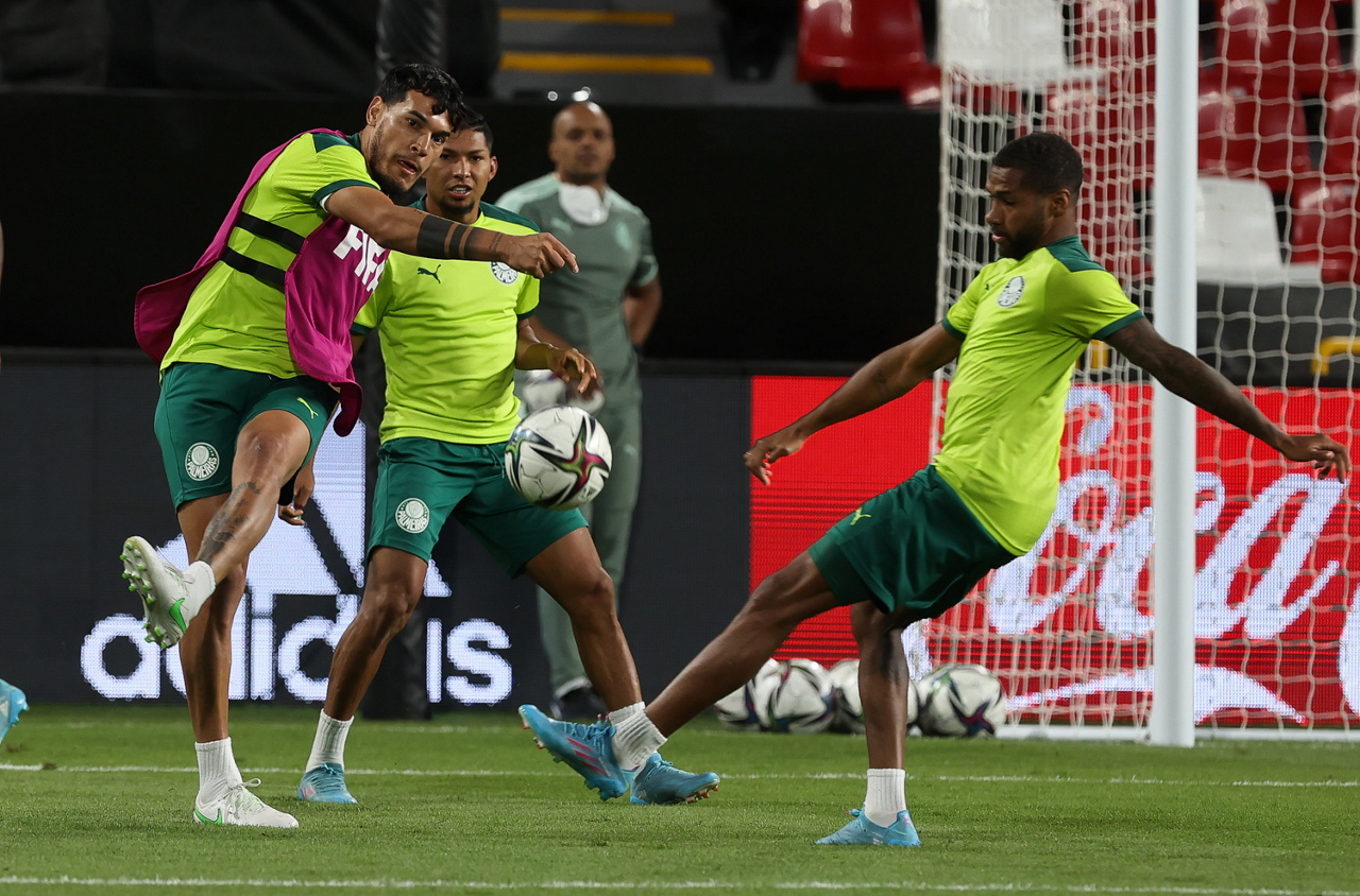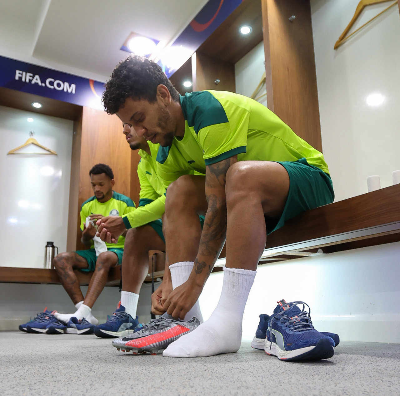 Os atletas da SE Palmeiras, durante treinamento no Mohammed Bin Zayed Stadium, em Abu Dhabi-EAU (Foto: Fabio Menotti)