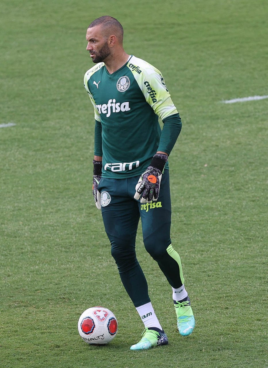 O goleiro Weverton, da SE Palmeiras, durante treinamento, na Academia de Futebol. (Foto: Cesar Greco)