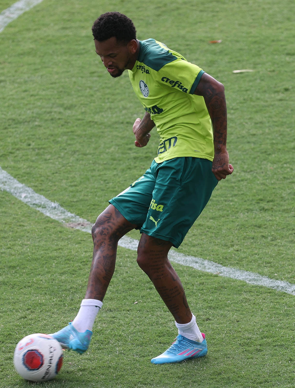 O jogador Deyverson, da SE Palmeiras, durante treinamento, na Academia de Futebol. (Foto: Cesar Greco)