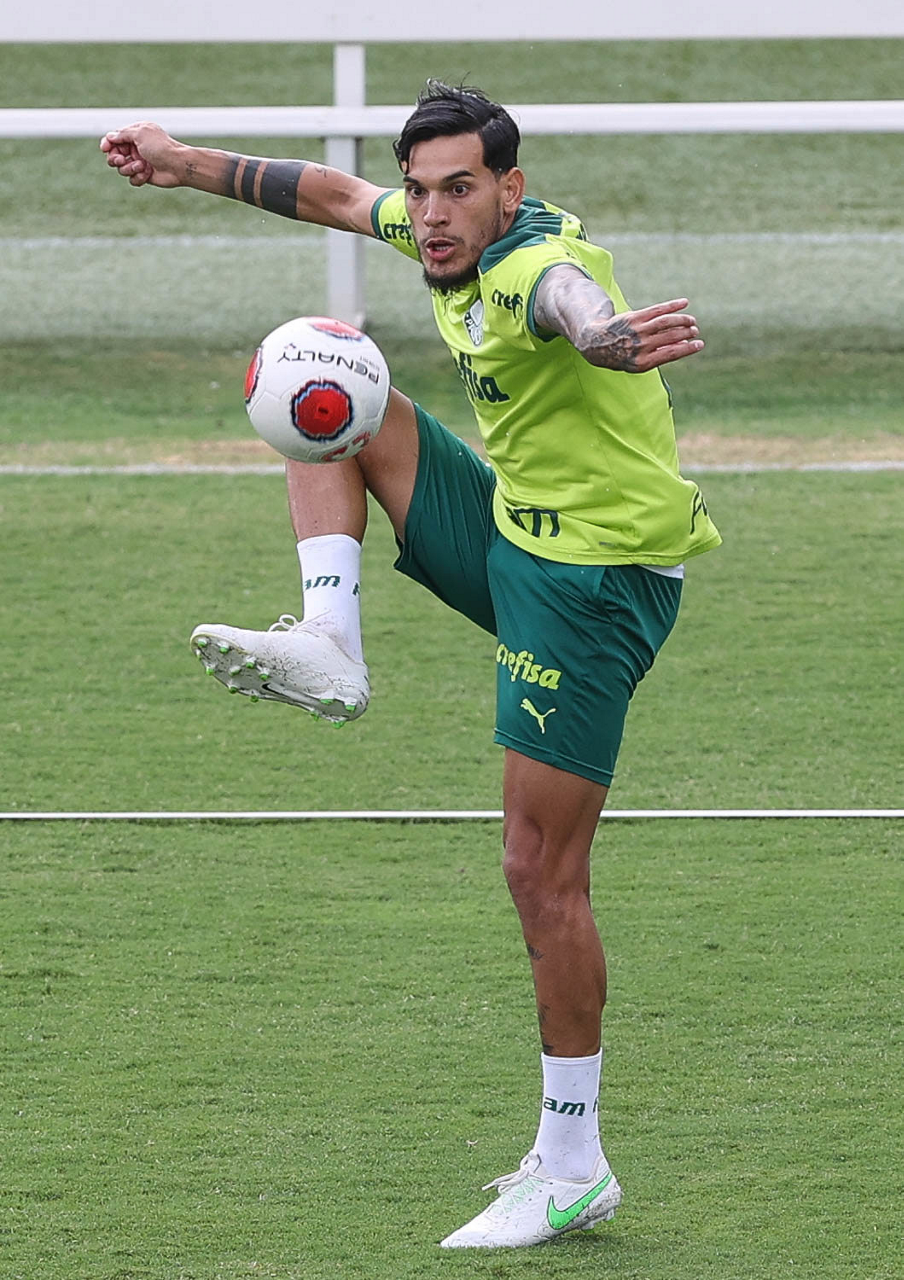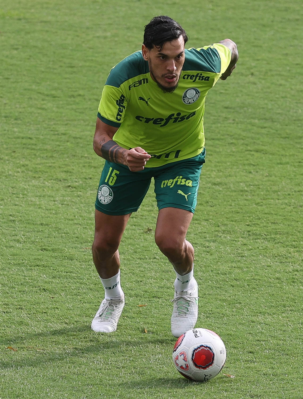 O jogador Gustavo Gómez, da SE Palmeiras, durante treinamento, na Academia de Futebol. (Foto: Cesar Greco)