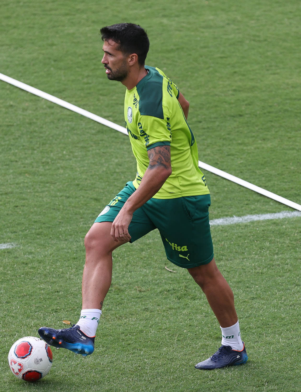 O jogador Patrick de Paula, da SE Palmeiras, durante treinamento, na Academia de Futebol. (Foto: Cesar Greco)