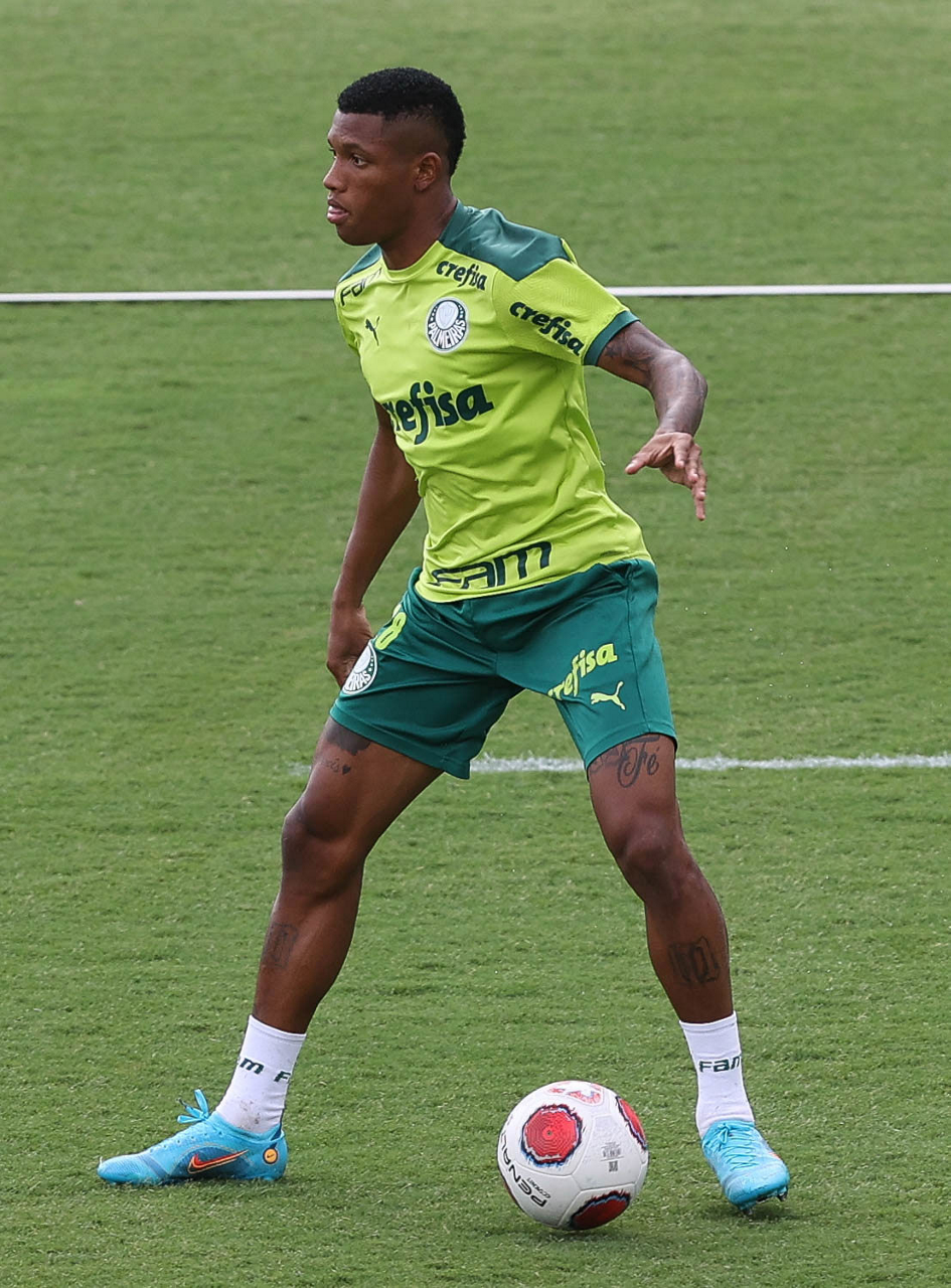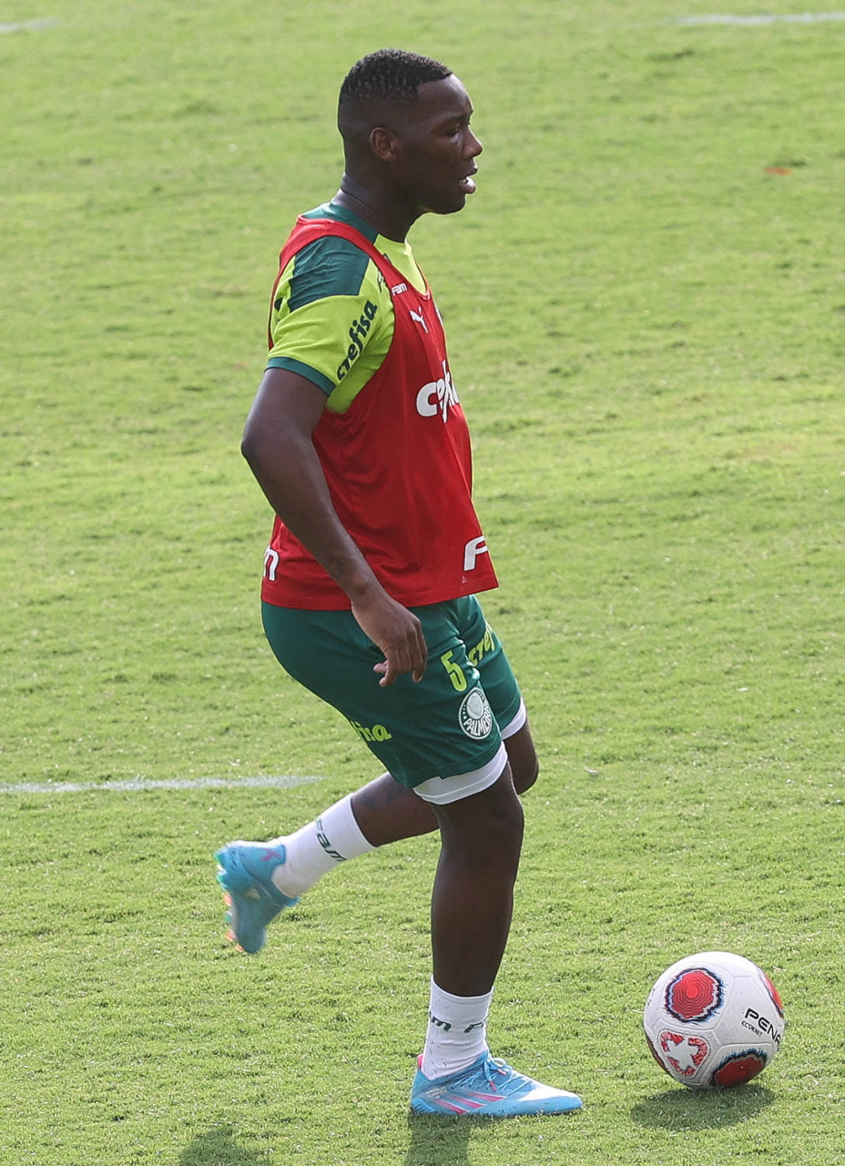 O jogador Eduard Atuesta, da SE Palmeiras, durante treinamento, na Academia de Futebol. (Foto: Cesar Greco)