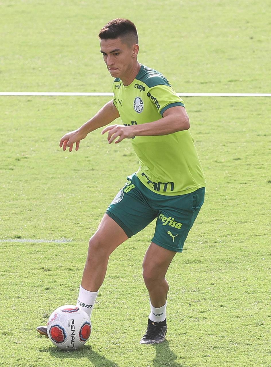 O jogador Benjamín Kuscevic, da SE Palmeiras, durante treinamento, na Academia de Futebol. (Foto: Cesar Greco)