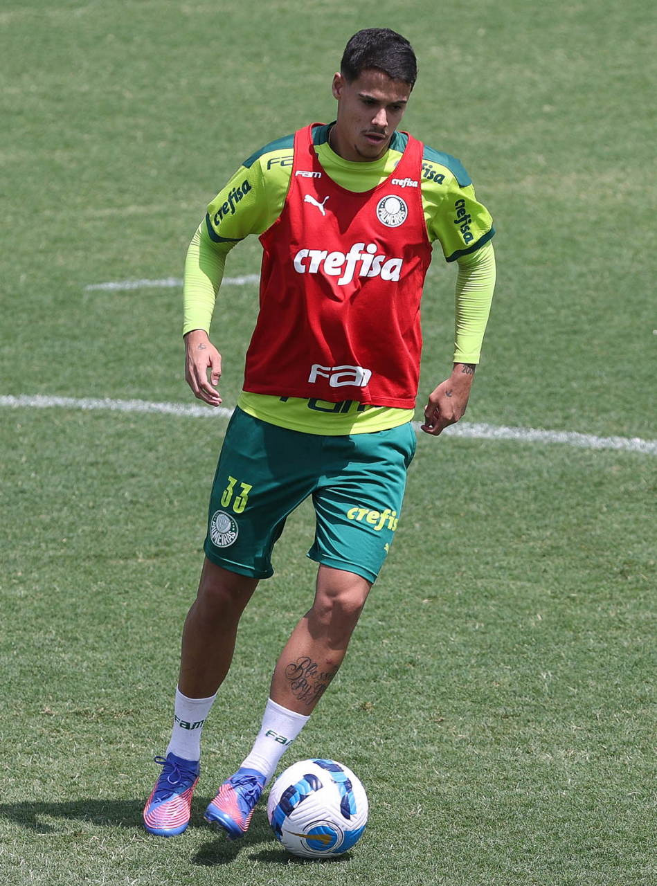 O jogador Gabriel Menino, da SE Palmeiras, durante treinamento, na Academia de Futebol. (Foto: Cesar Greco)