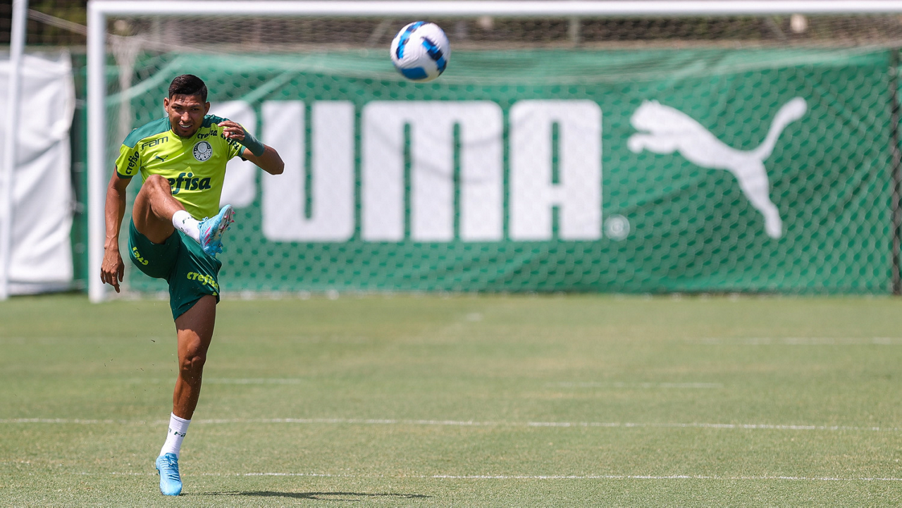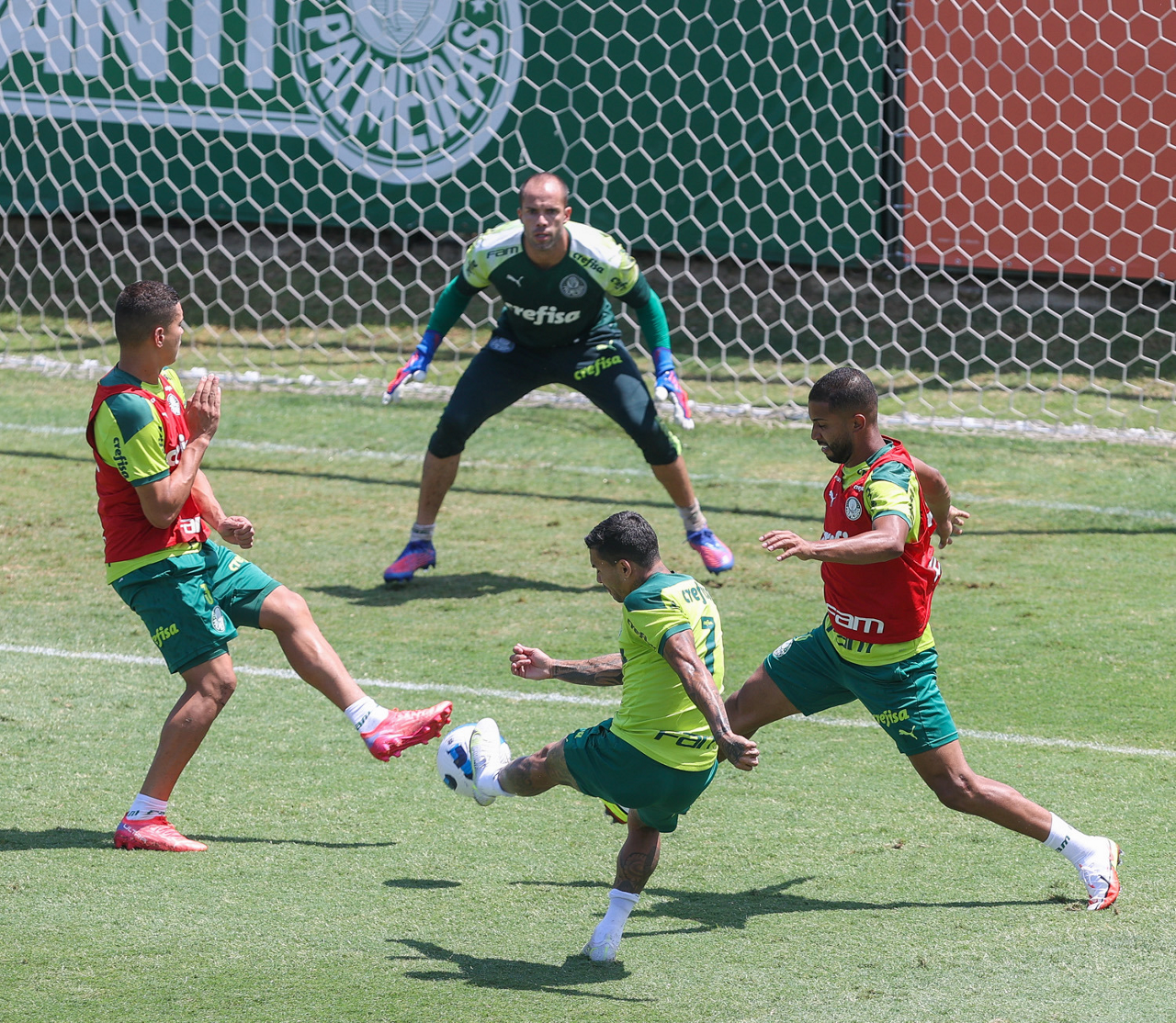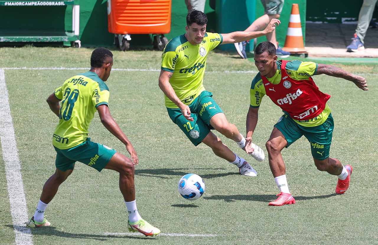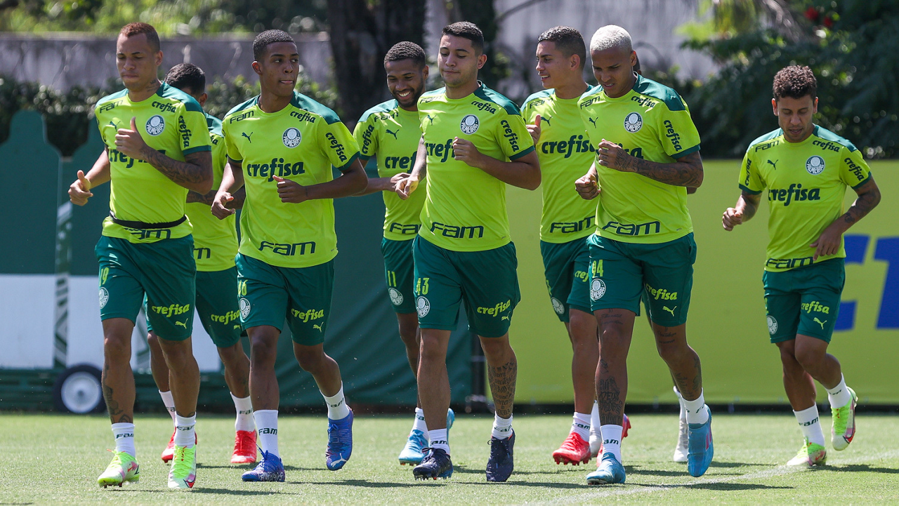 Os atletas da SE Palmeiras, durante treinamento na Academia de Futebol, em São Paulo-SP. (Foto: Fabio Menotti)