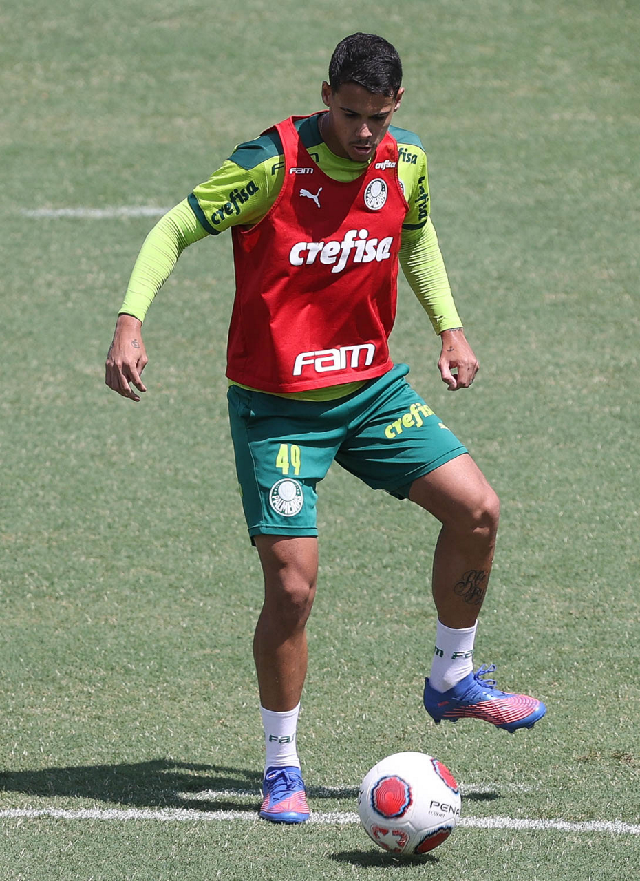 O jogador Gabriel Veron, da SE Palmeiras, durante treinamento, na Academia de Futebol. (Foto: Cesar Greco)