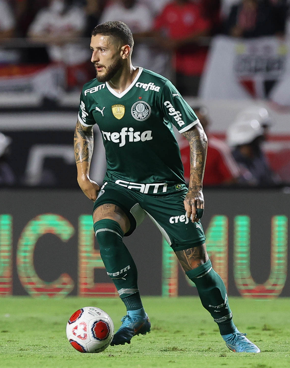O jogador Joaquín Piquerez, da SE Palmeiras, em jogo contra a equipe do São Paulo FC, durante partida válida pela final, ida, do Campeonato Paulista, Série A1, no Estádio do Morumbi. (Foto: Cesar Greco)