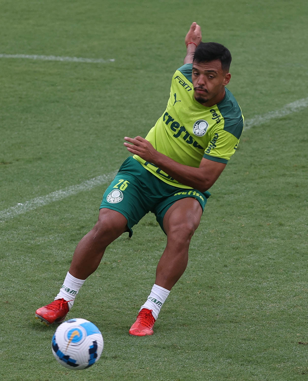 O jogador Gustavo Gómez, da SE Palmeiras, durante treinamento, na Academia de Futebol. (Foto: Cesar Greco)