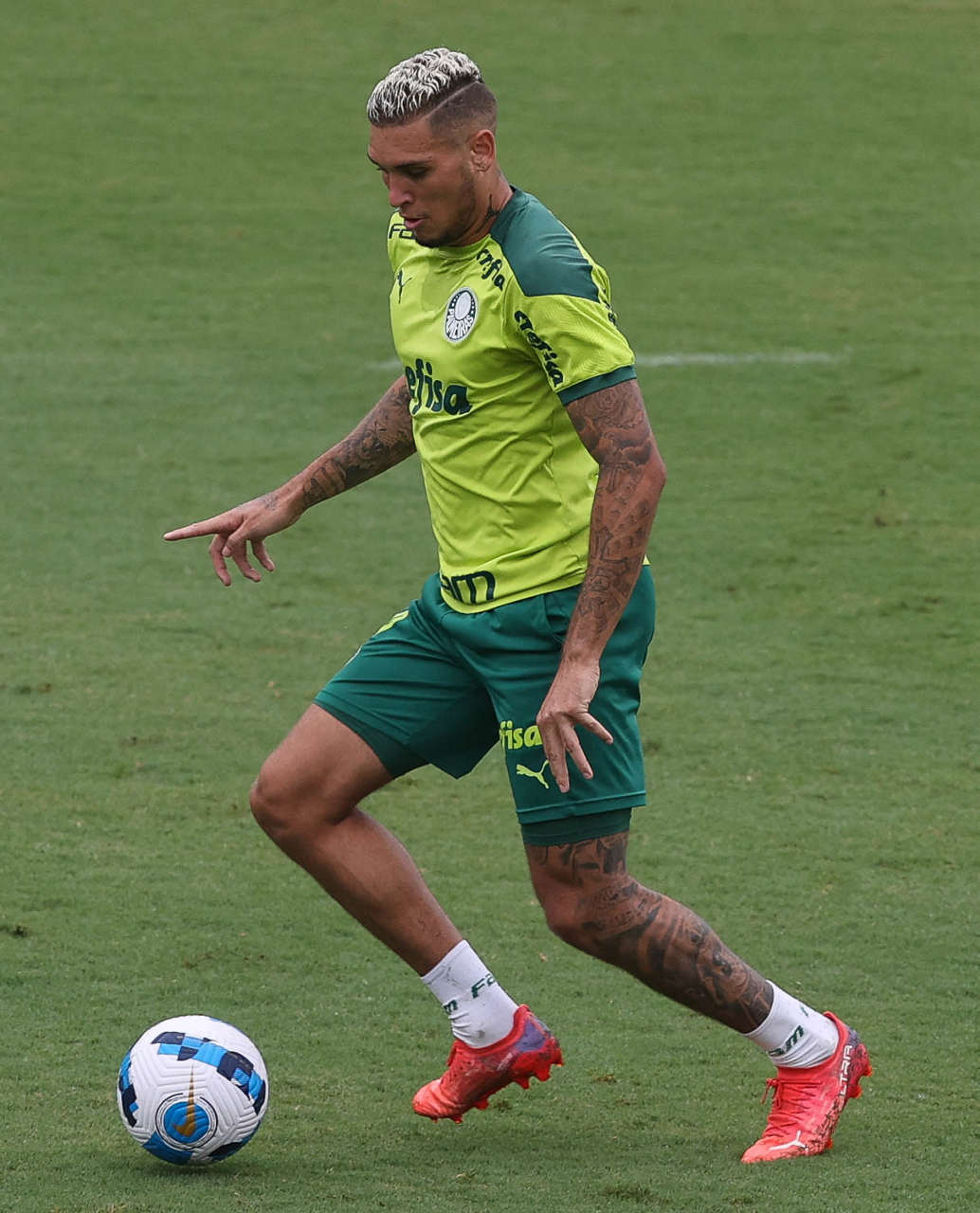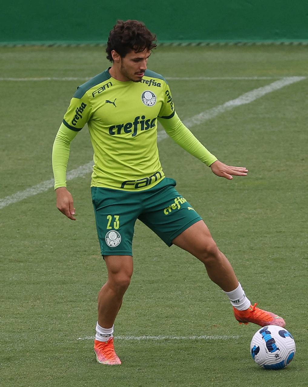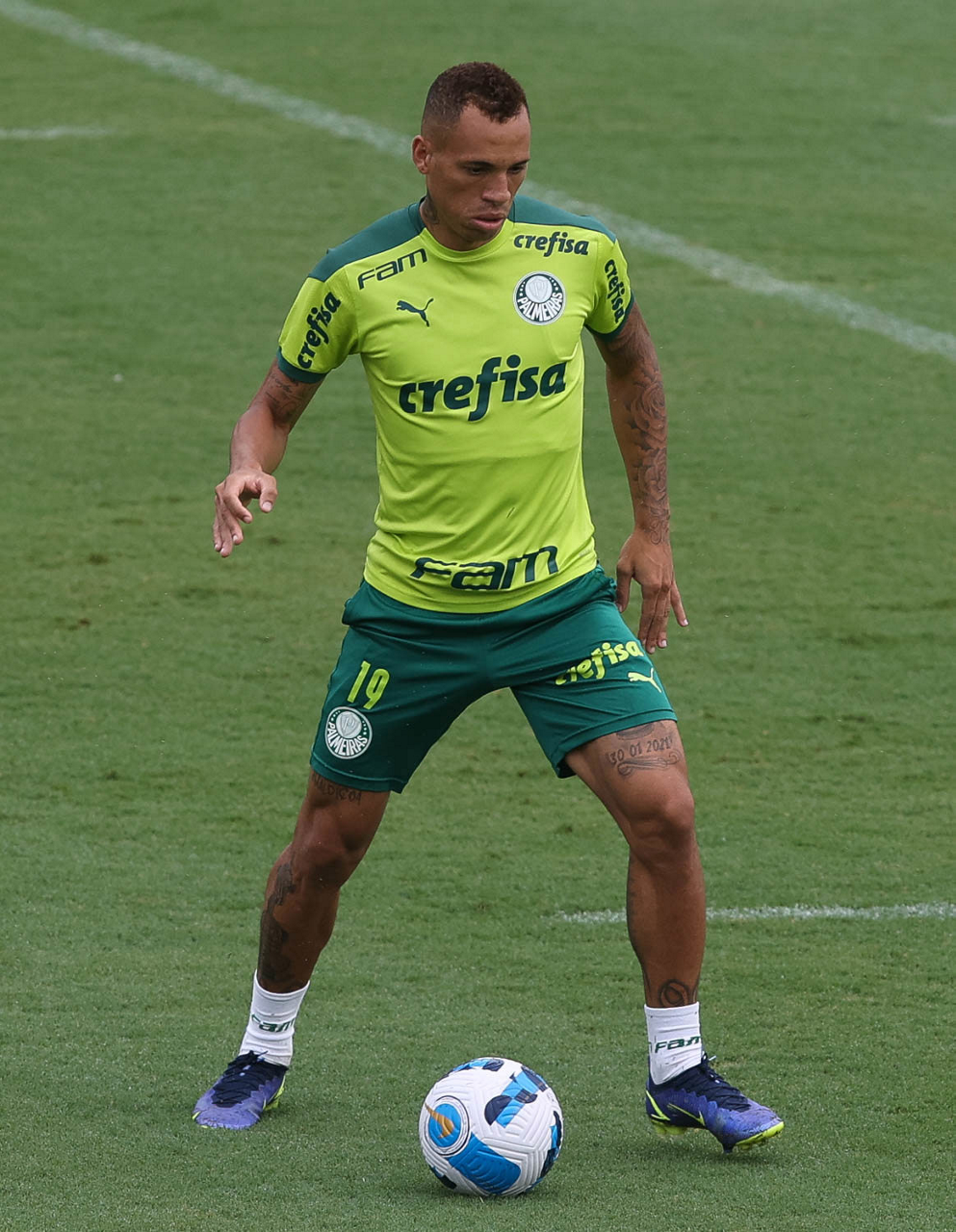 O jogador Raphael Veiga, da SE Palmeiras, durante treinamento, na Academia de Futebol. (Foto: Cesar Greco)