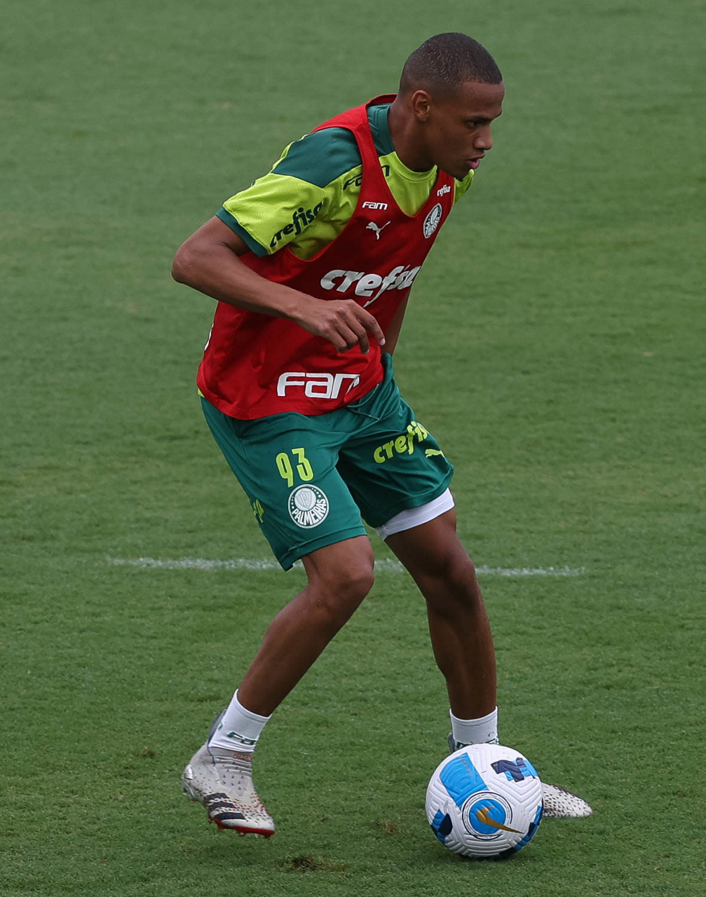 O jogador Gabriel Menino, da SE Palmeiras, durante treinamento, na Academia de Futebol. (Foto: Cesar Greco)