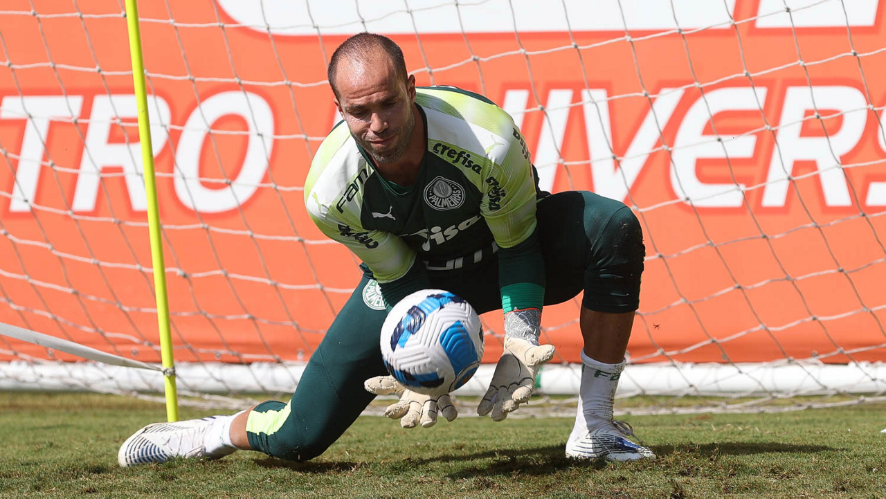 O goleiro Weverton, da SE Palmeiras, durante treinamento, na Academia de Futebol. (Foto: Cesar Greco)