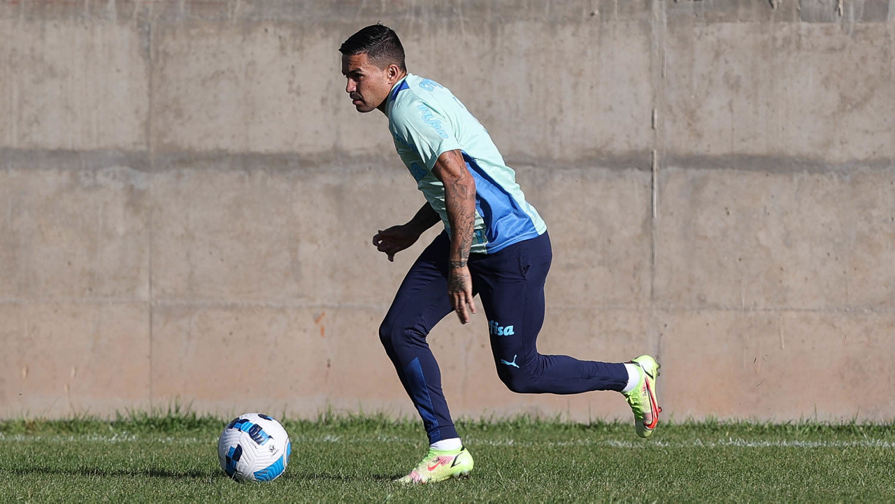 O jogador Joaquín Piquerez, da SE Palmeiras, durante treinamento, no campo anexo ao Estádio Olímpico Pátria, em Sucre. (Foto: Cesar Greco)