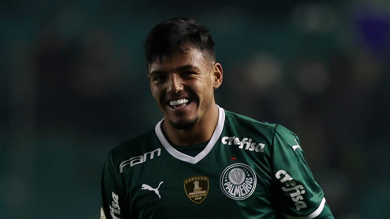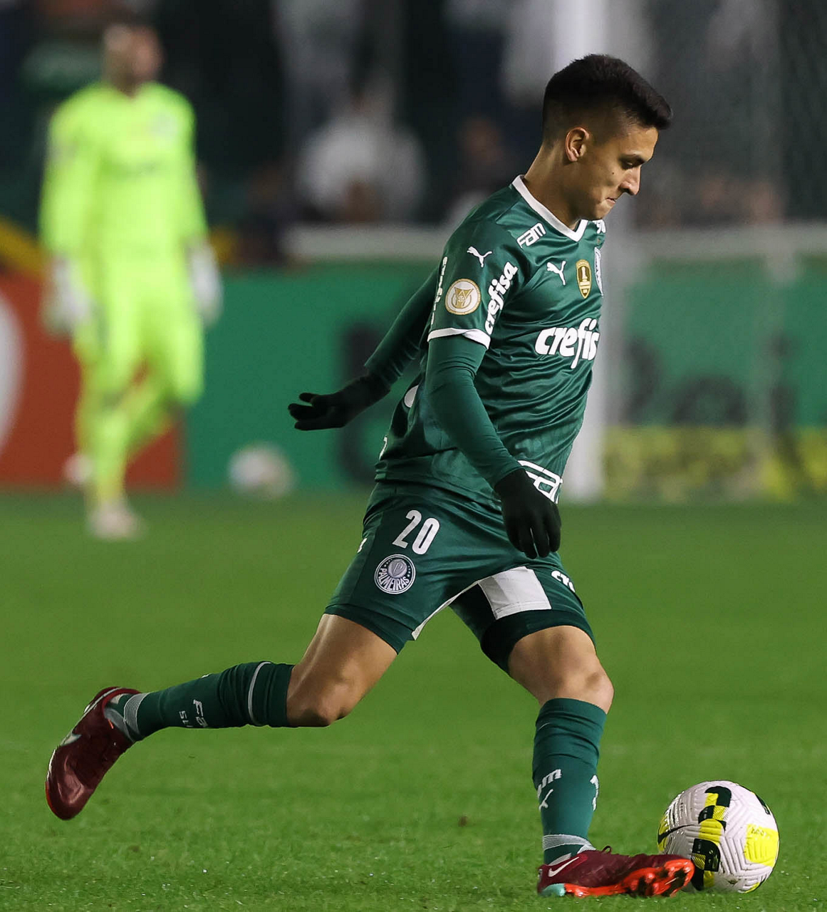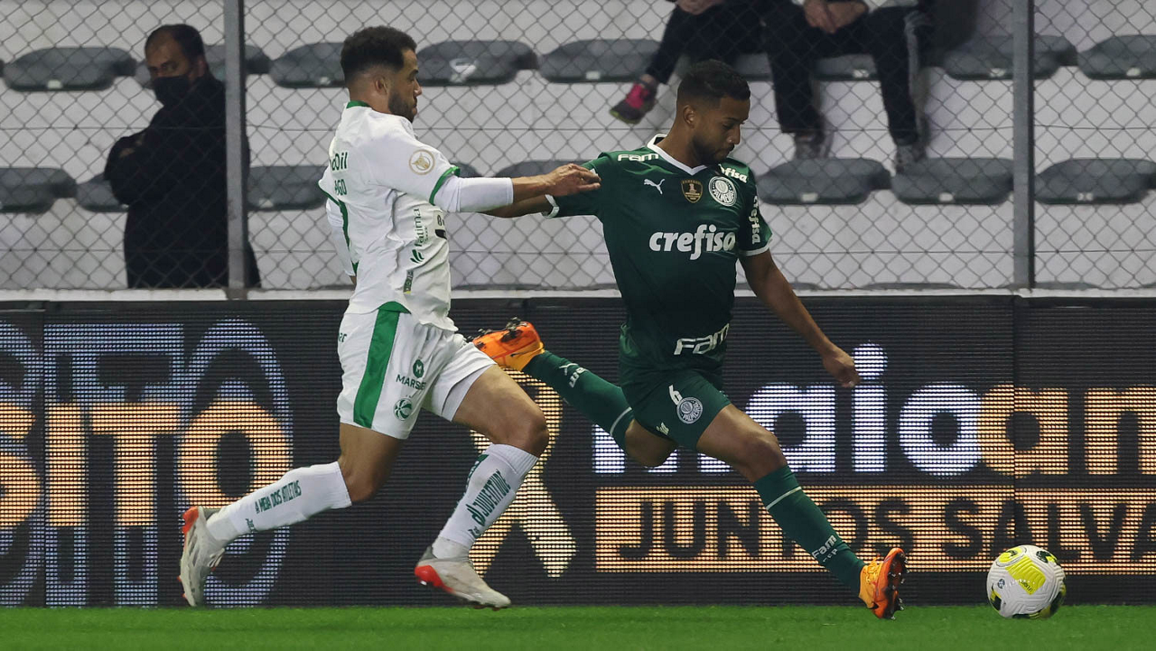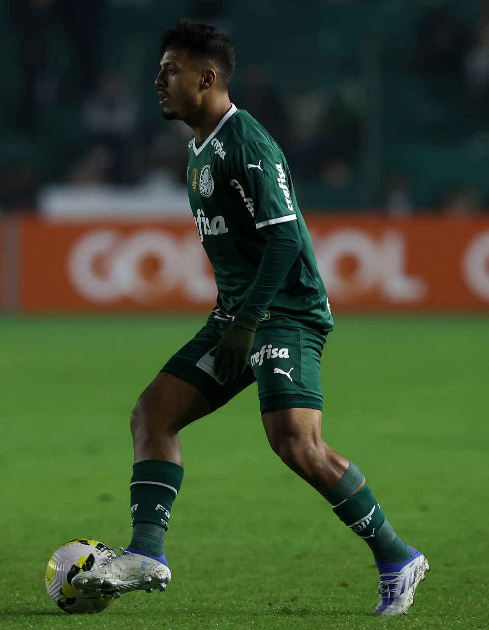 O jogador Gabriel Menino, da SE Palmeiras, em jogo contra a equipe do EC Juventude, durante partida válida pela sétima rodada, do Campeonato Brasileiro, Série A, no Estádio Alfredo Jaconi. (Foto: Cesar Greco)