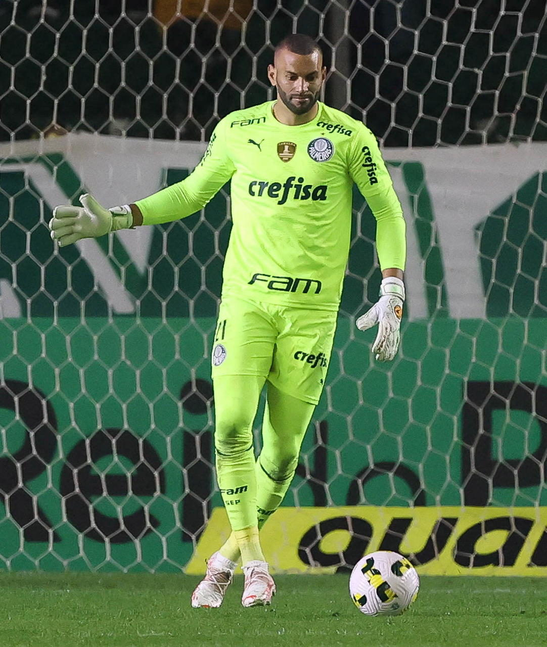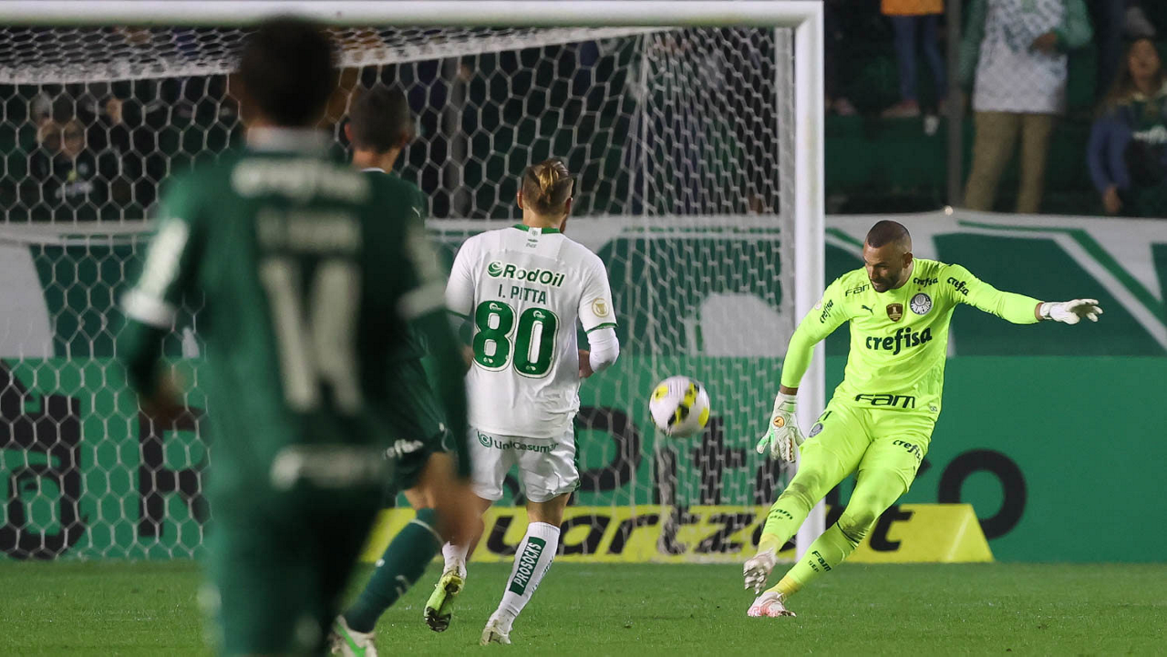 O goleiro Weverton, da SE Palmeiras, em jogo contra a equipe do EC Juventude, durante partida válida pela sétima rodada, do Campeonato Brasileiro, Série A, no Estádio Alfredo Jaconi. (Foto: Cesar Greco)