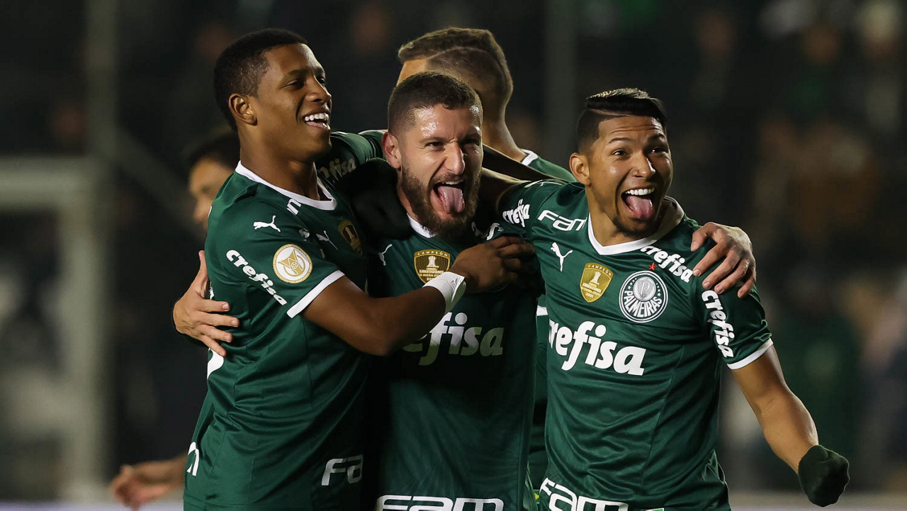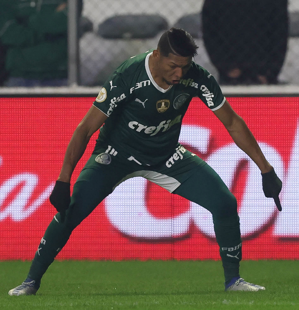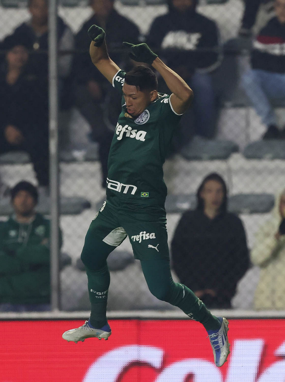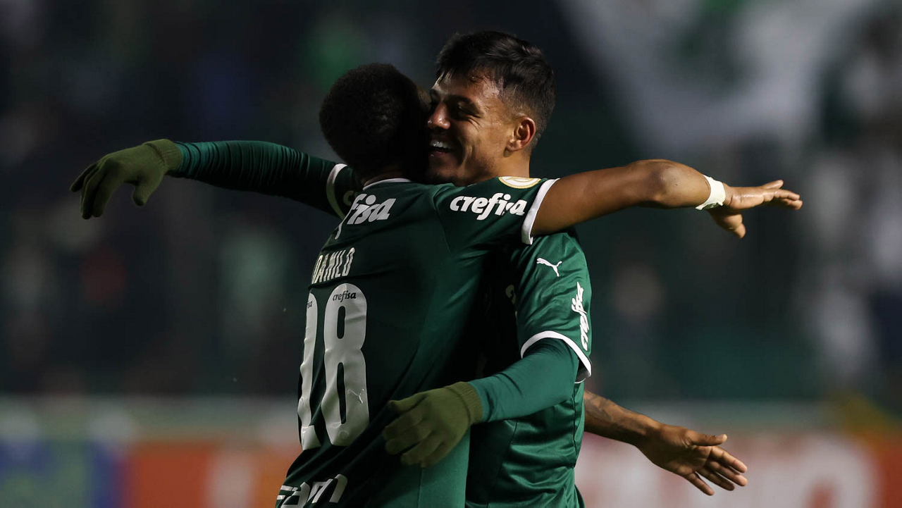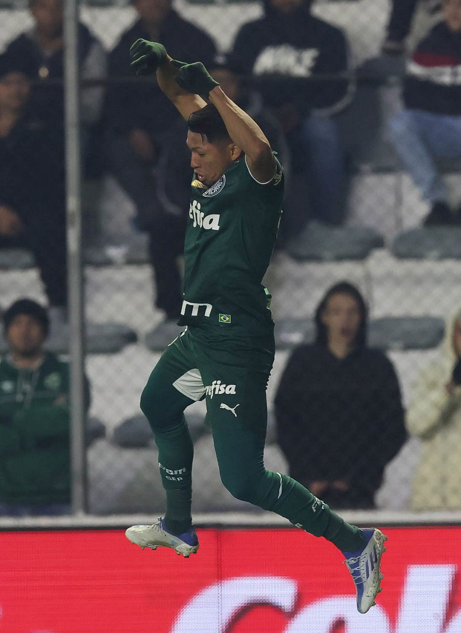 O jogador Gabriel Menino, da SE Palmeiras, comemora seu gol contra a equipe do EC Juventude, durante partida válida pela sétima rodada, do Campeonato Brasileiro, Série A, no Estádio Alfredo Jaconi. (Foto: Cesar Greco)