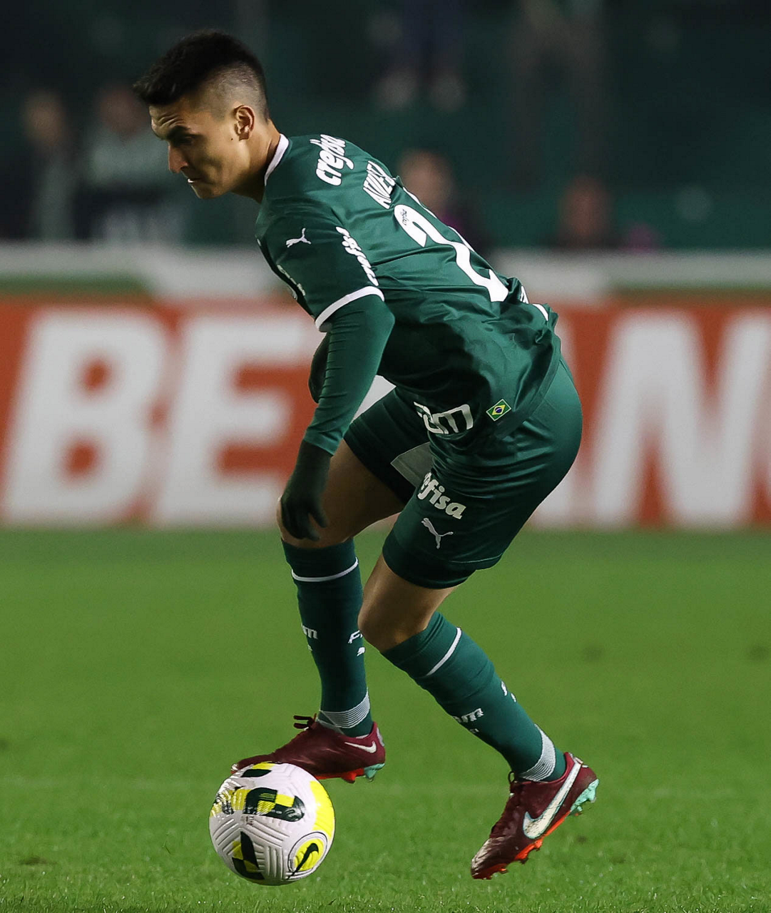 O jogador Benjamín Kuscevic, da SE Palmeiras, em jogo contra a equipe do EC Juventude, durante partida válida pela sétima rodada, do Campeonato Brasileiro, Série A, no Estádio Alfredo Jaconi. (Foto: Cesar Greco)