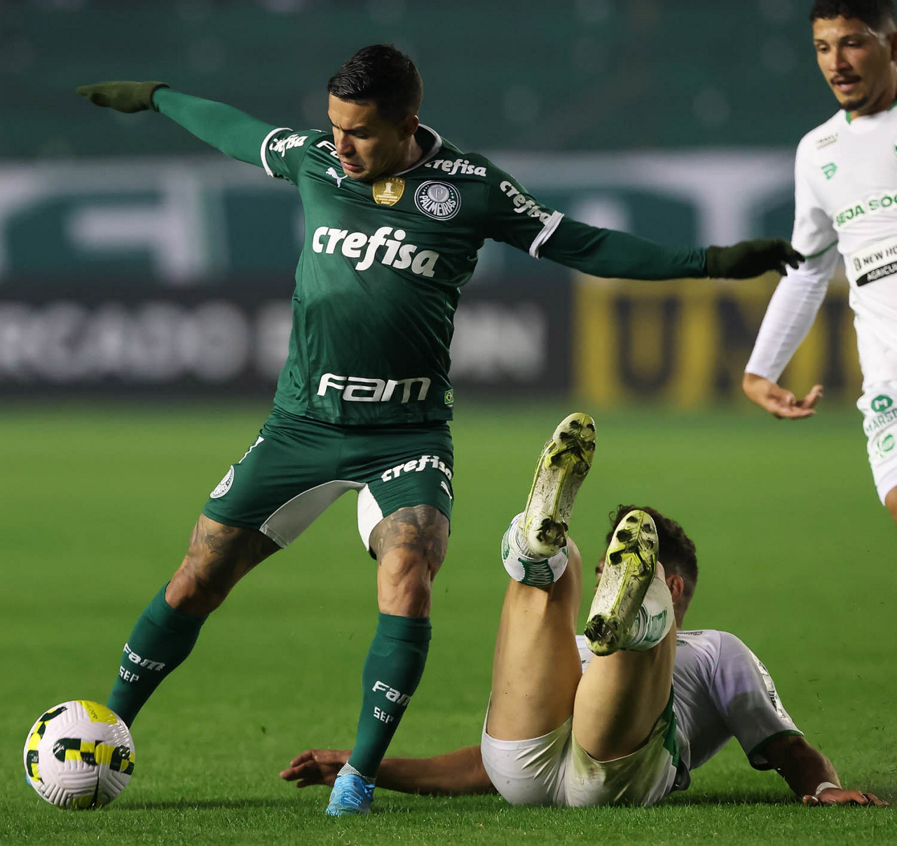 O jogador Eduard Atuesta, da SE Palmeiras, em jogo contra a equipe do EC Juventude, durante partida válida pela sétima rodada, do Campeonato Brasileiro, Série A, no Estádio Alfredo Jaconi. (Foto: Cesar Greco)