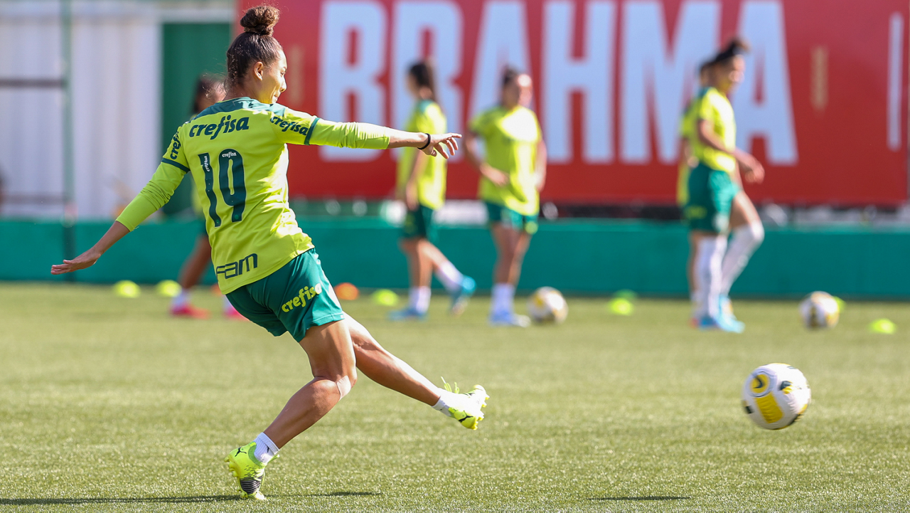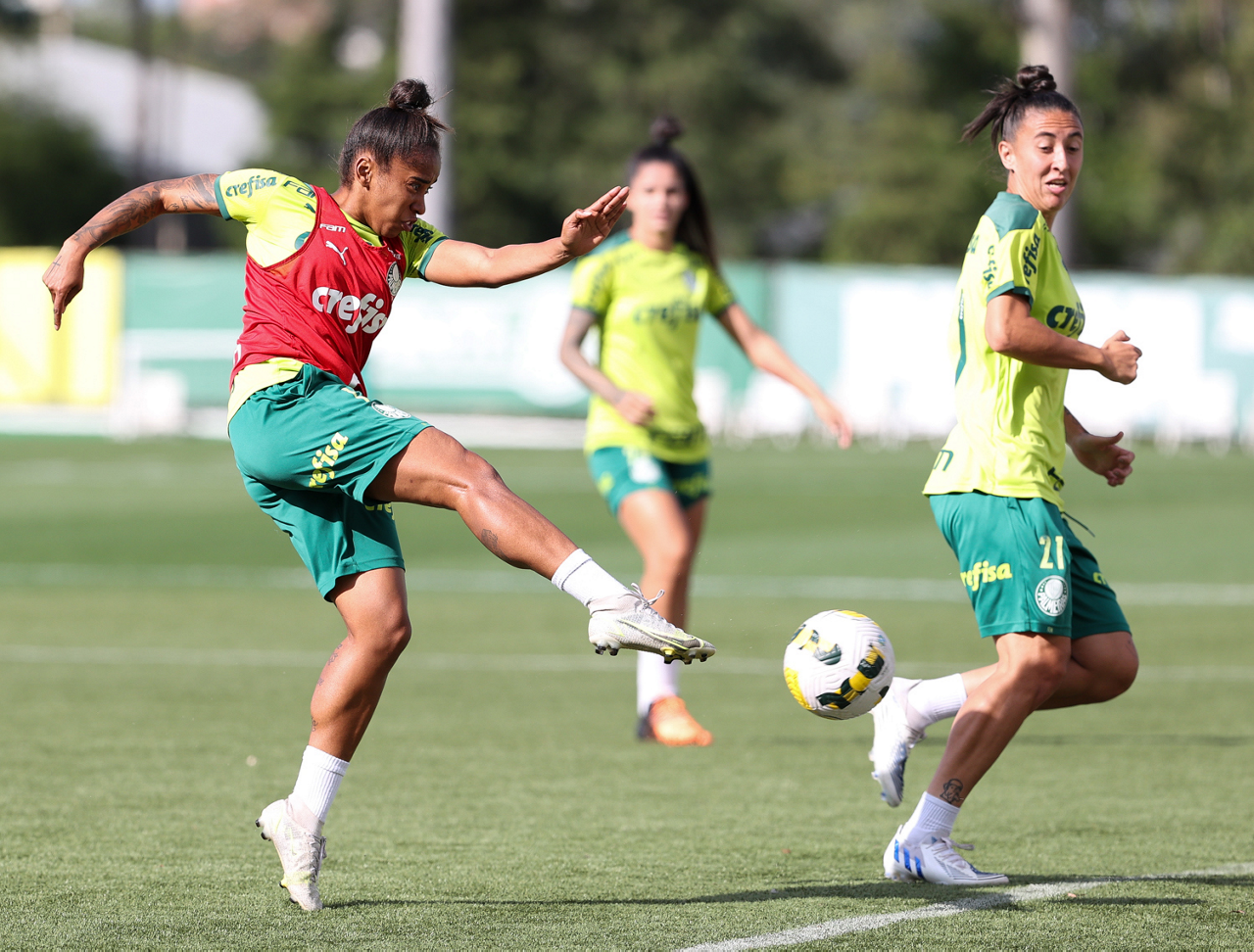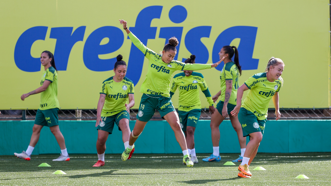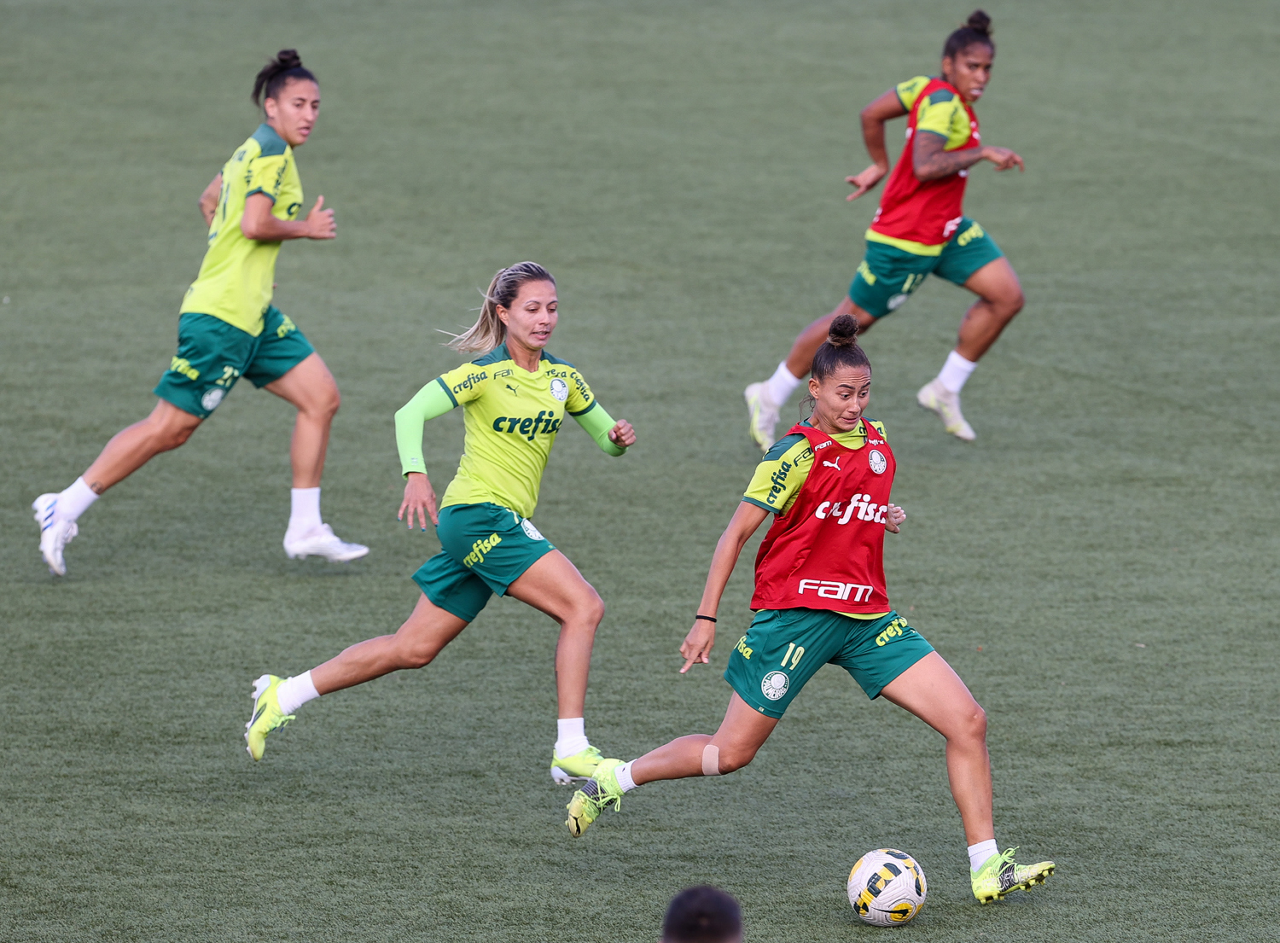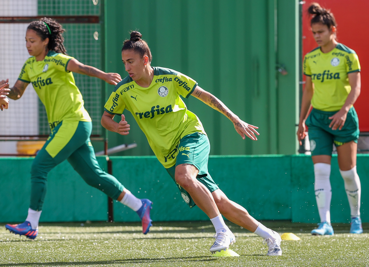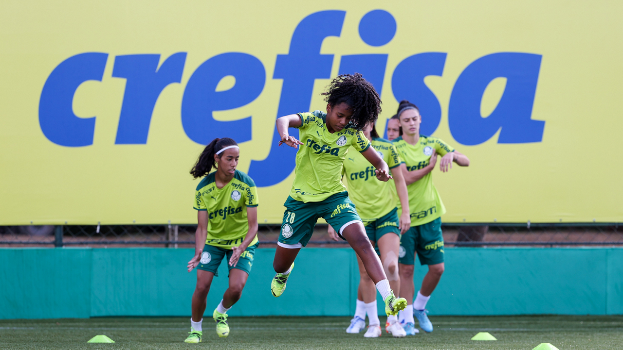 As atletas da equipe feminina da SE Palmeiras, durante treinamento na Academia de Futebol, em São Paulo-SP. (Foto: Fabio Menotti)