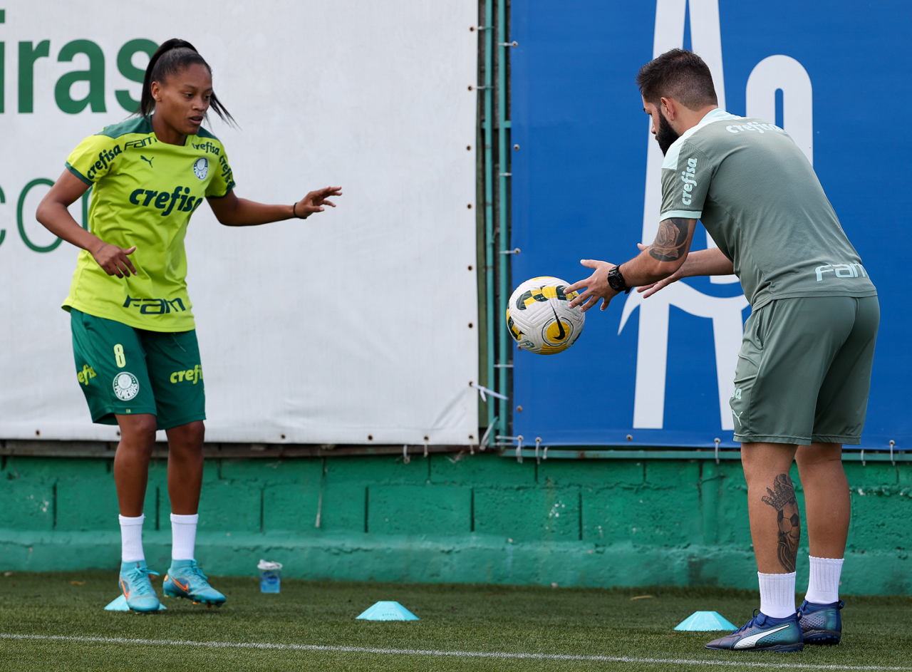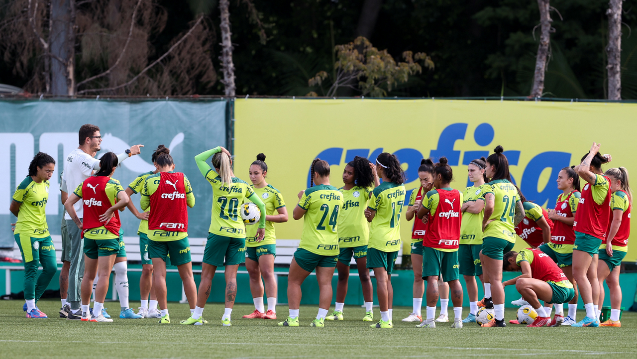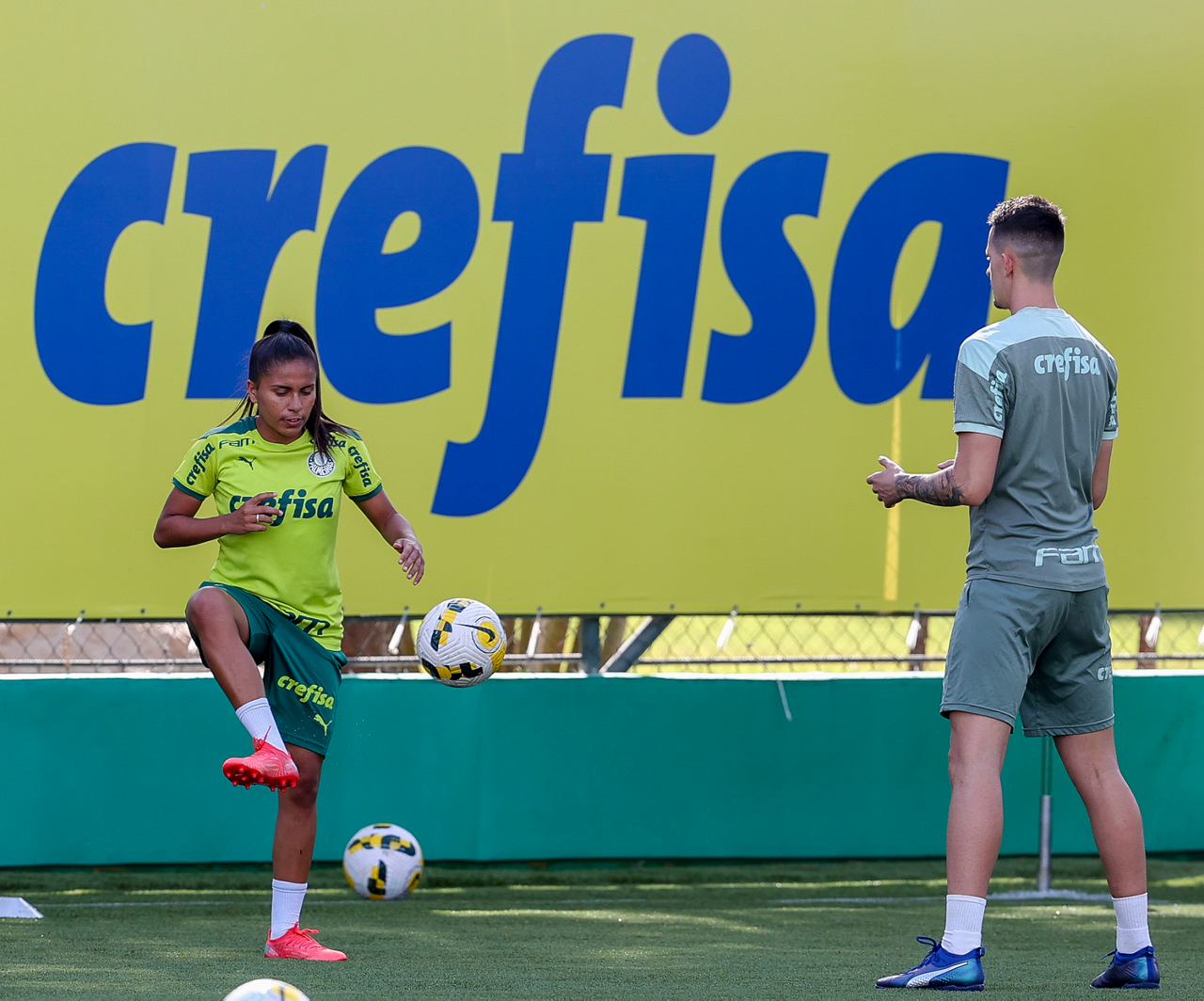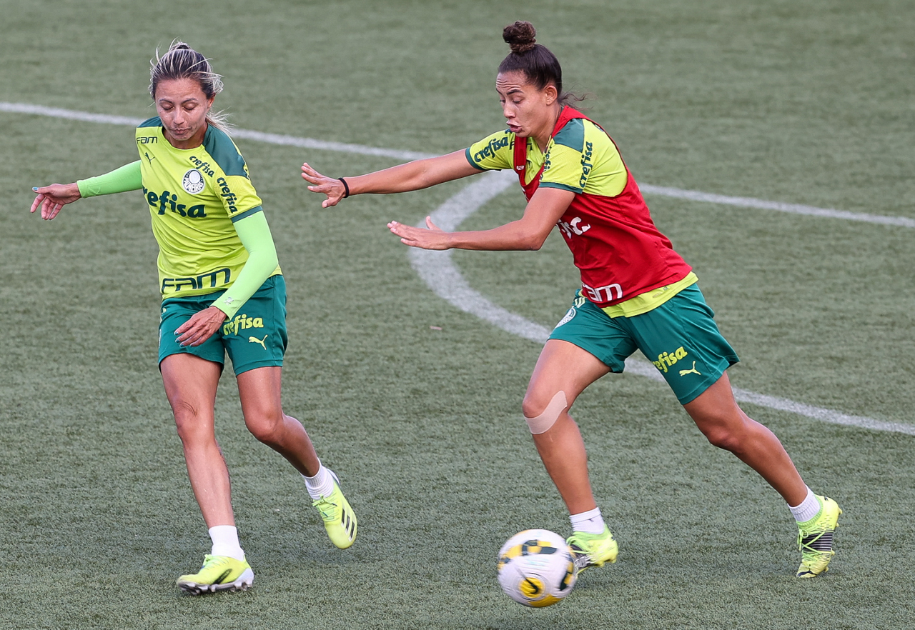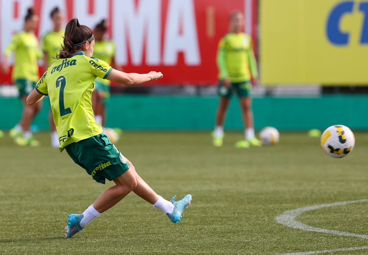 As atletas da equipe feminina da SE Palmeiras, durante treinamento na Academia de Futebol, em São Paulo-SP. (Foto: Fabio Menotti)