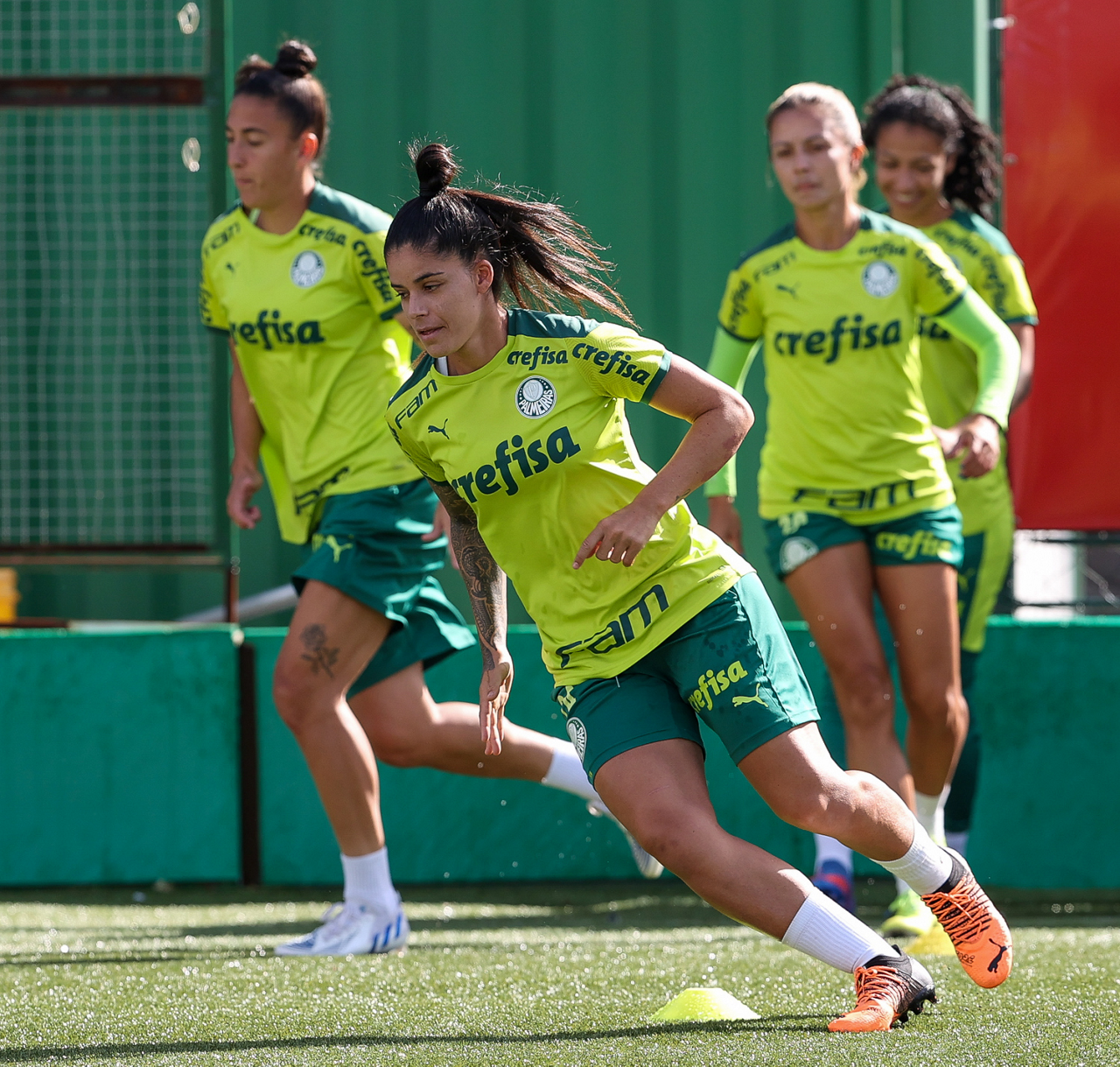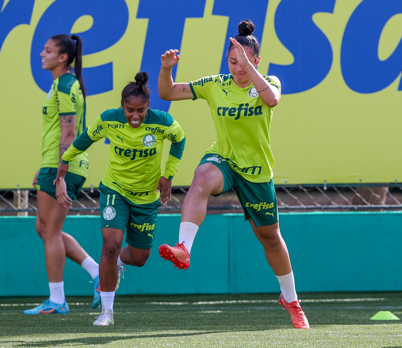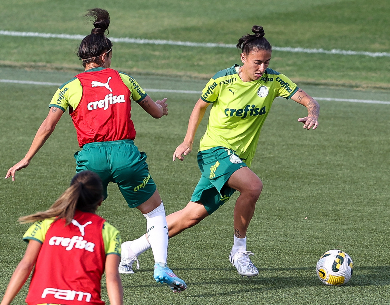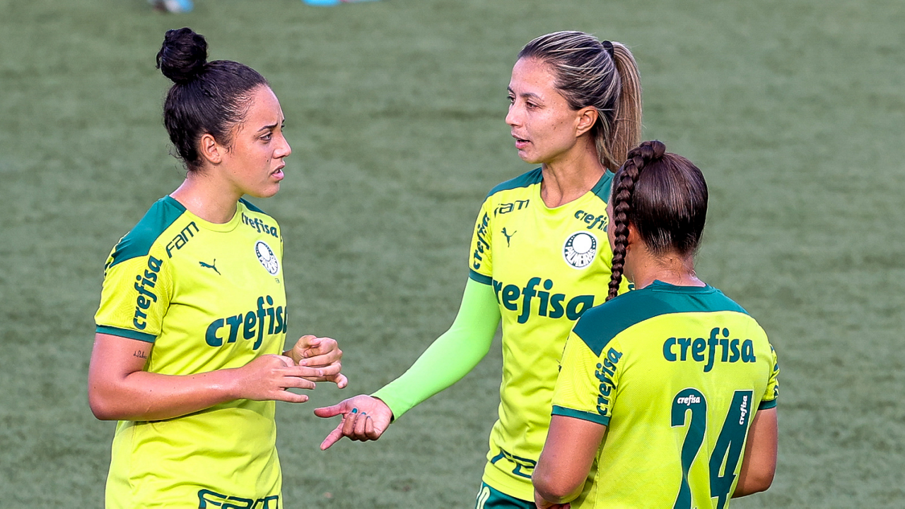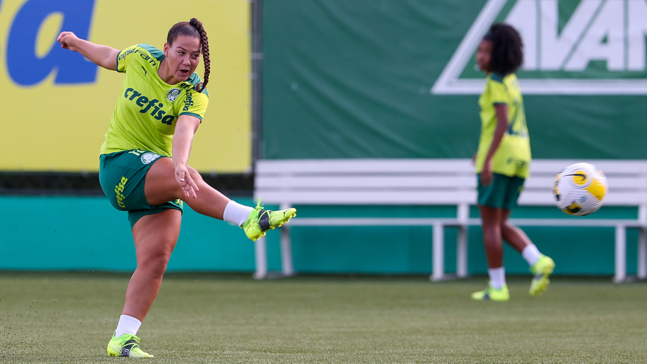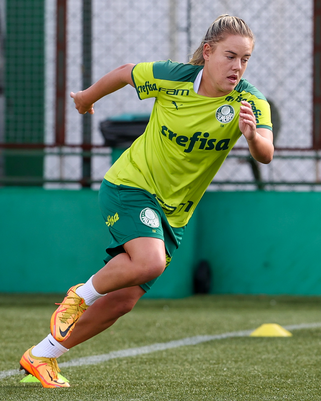 As atletas da equipe feminina da SE Palmeiras, durante treinamento na Academia de Futebol, em São Paulo-SP. (Foto: Fabio Menotti)