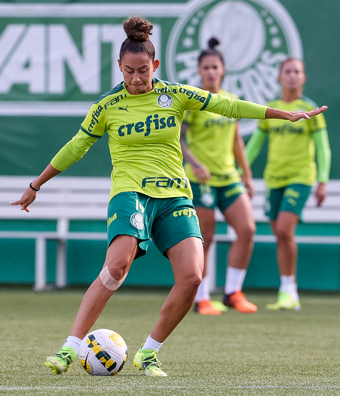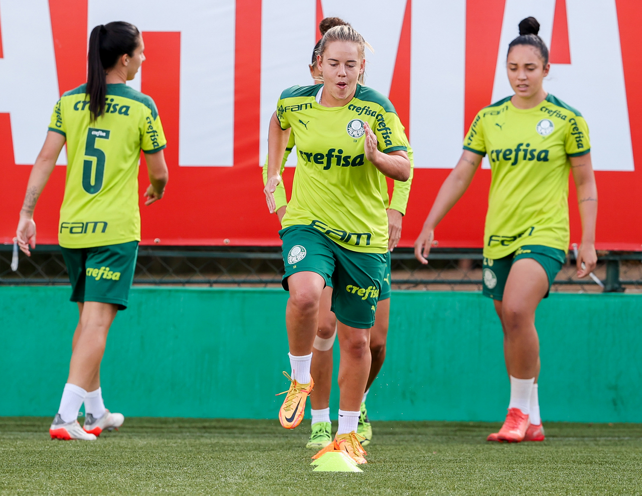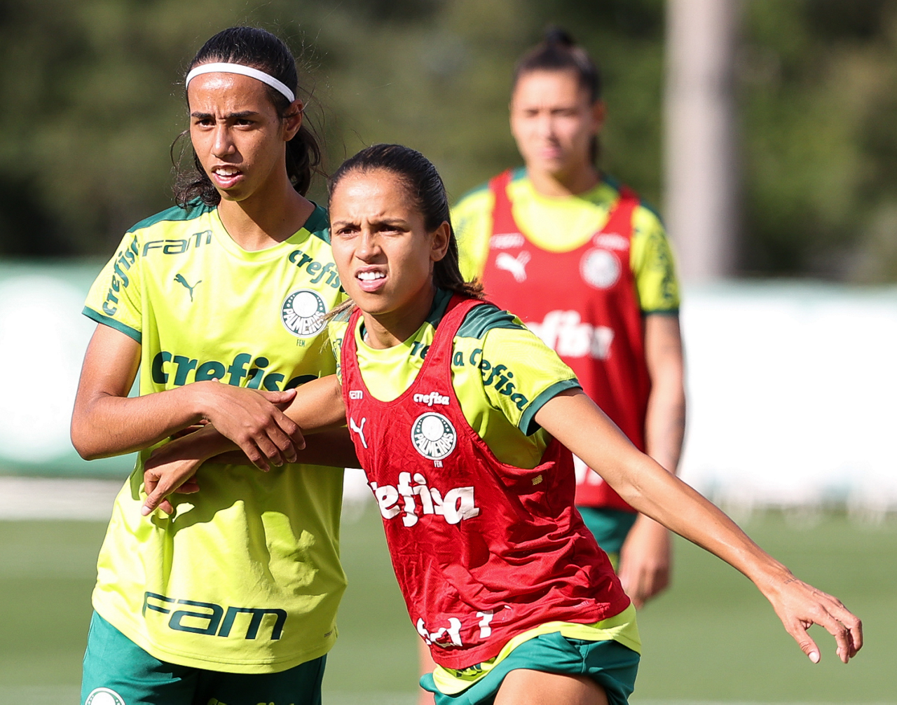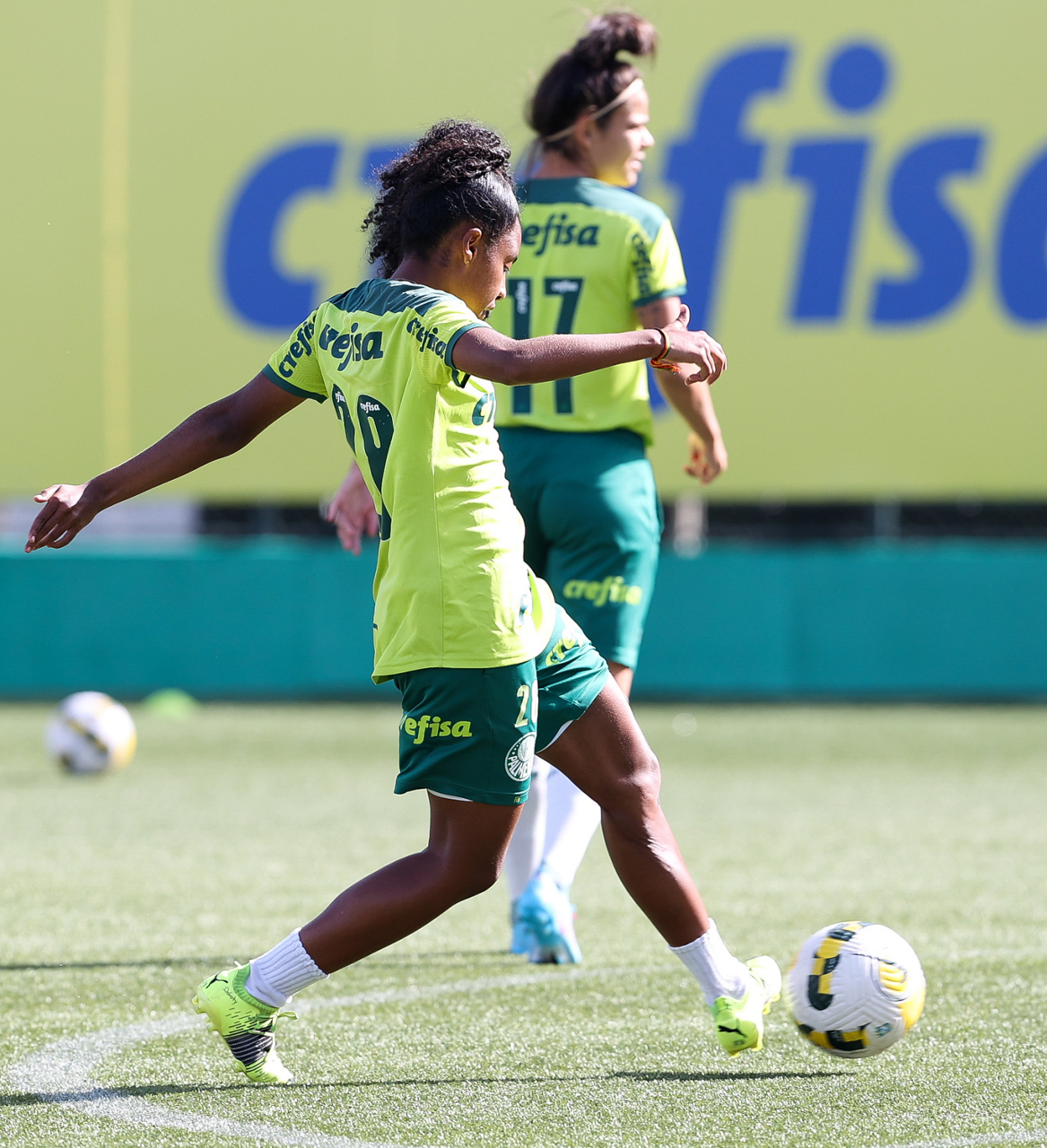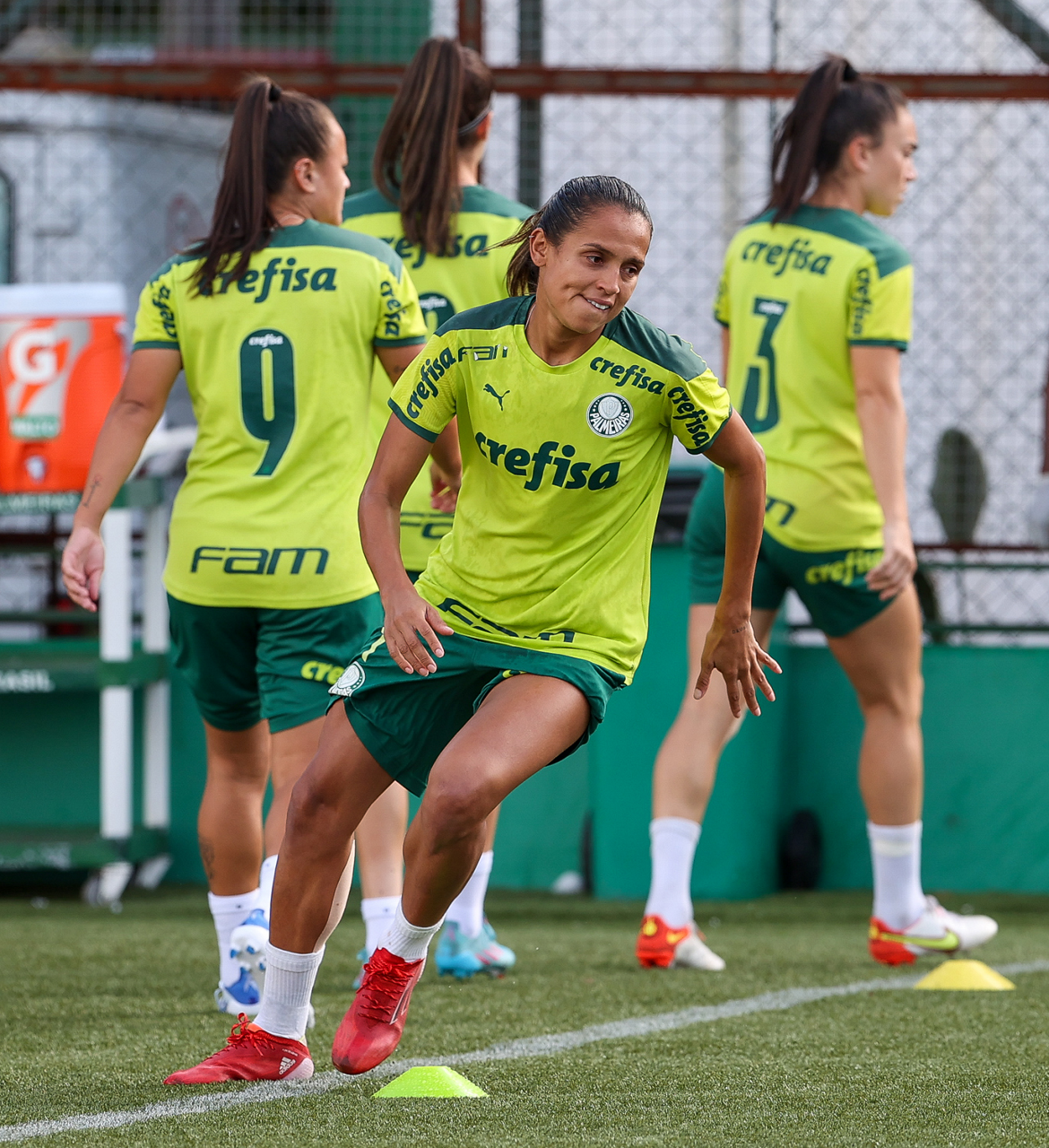 As atletas da equipe feminina da SE Palmeiras, durante treinamento na Academia de Futebol, em São Paulo-SP. (Foto: Fabio Menotti)