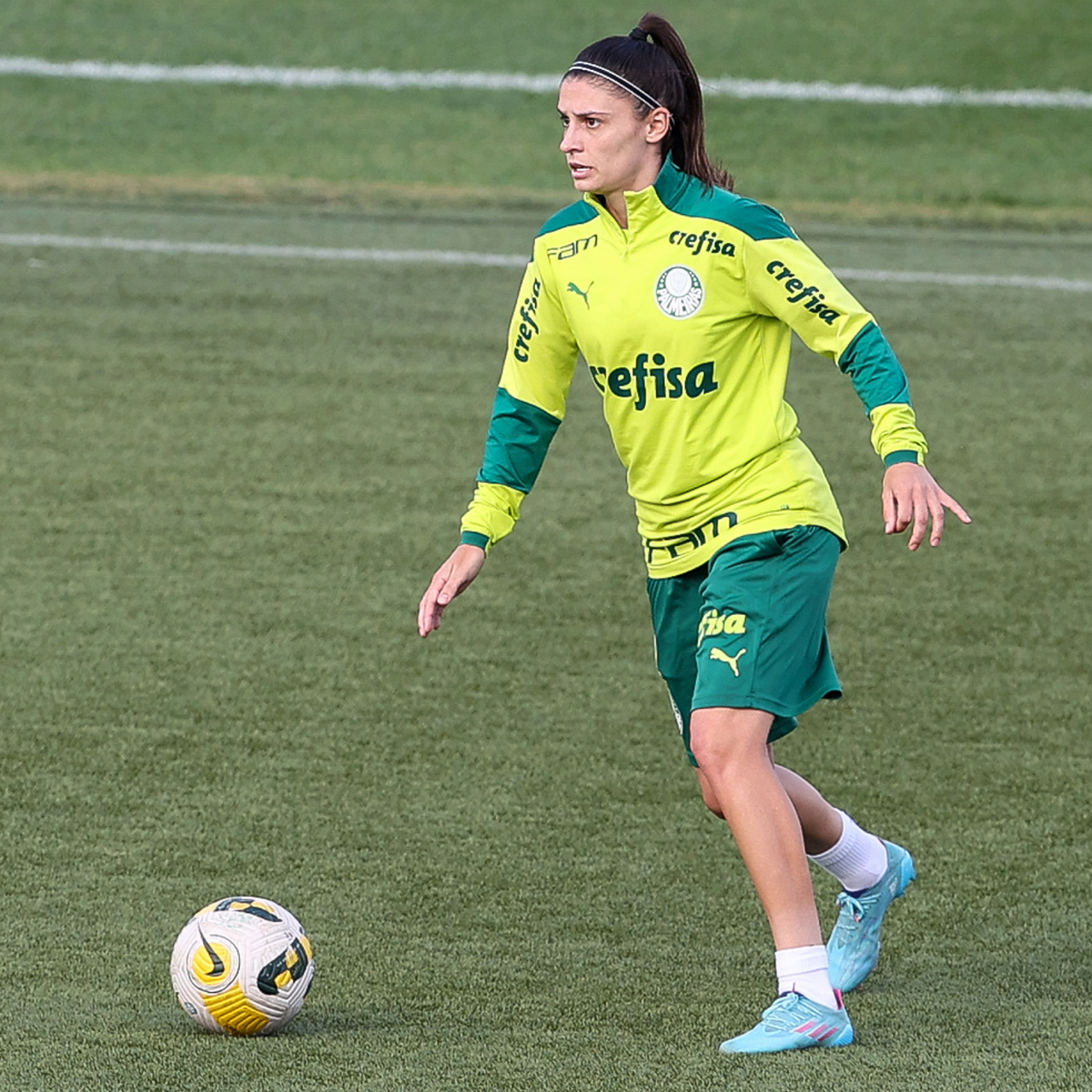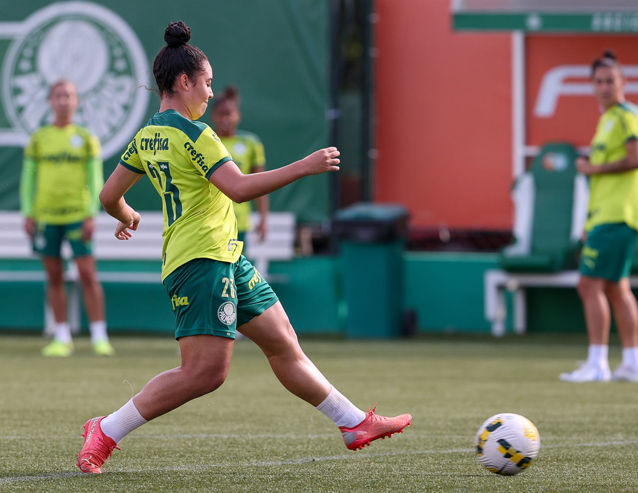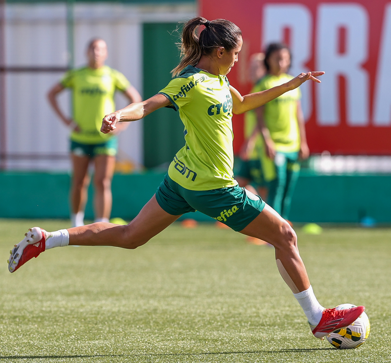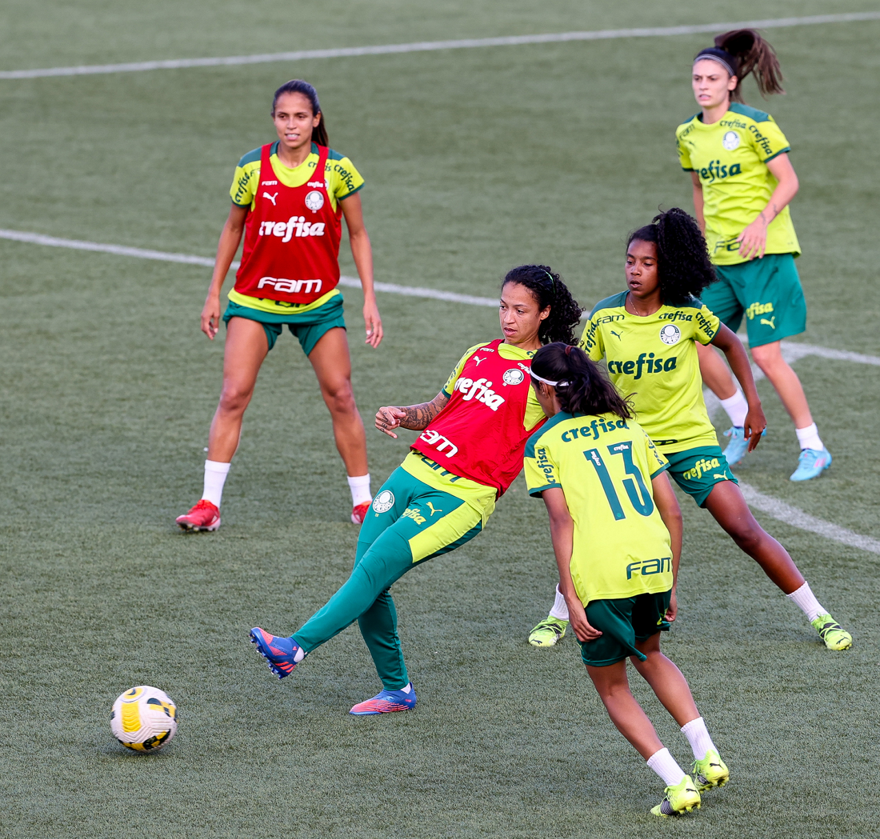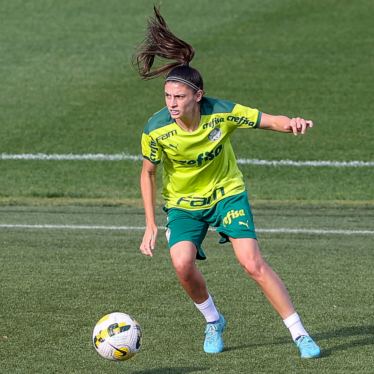 As atletas da equipe feminina da SE Palmeiras, durante treinamento na Academia de Futebol, em São Paulo-SP. (Foto: Fabio Menotti)