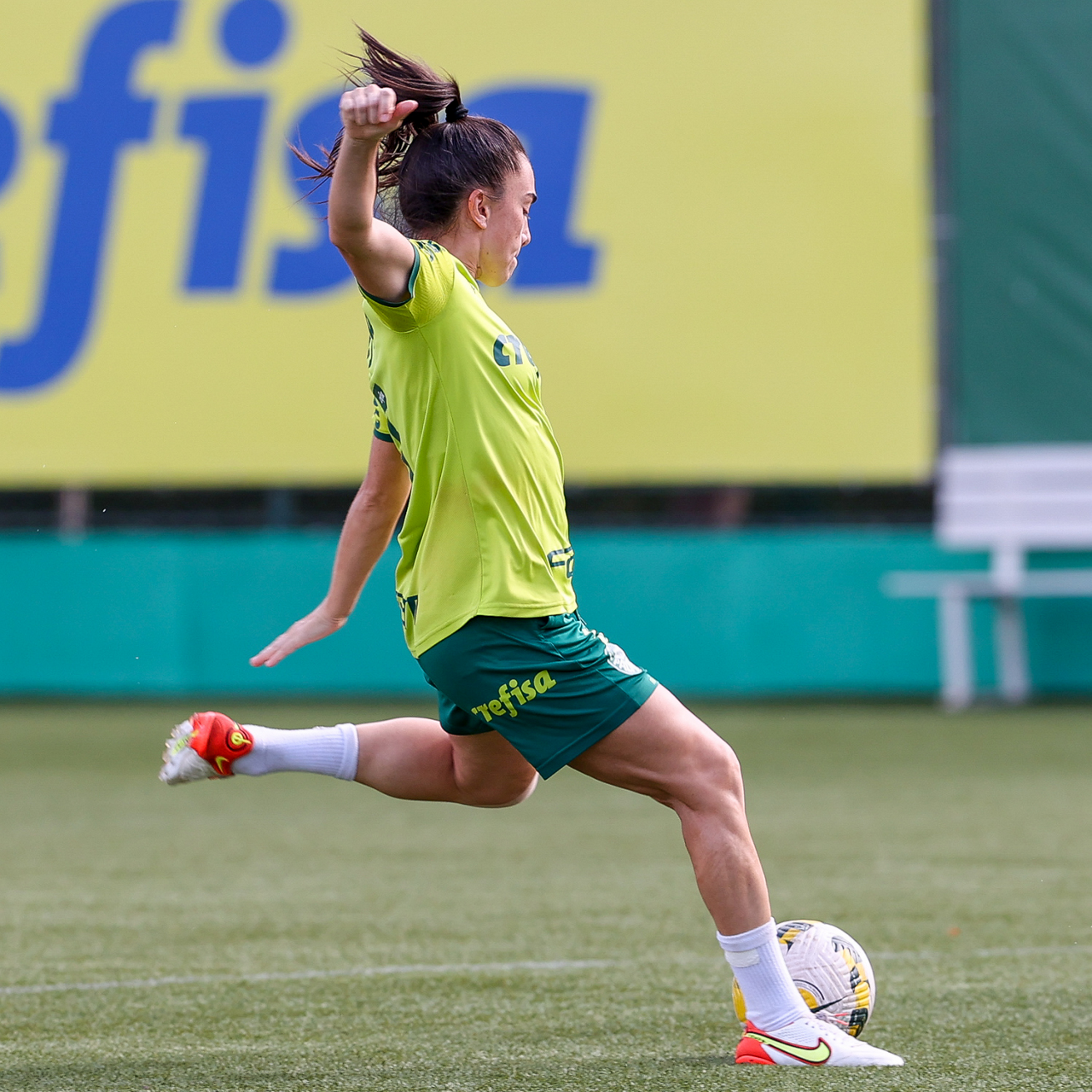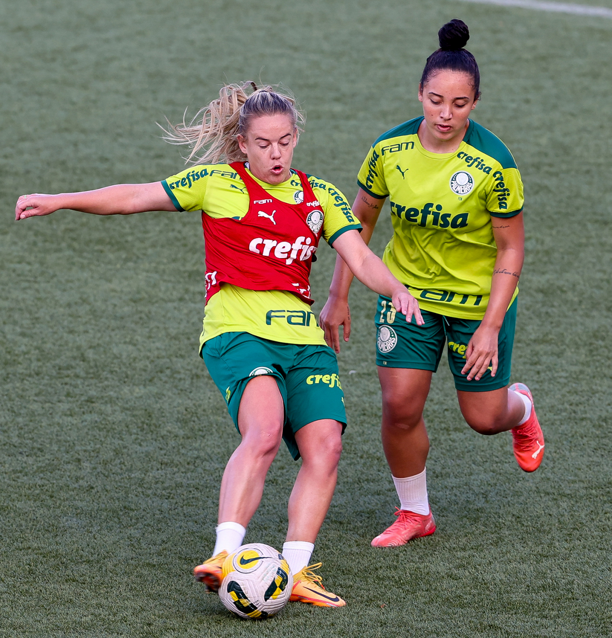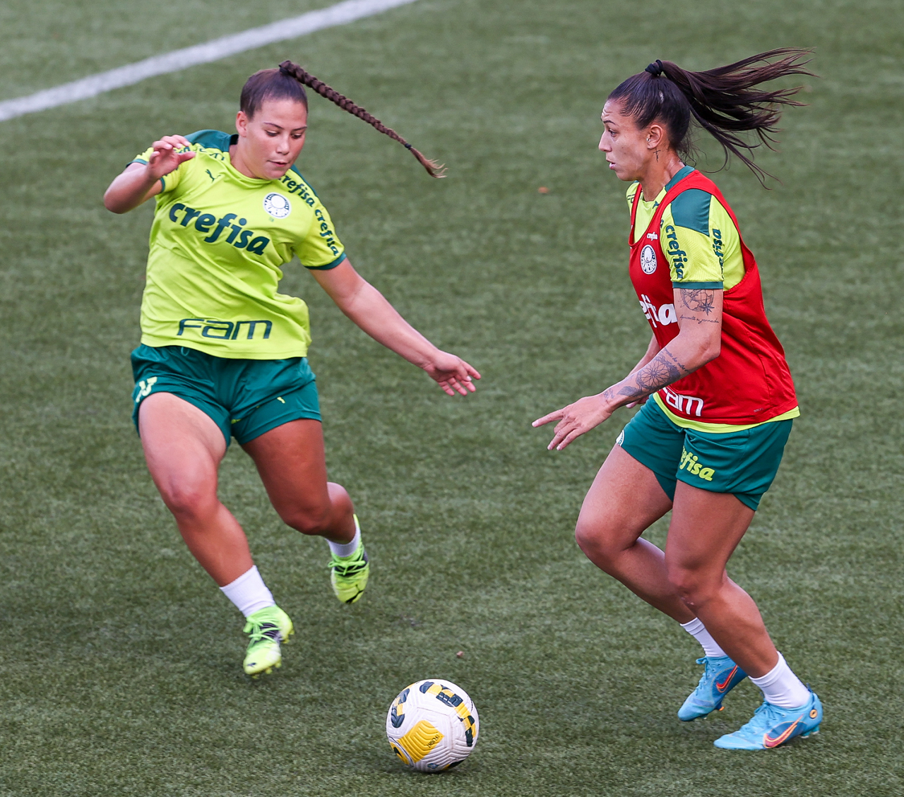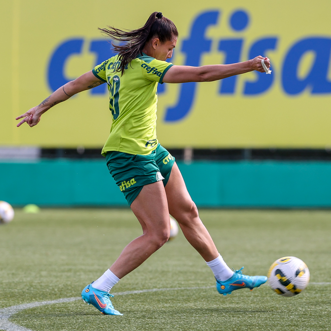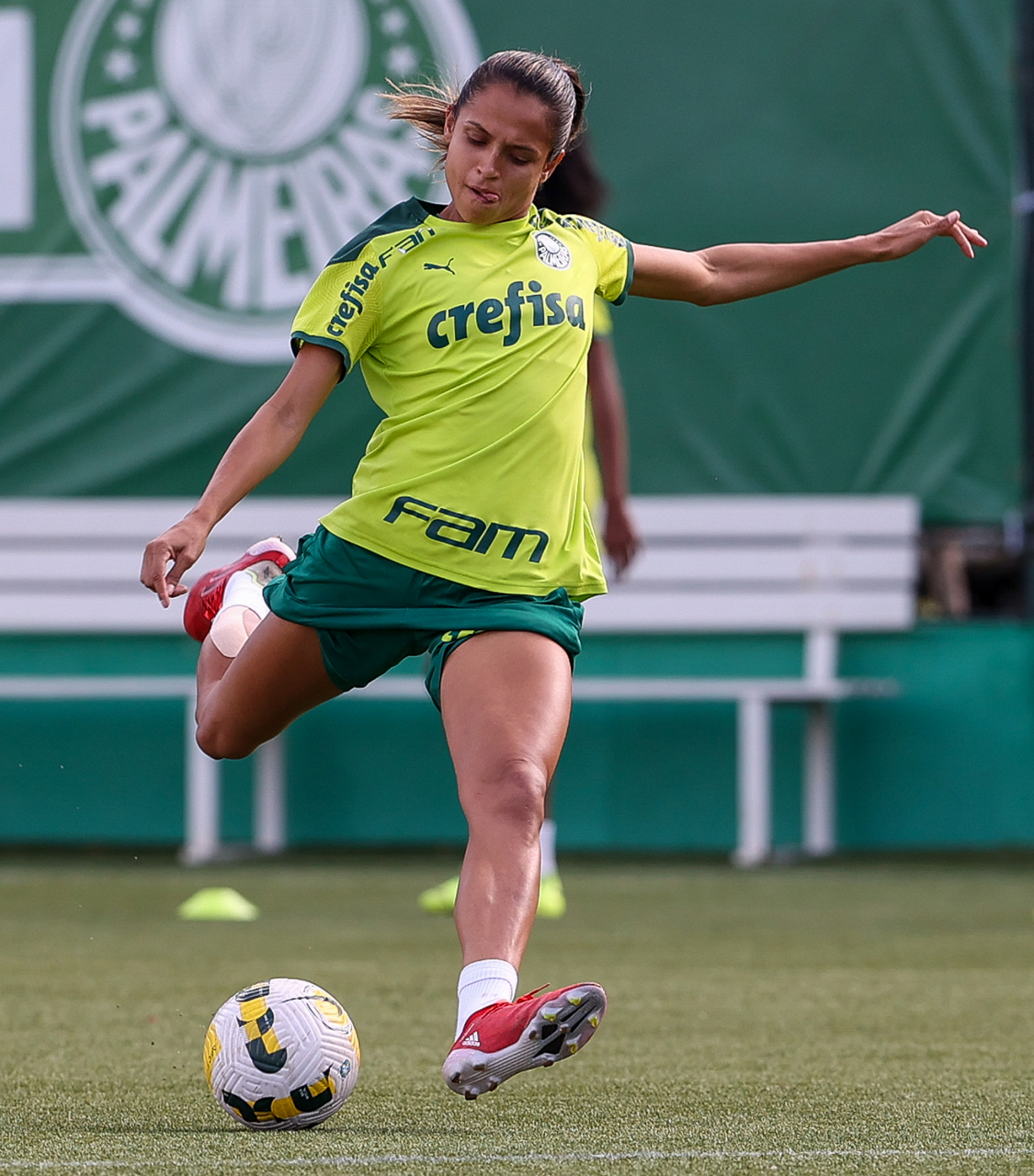 As atletas da equipe feminina da SE Palmeiras, durante treinamento na Academia de Futebol, em São Paulo-SP. (Foto: Fabio Menotti)