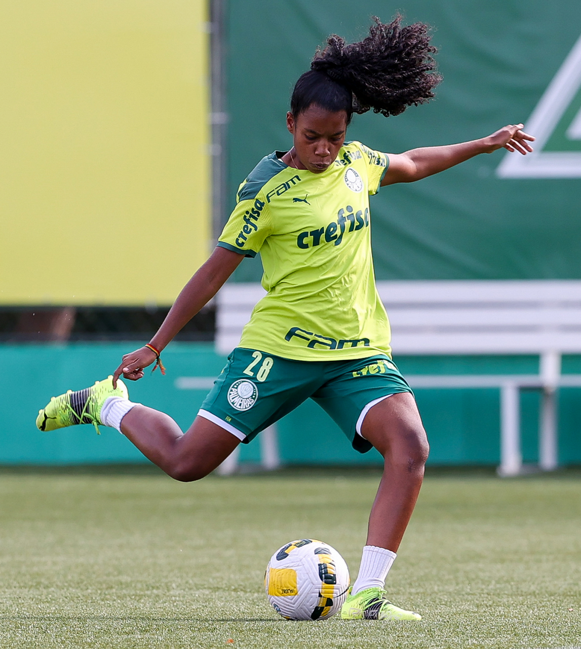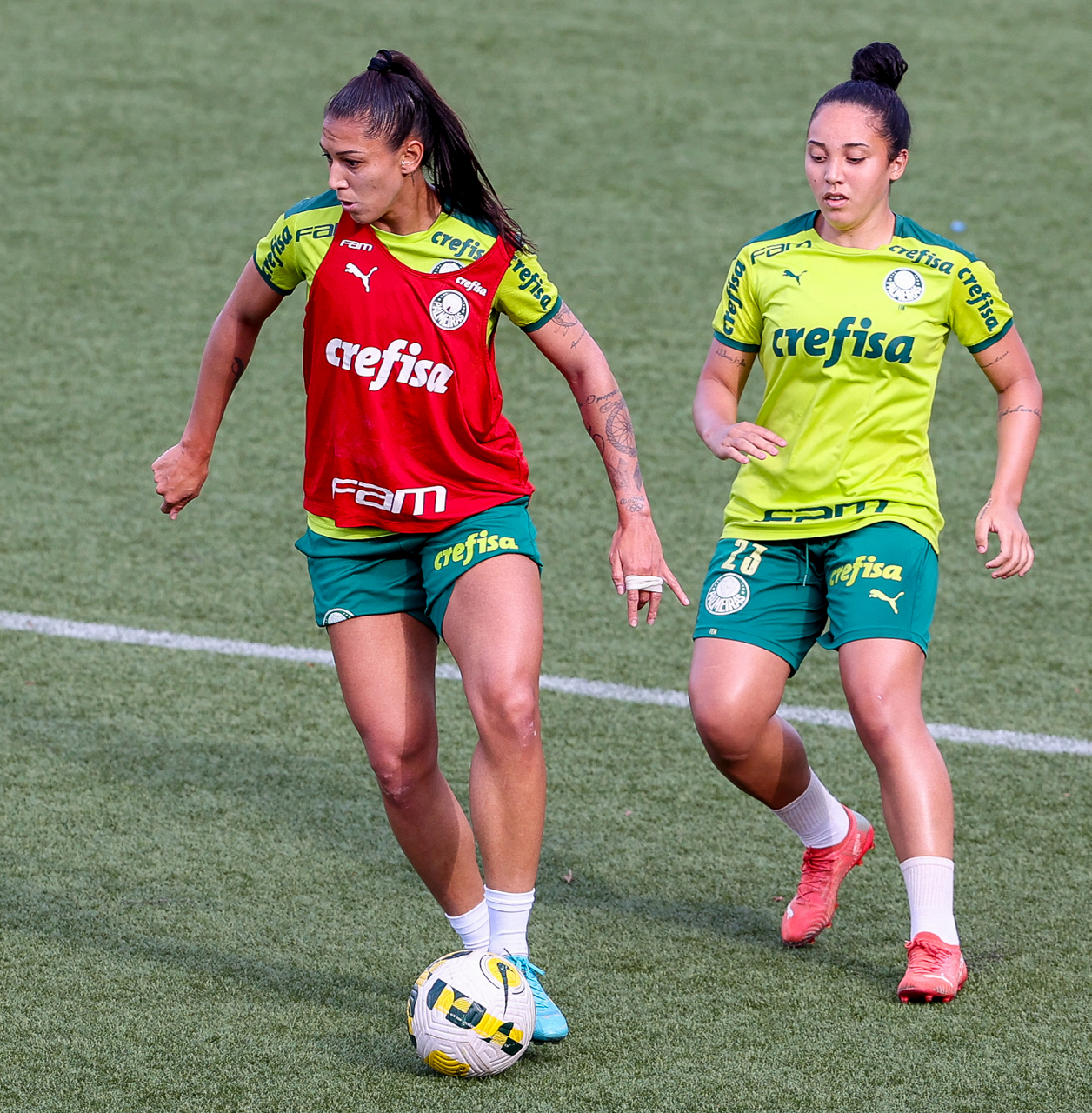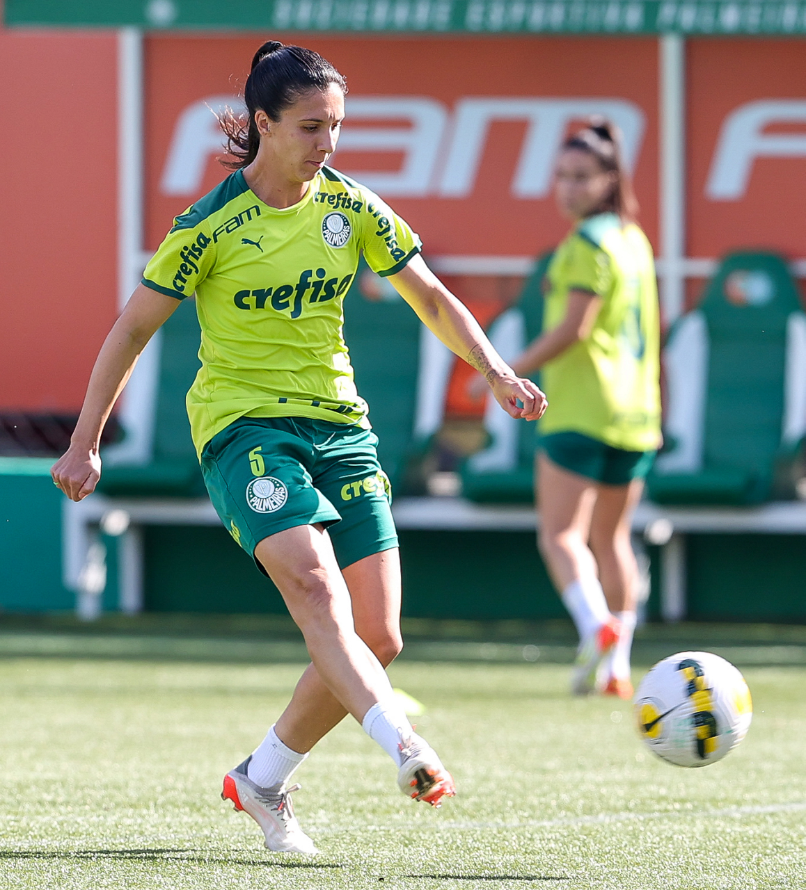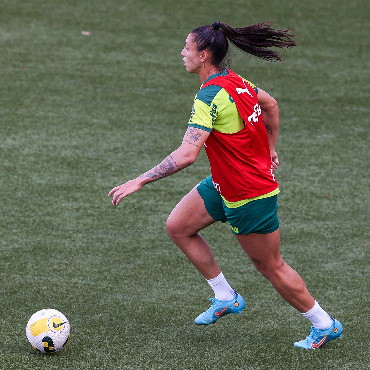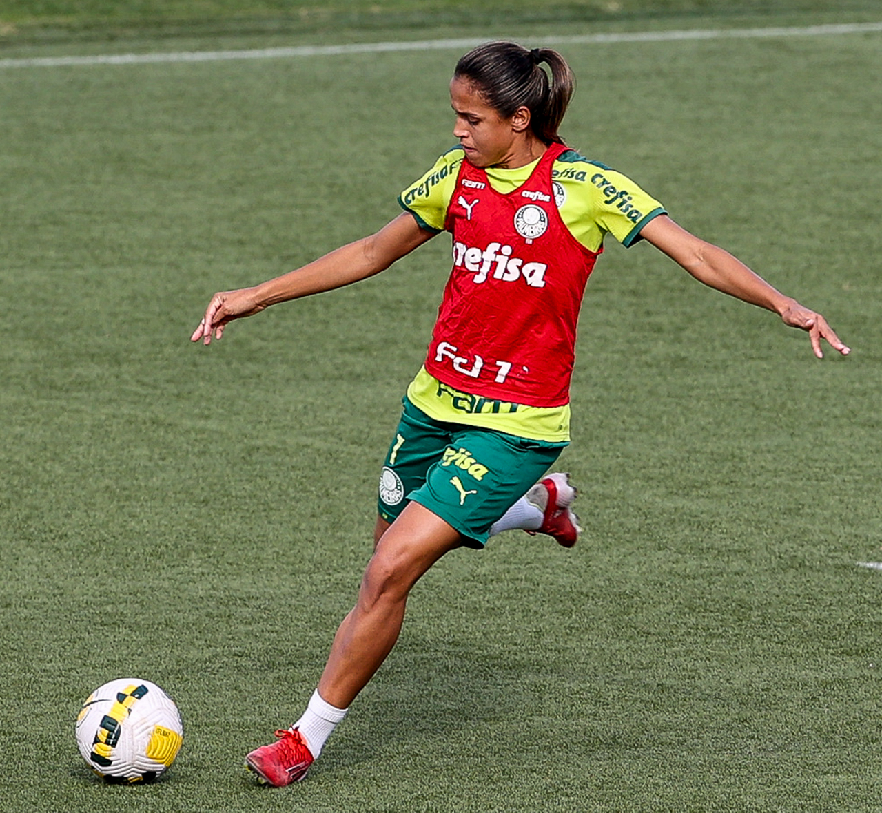 As atletas da equipe feminina da SE Palmeiras, durante treinamento na Academia de Futebol, em São Paulo-SP. (Foto: Fabio Menotti)
