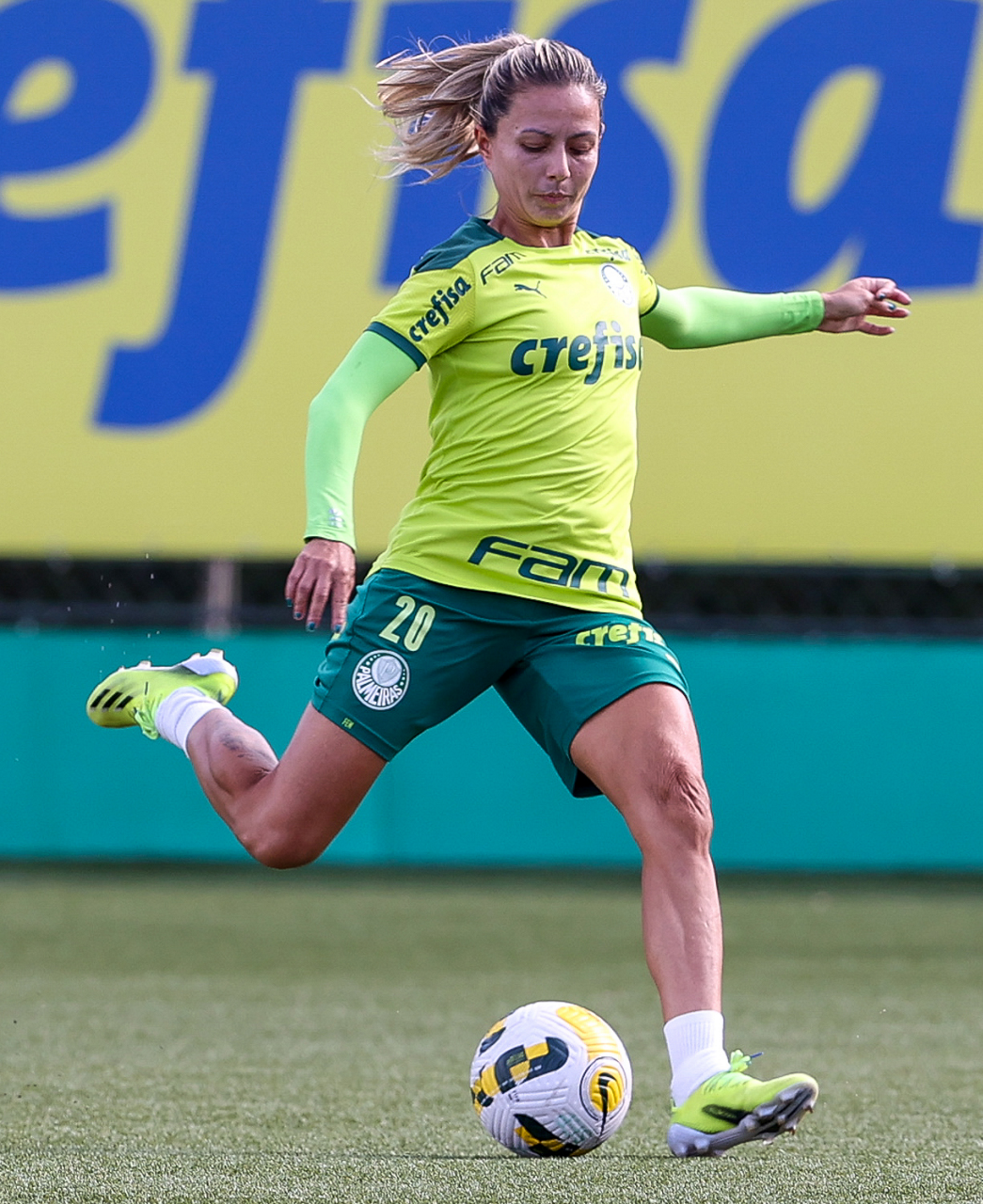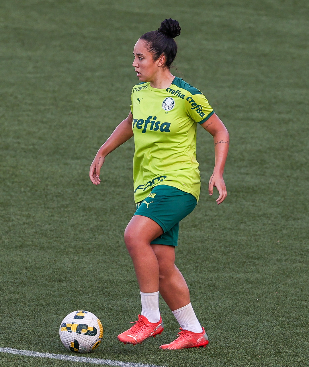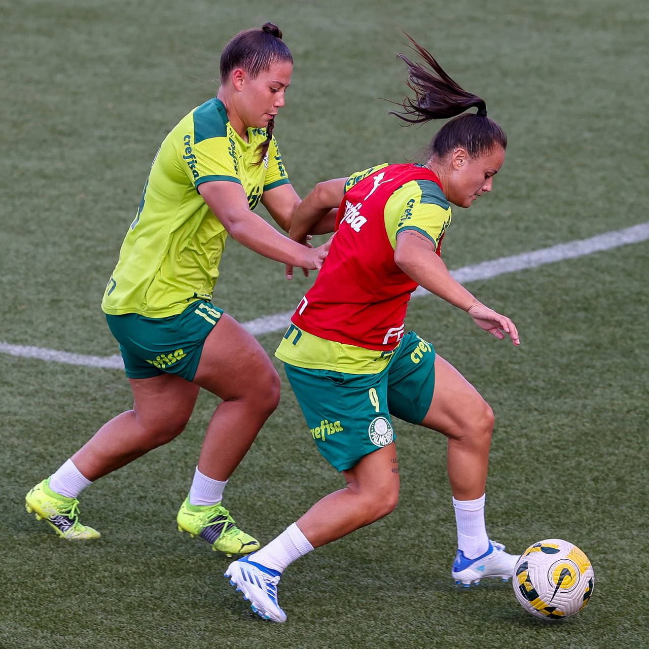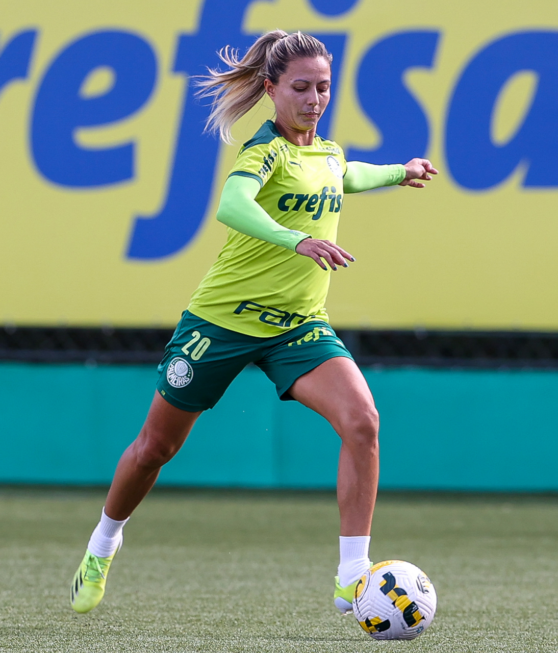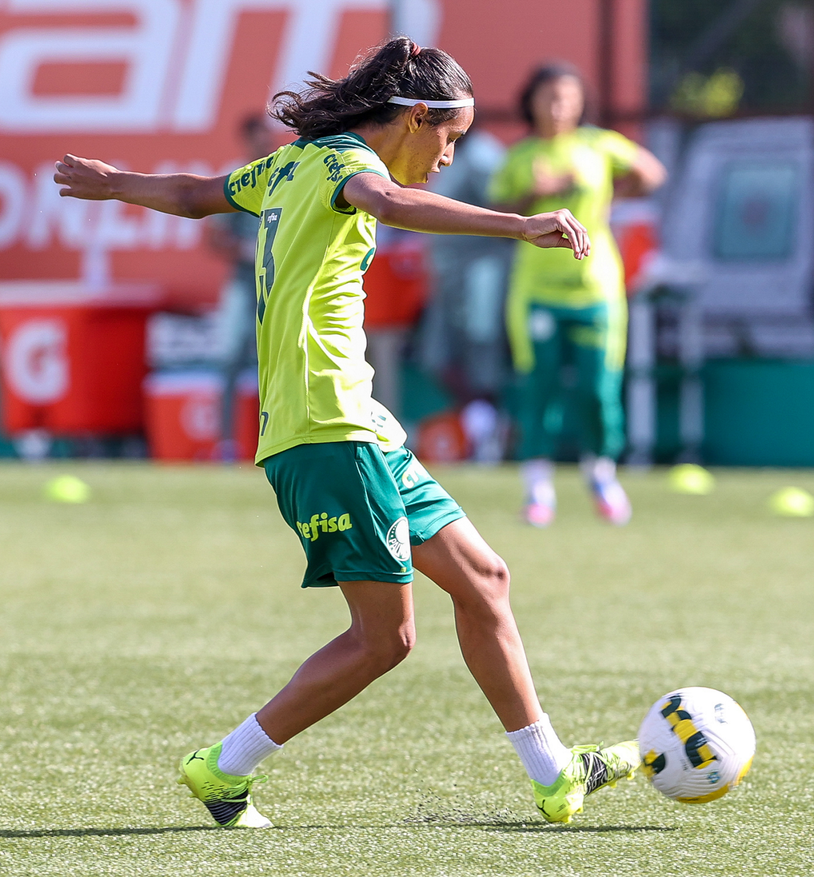 As atletas da equipe feminina da SE Palmeiras, durante treinamento na Academia de Futebol, em São Paulo-SP. (Foto: Fabio Menotti)