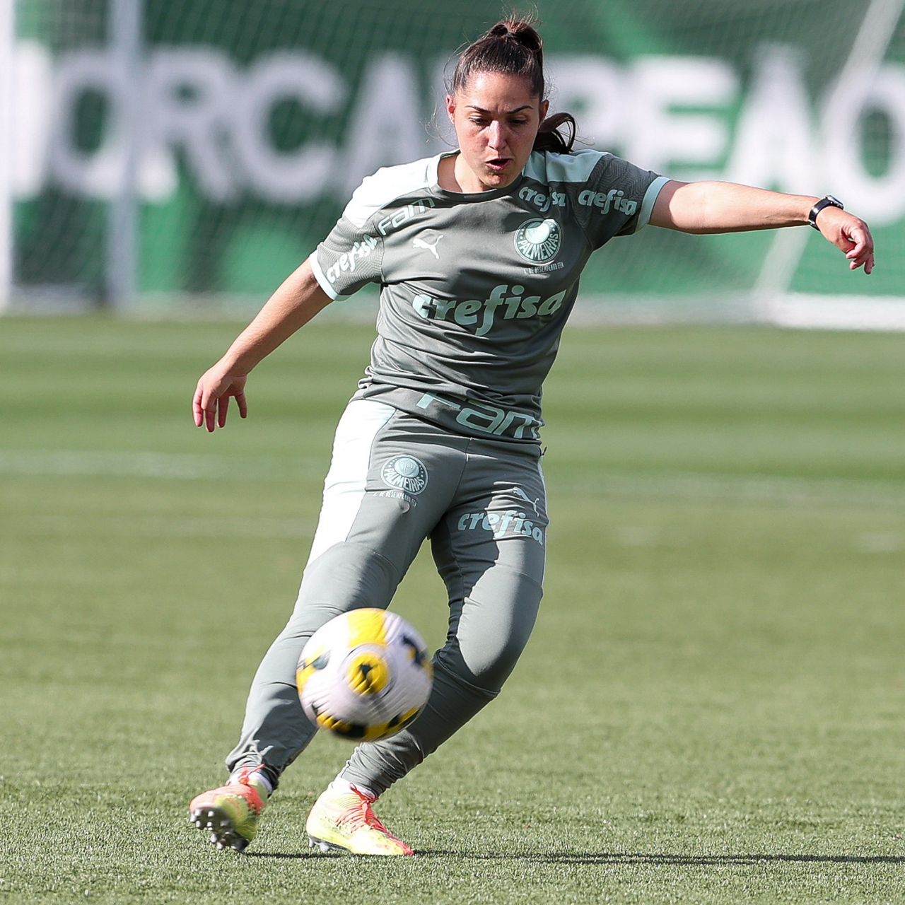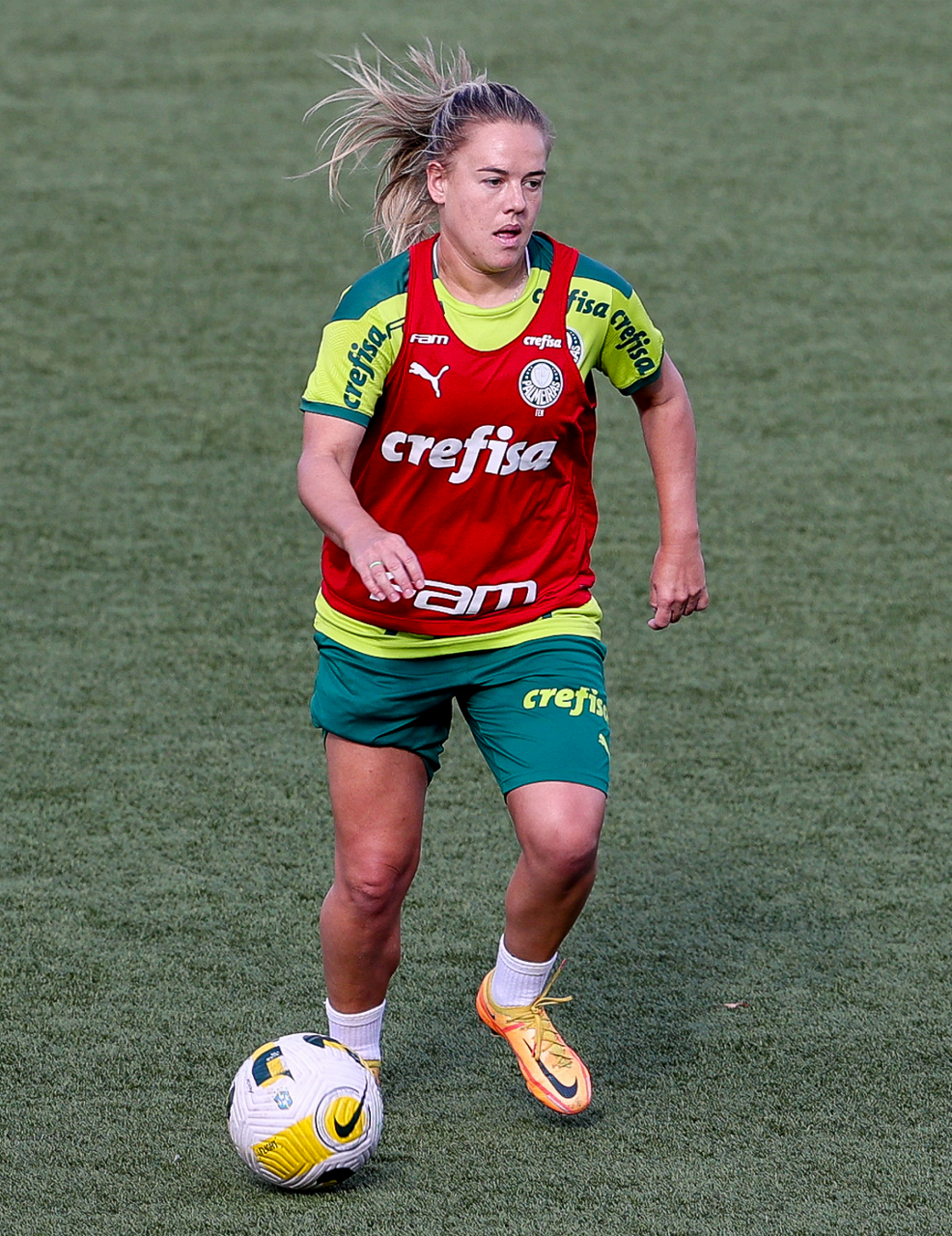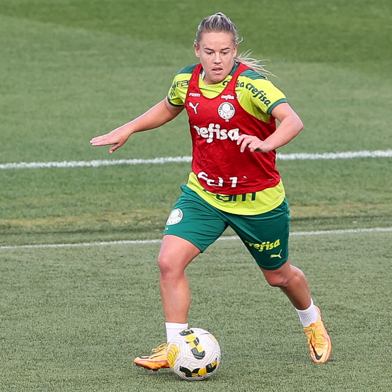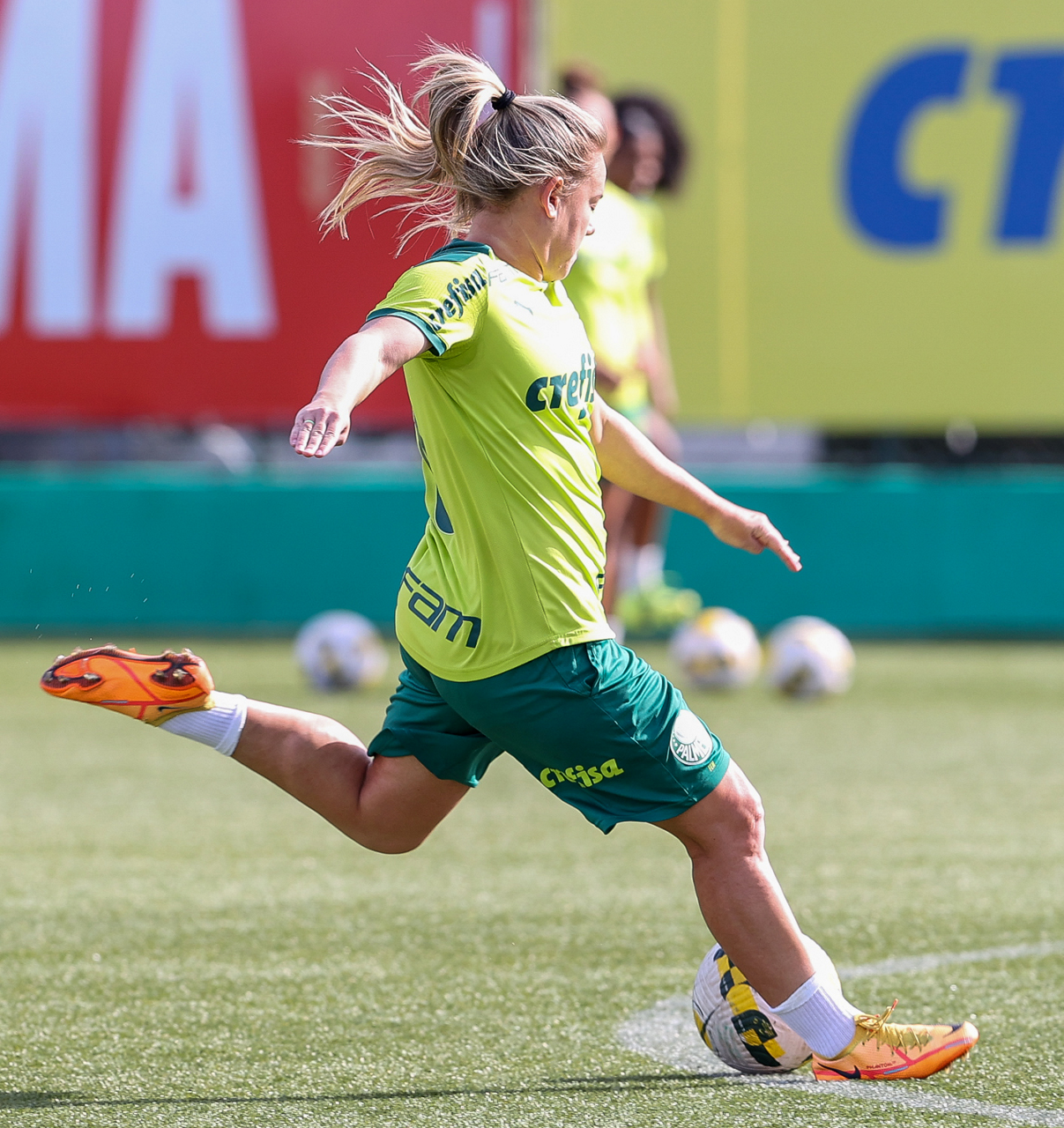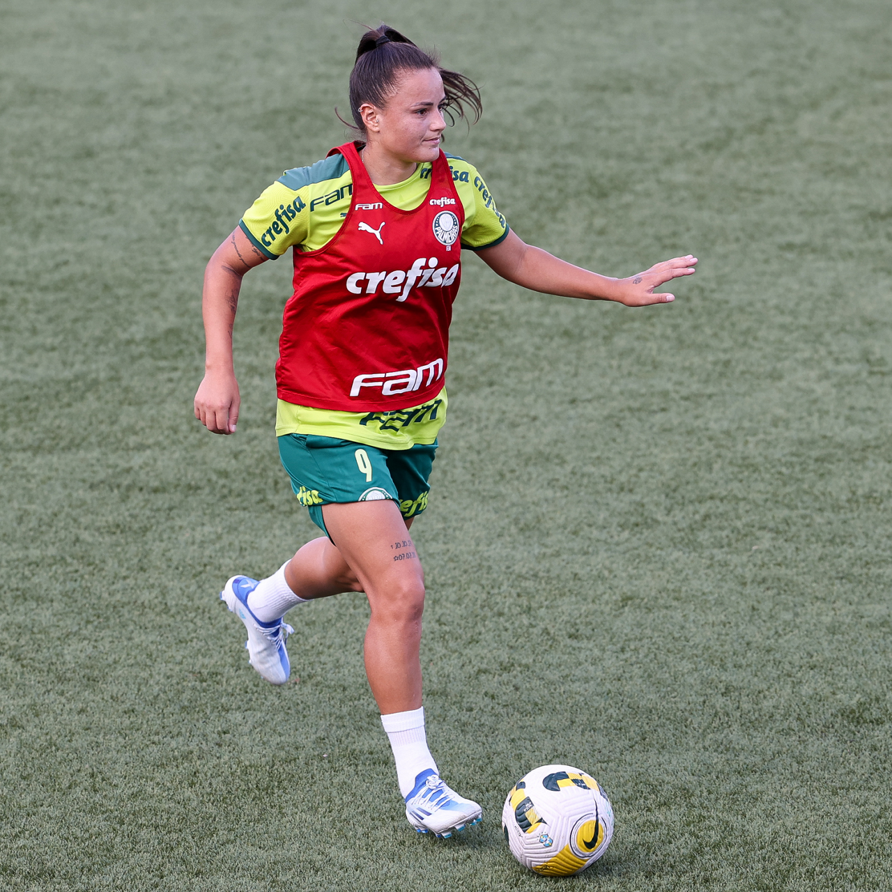 As atletas da equipe feminina da SE Palmeiras, durante treinamento na Academia de Futebol, em São Paulo-SP. (Foto: Fabio Menotti)