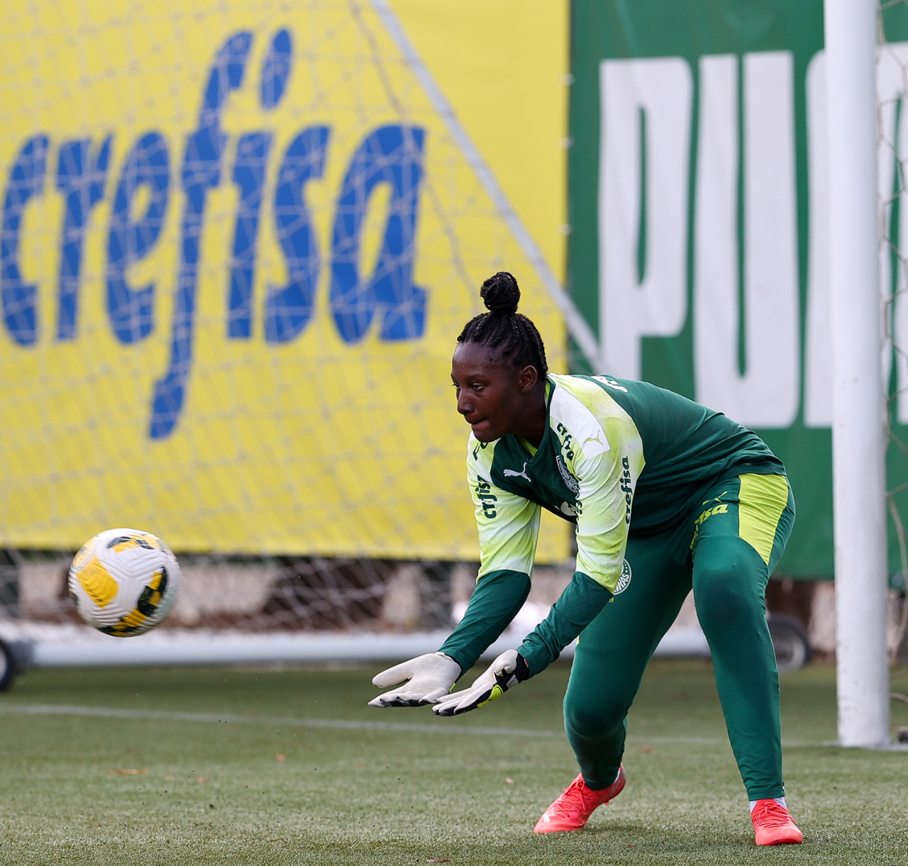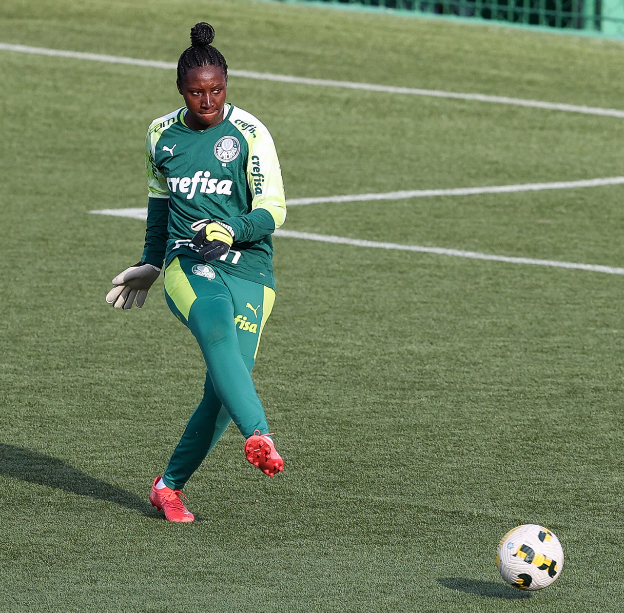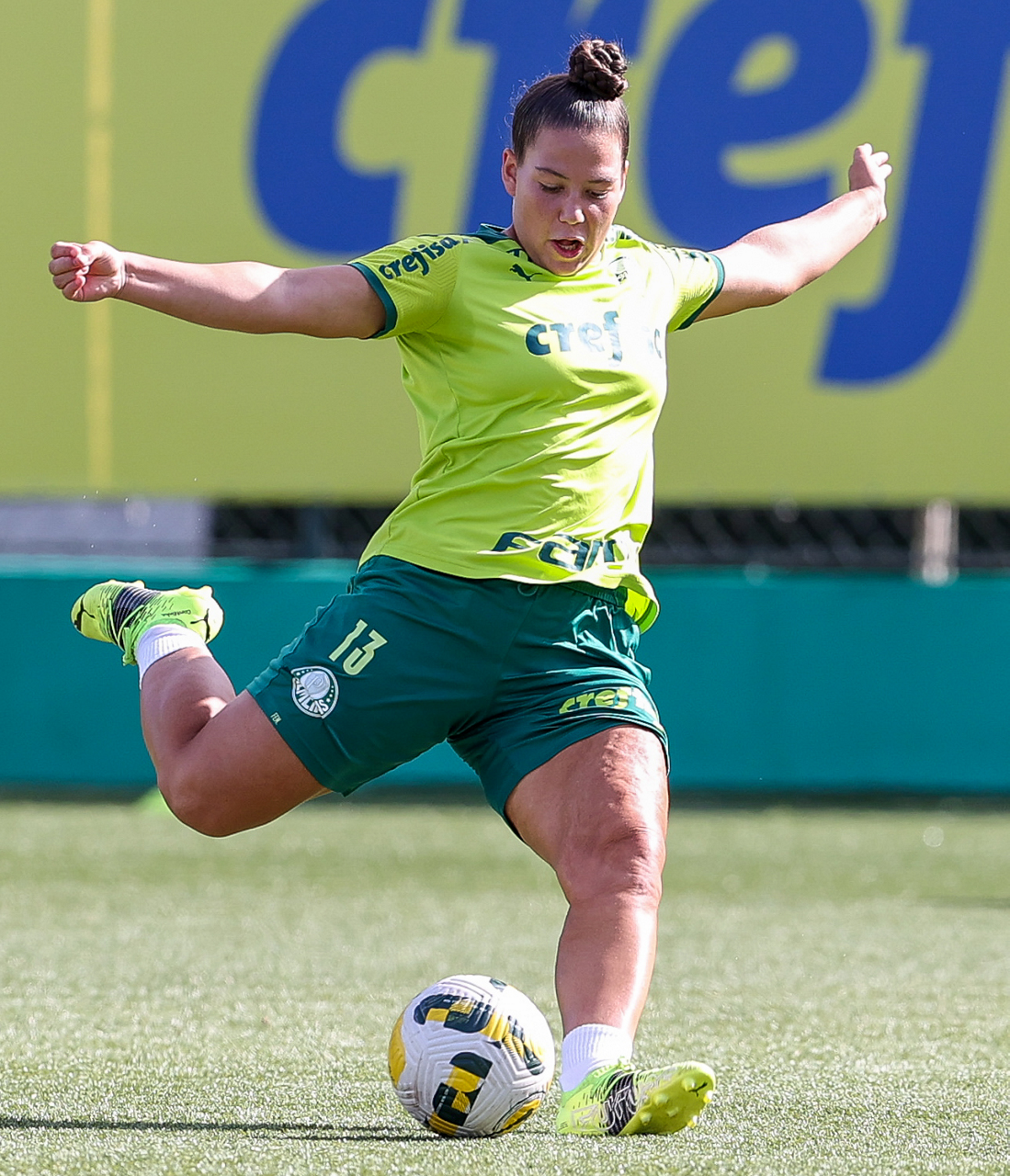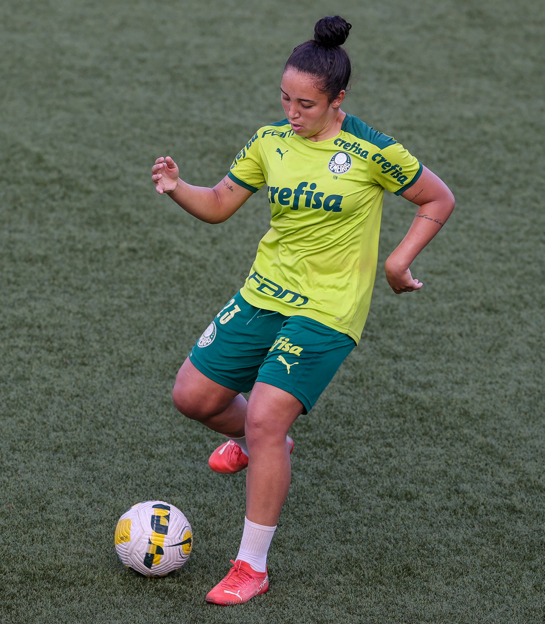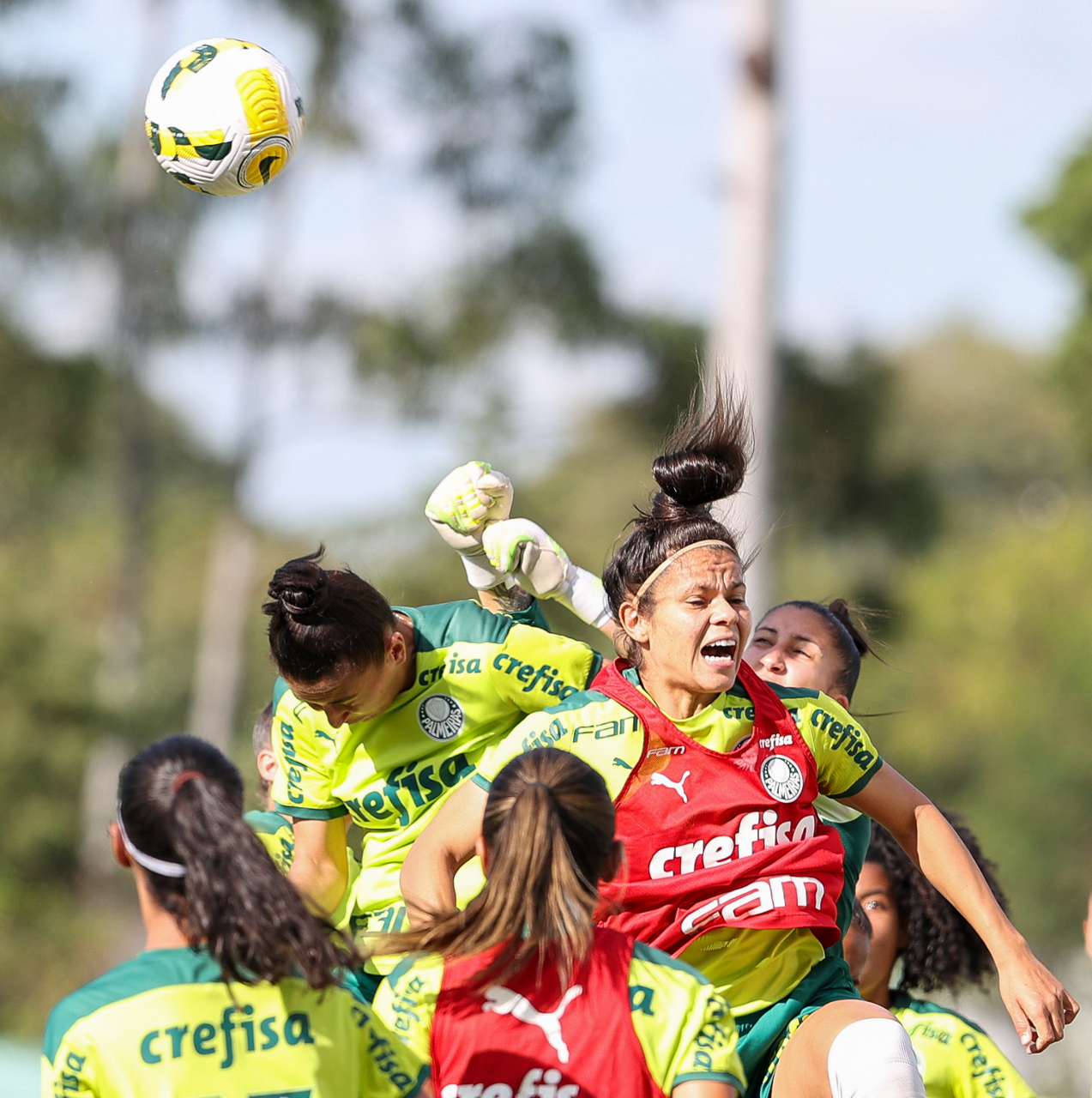 As atletas da equipe feminina da SE Palmeiras, durante treinamento na Academia de Futebol, em São Paulo-SP. (Foto: Fabio Menotti)