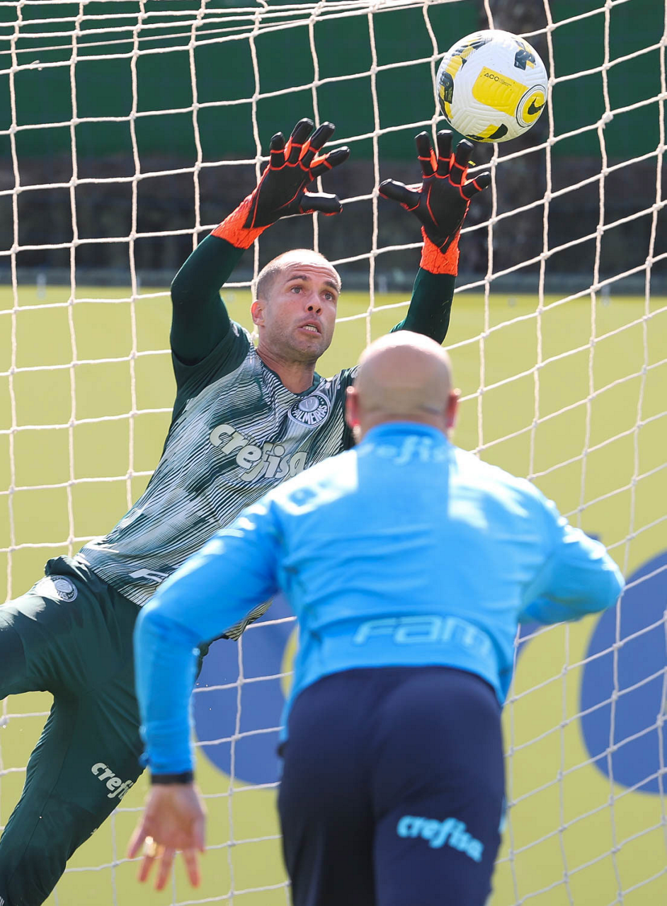 O goleiro Weverton, da SE Palmeiras, durante treinamento, na Academia de Futebol. (Foto: Cesar Greco)
