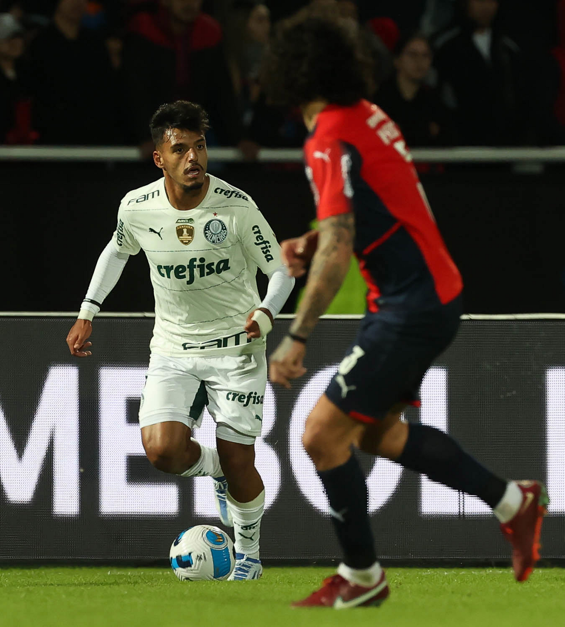O jogador Gabriel Menino, da SE Palmeiras, em jogo contra a equipe do C Cerro Porteño, durante partida válida pelas oitavas de final, ida, da Copa Libertadores, no Estádio General Pablo Rojas. (Foto: Cesar Greco)